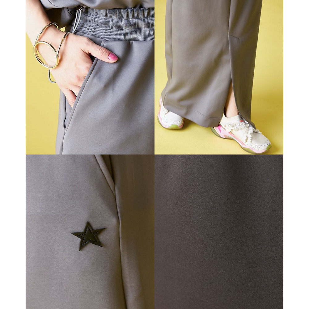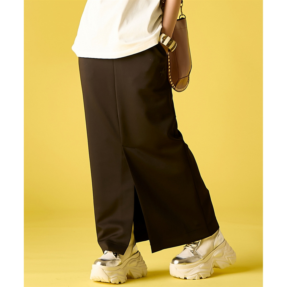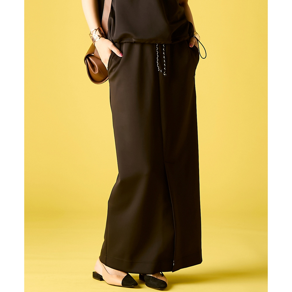 | 素材 | 品質:ポリエステル85%・ポリウレタン15% 前ベンツ約40cm 透け感:なし 伸縮性:ややあり 生地の厚み:厚い 光沢感:ややあり ポケット:あり(前2つ) ウエスト:総ゴム・ひも入 季節:春・夏向き シルエット:普通 |