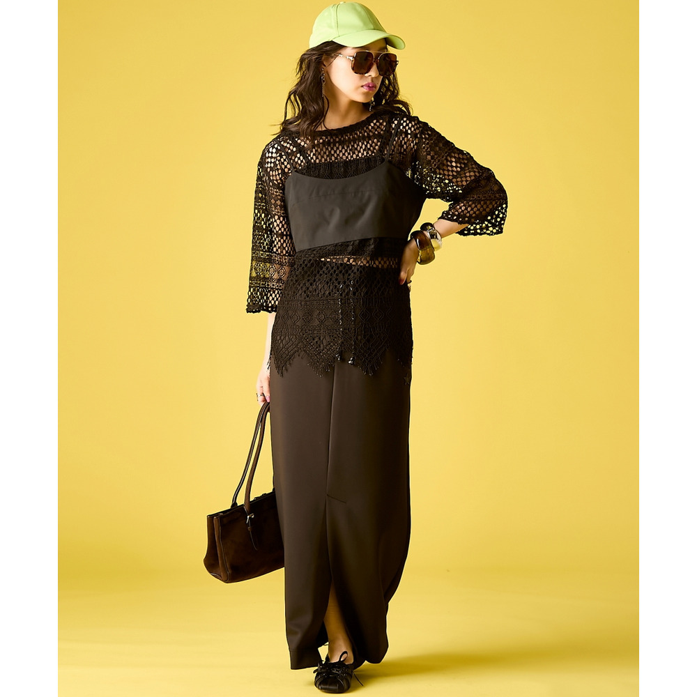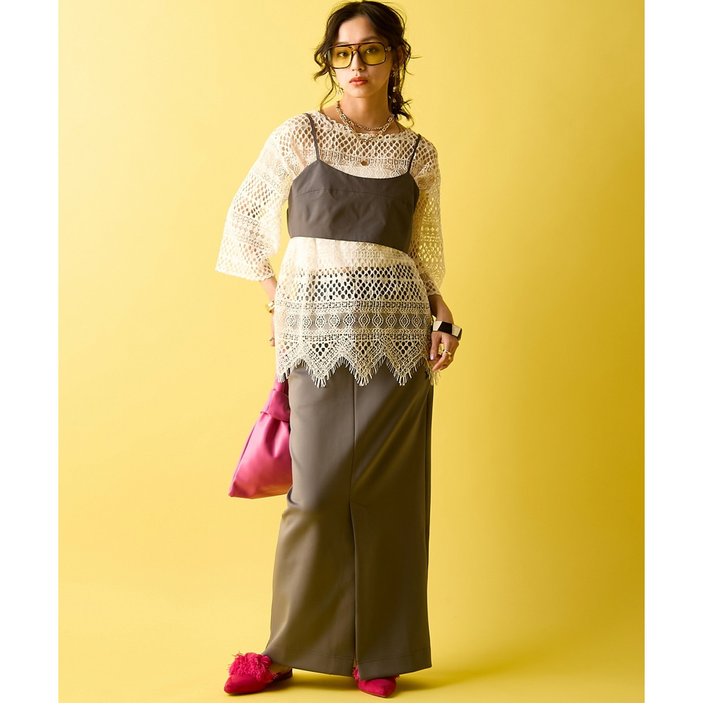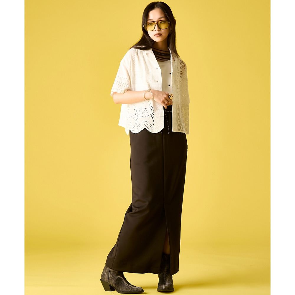 甘さのあるレースと、ストレートなスカートの強さが絶妙に溶け合い、個性が際立つアーバンスタイルに仕上がります。