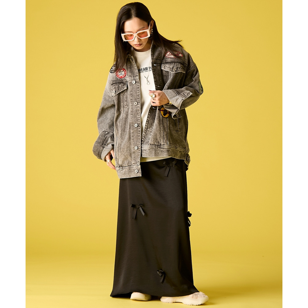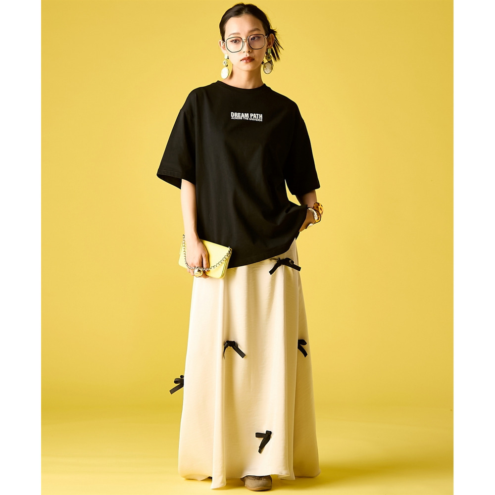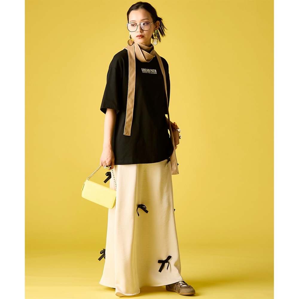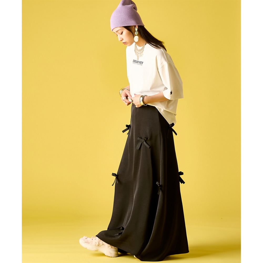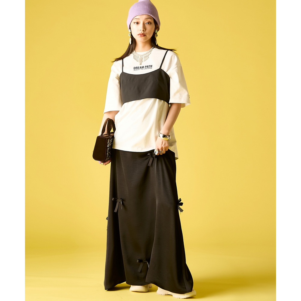 Feminine Mode Mix:リボンの付いたサテンスカートや、レースパンツをボトムスに。