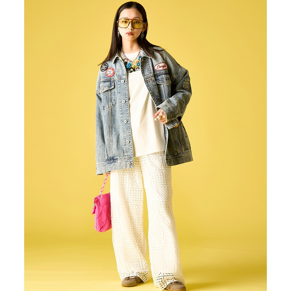 サングラスやチェーンアクセサリーで装飾し、バックスタイルのパッチワークを強調した、エッジの効いた辛口スタイルがおすすめです。