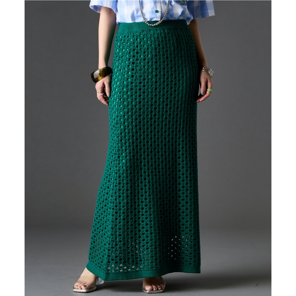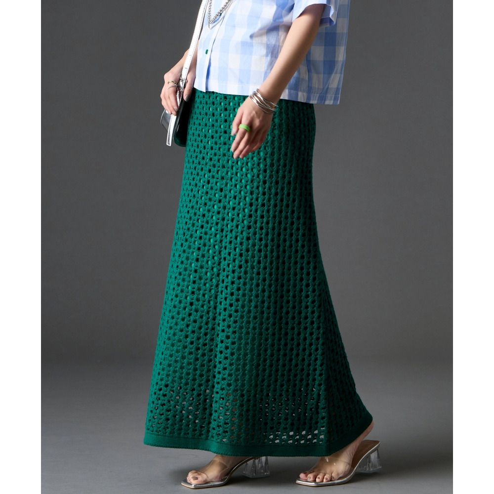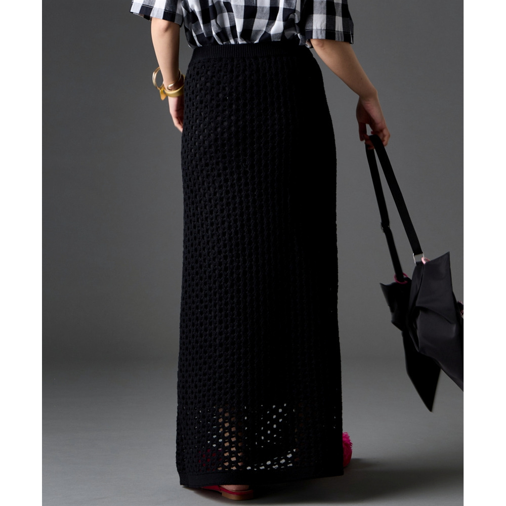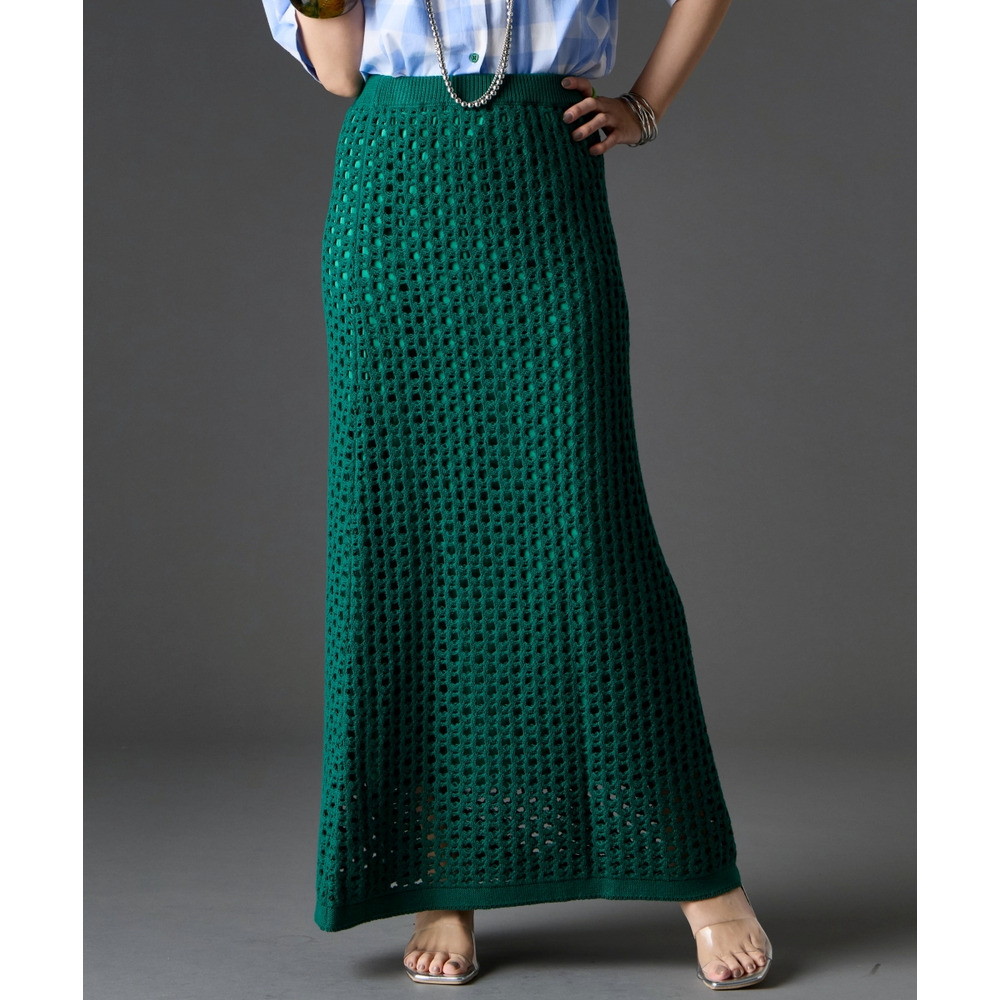 綿100%クロシェ風透かし編ナローロングスカート 大きいサイズ GEVS.