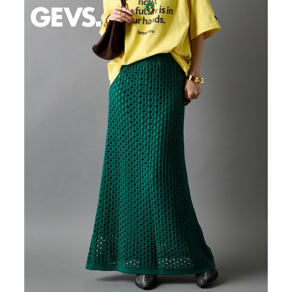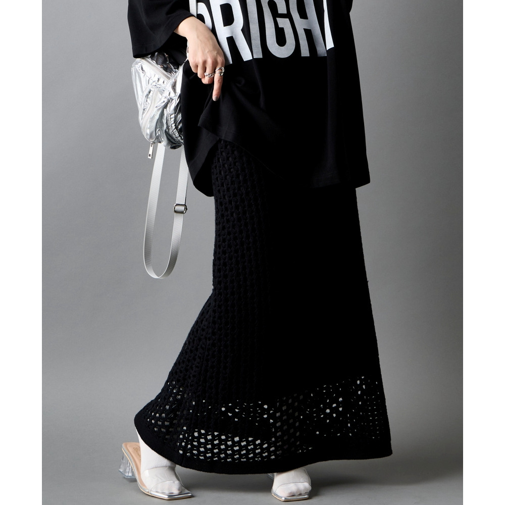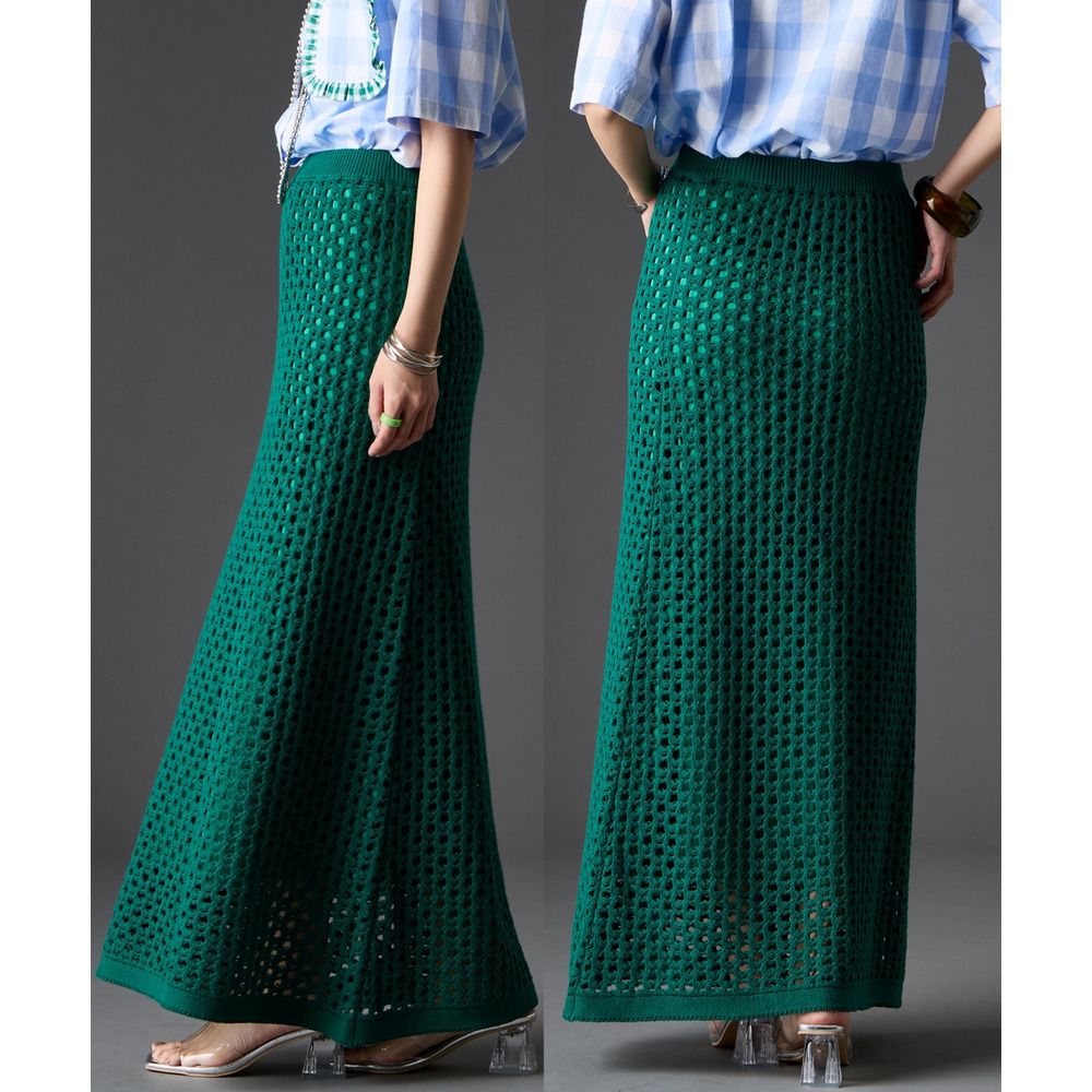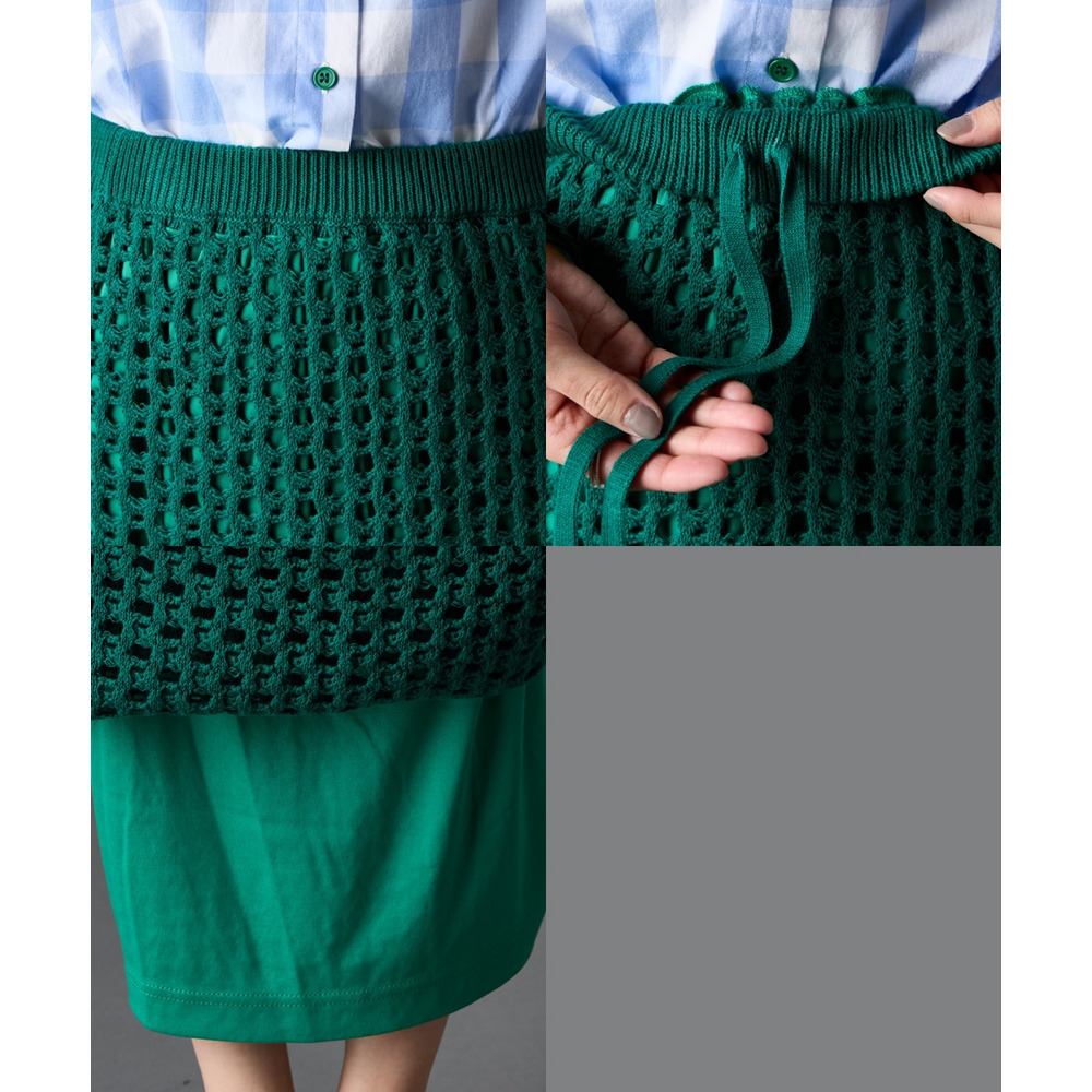綿100%クロシェ風透かし編ナローロングスカート 大きいサイズ GEVS.