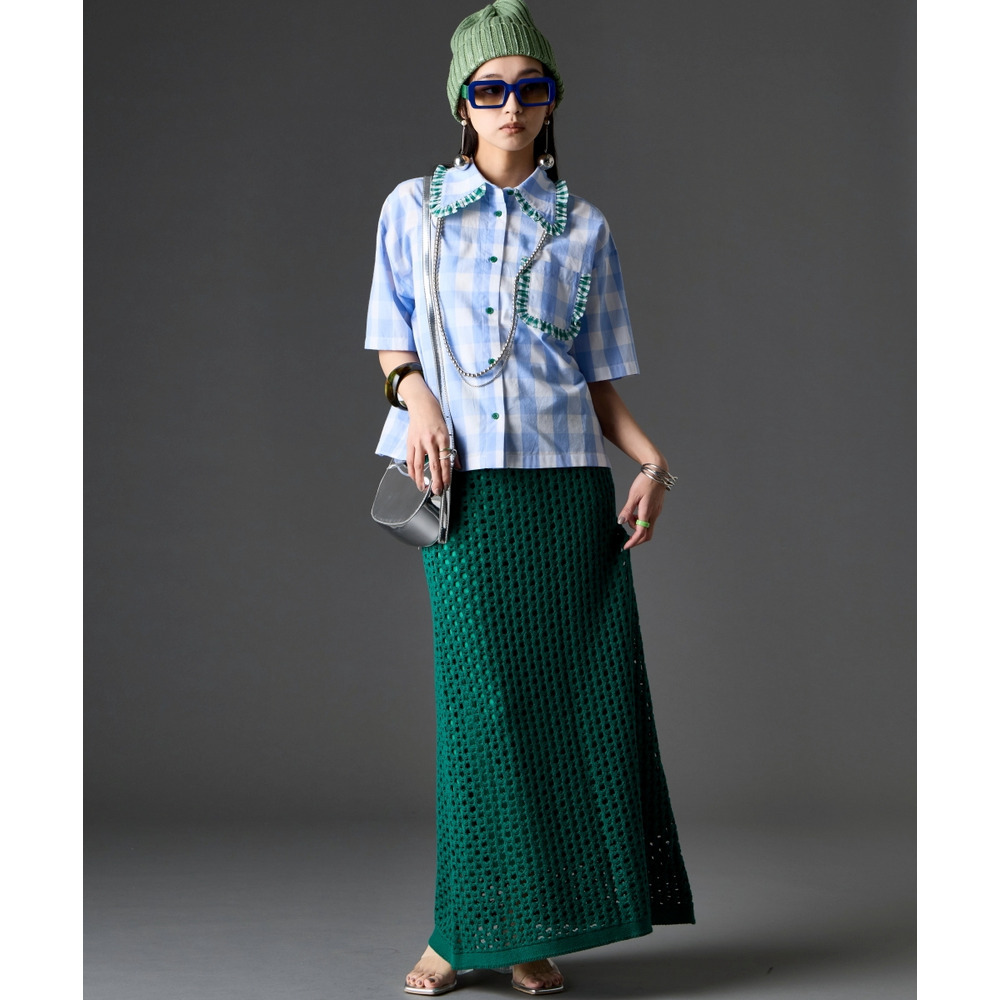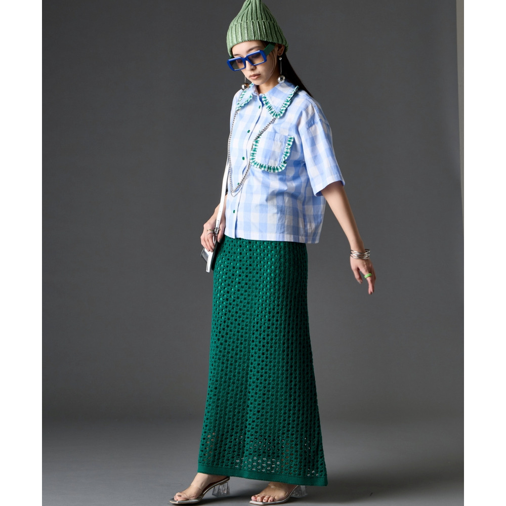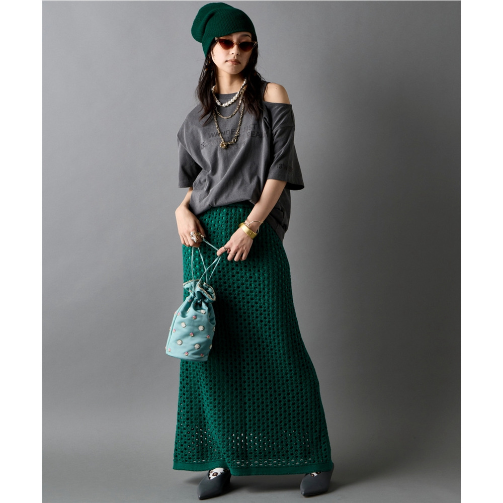 クロシェ特有のボリュームを抑えることで、オーバーサイズのトップスともバランス良く決まります。