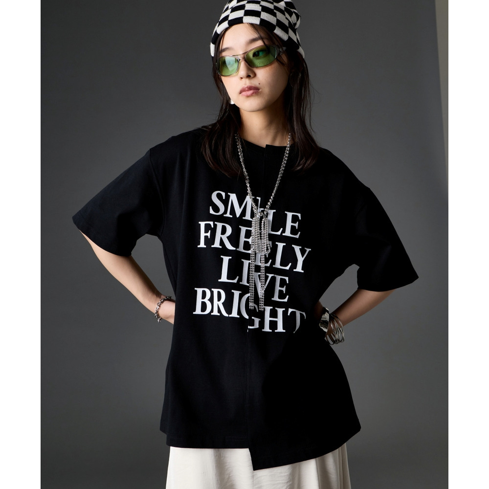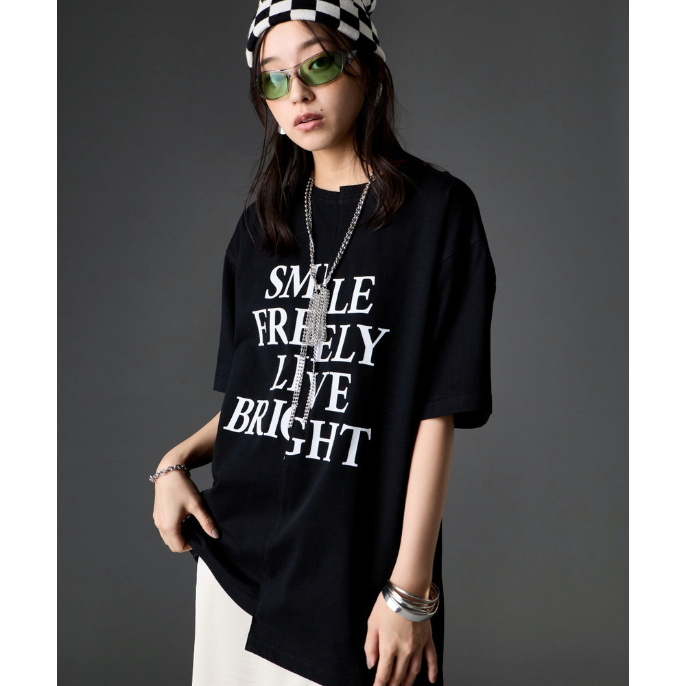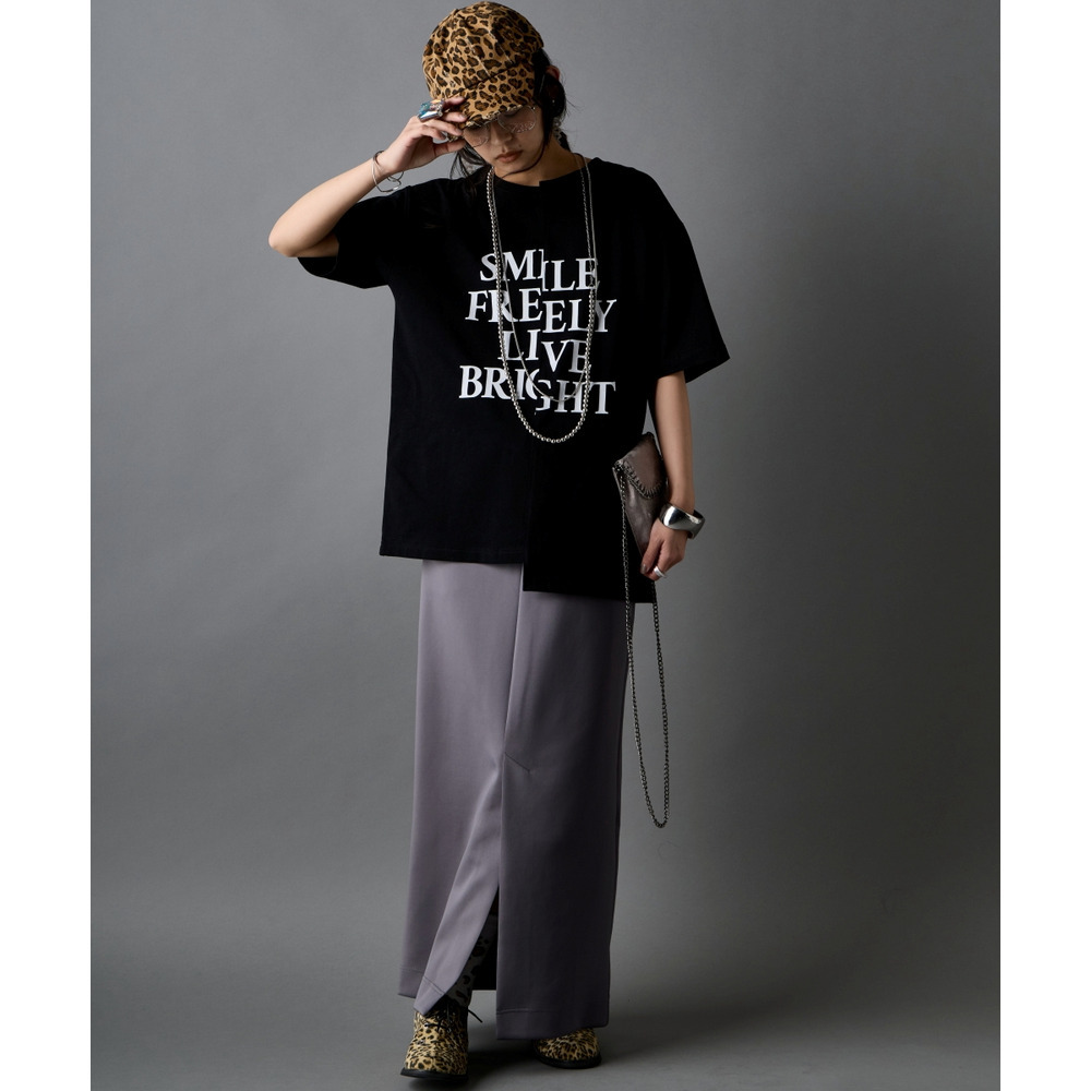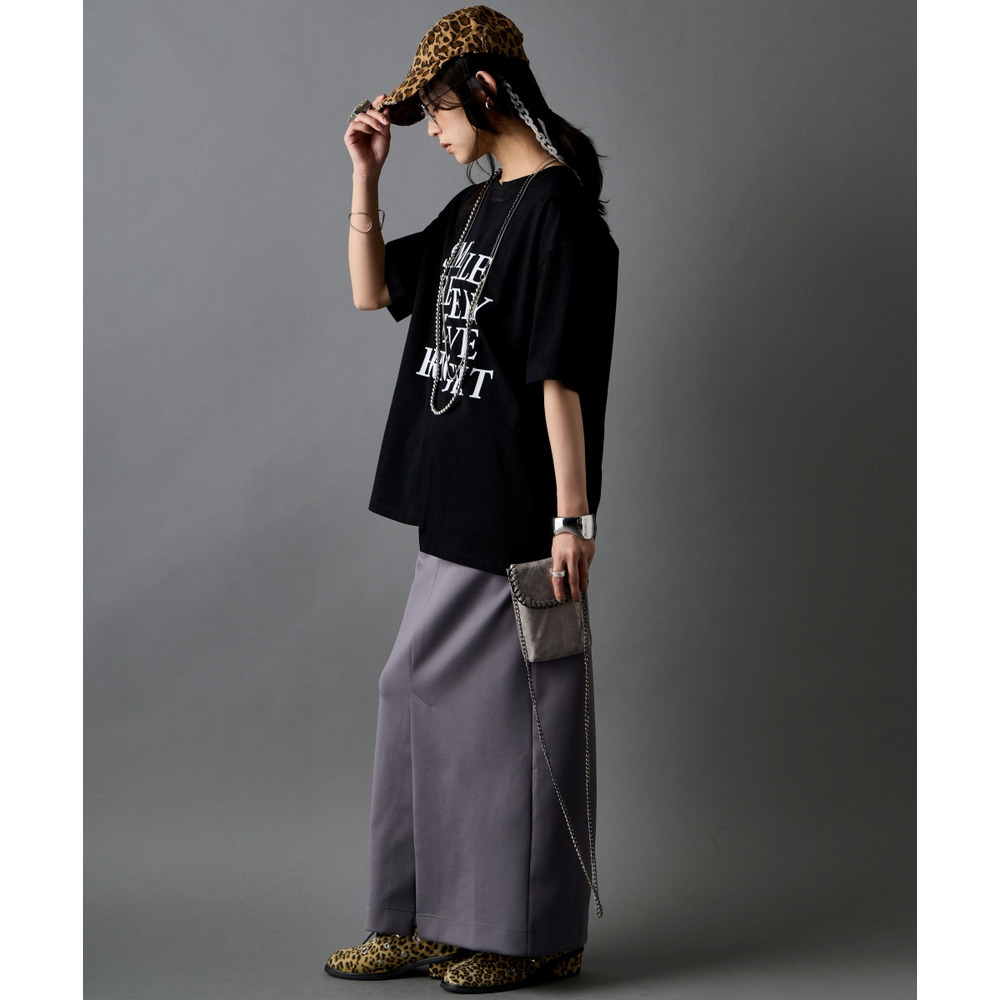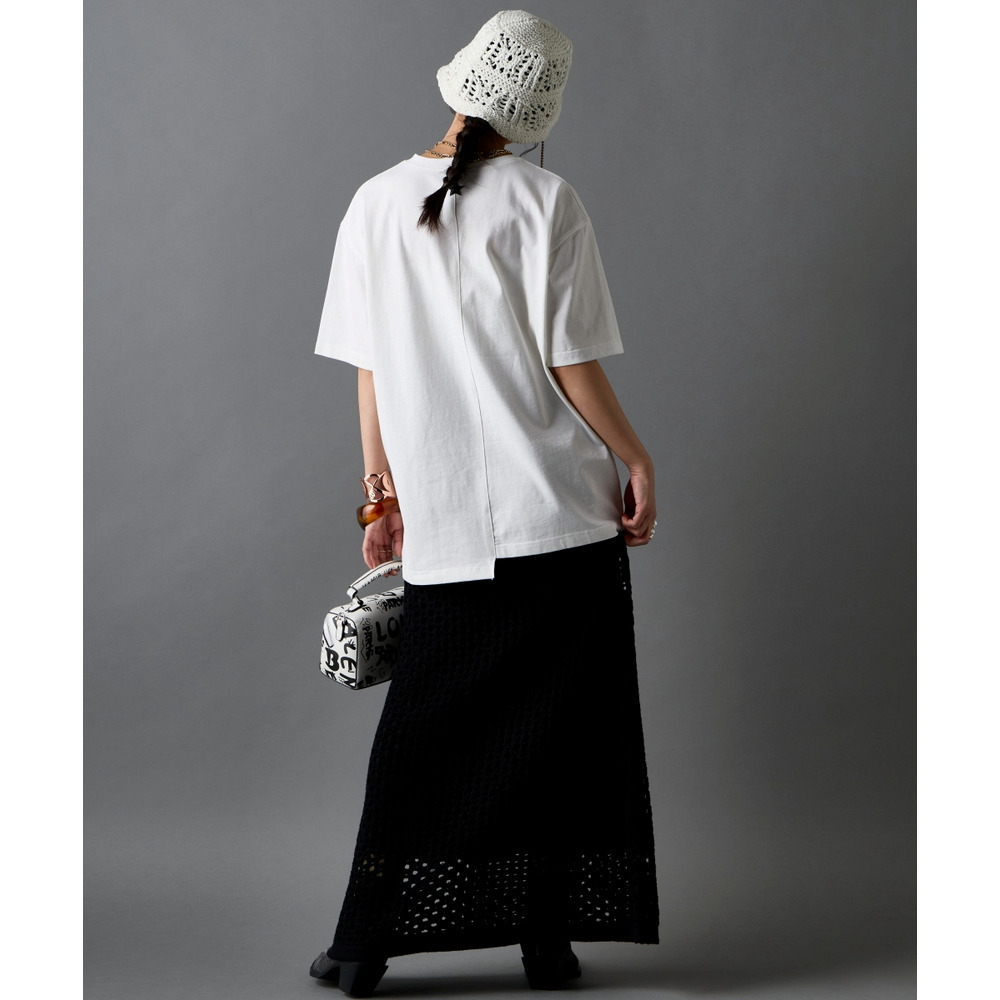 あえて中央に切り替えを施すことで、単なるプリントTシャツにはない、エッジの効いたモードな雰囲気に仕上げました。