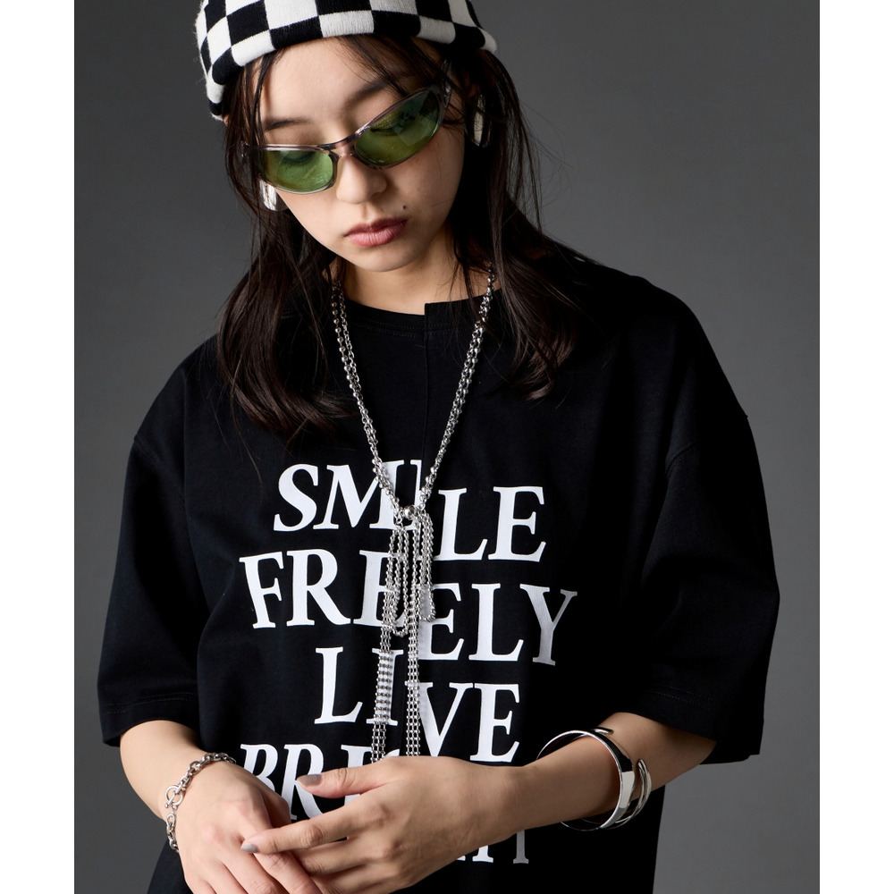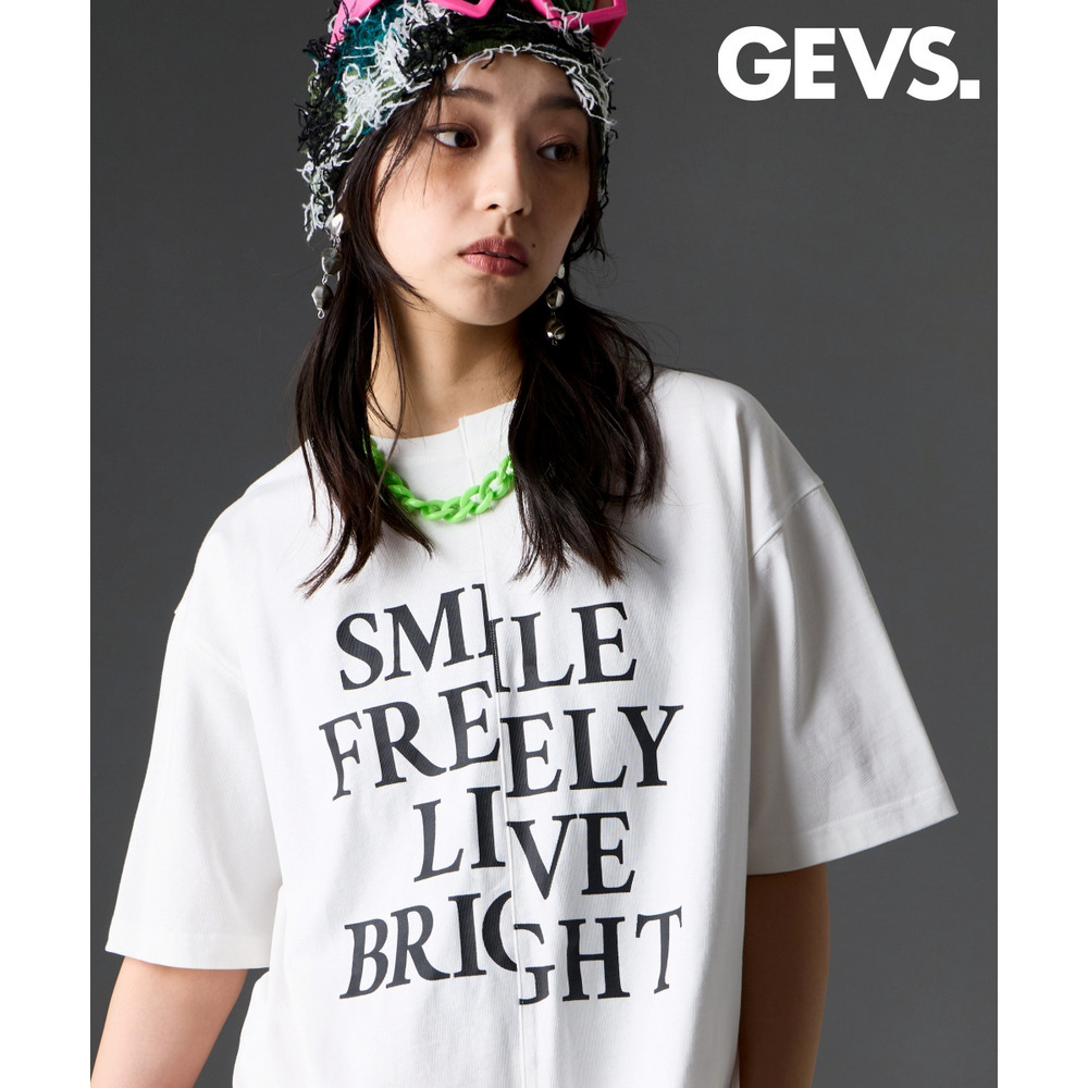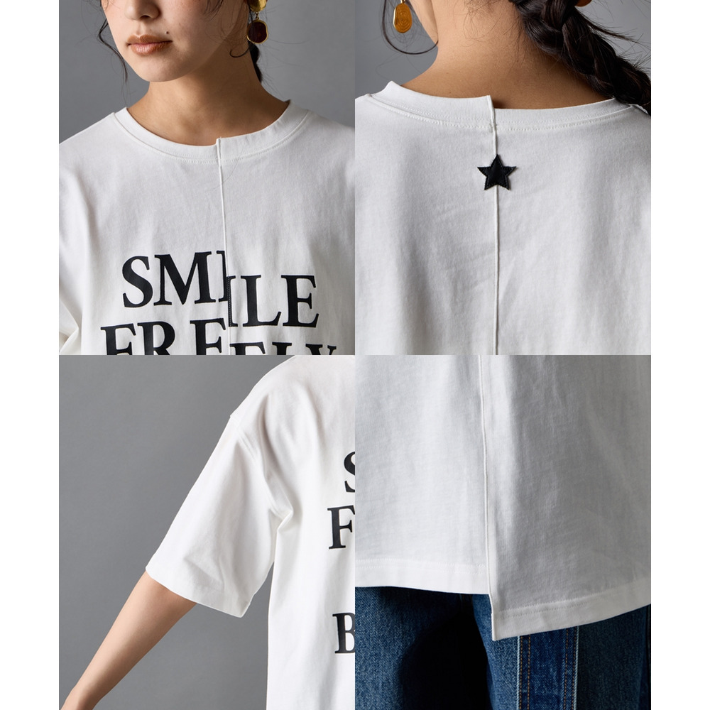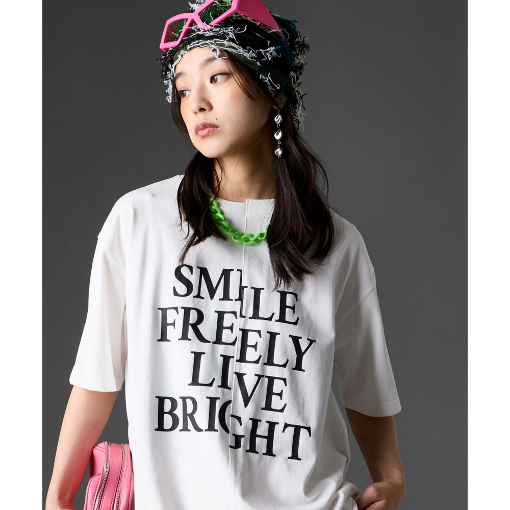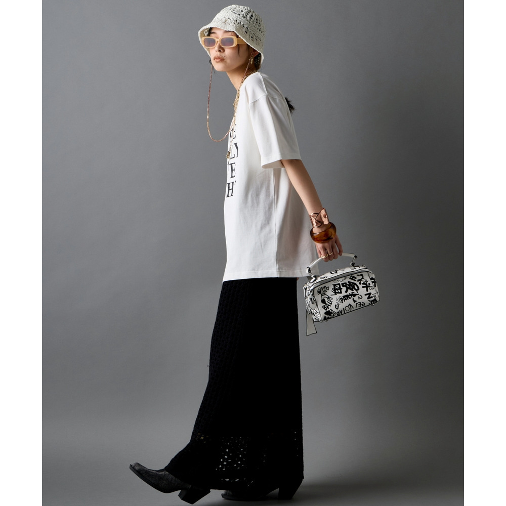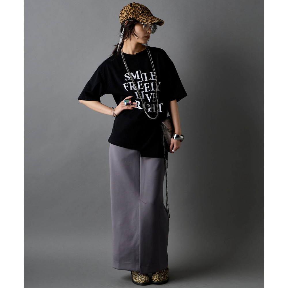 あえて中央に切り替えを施すことで、単なるプリントTシャツにはない、エッジの効いたモードな雰囲気に仕上げました。