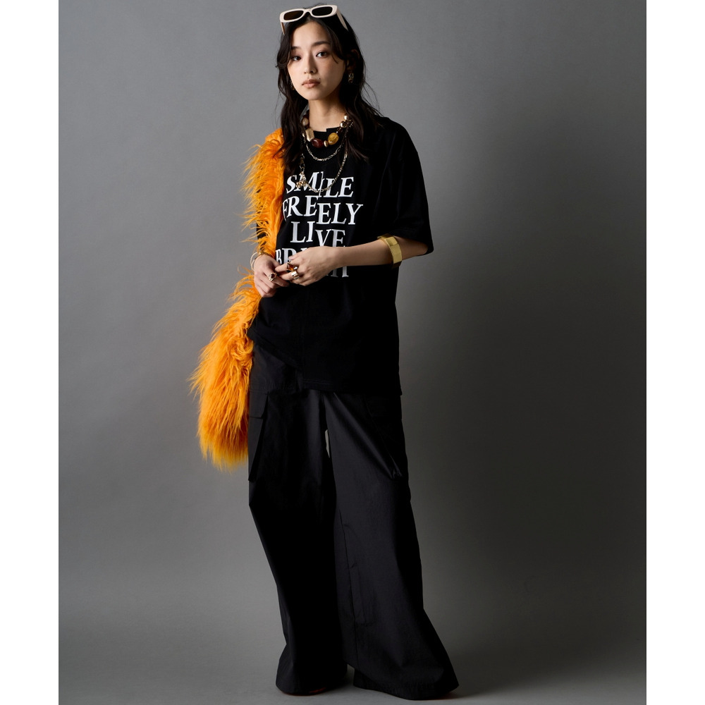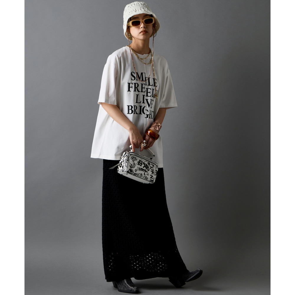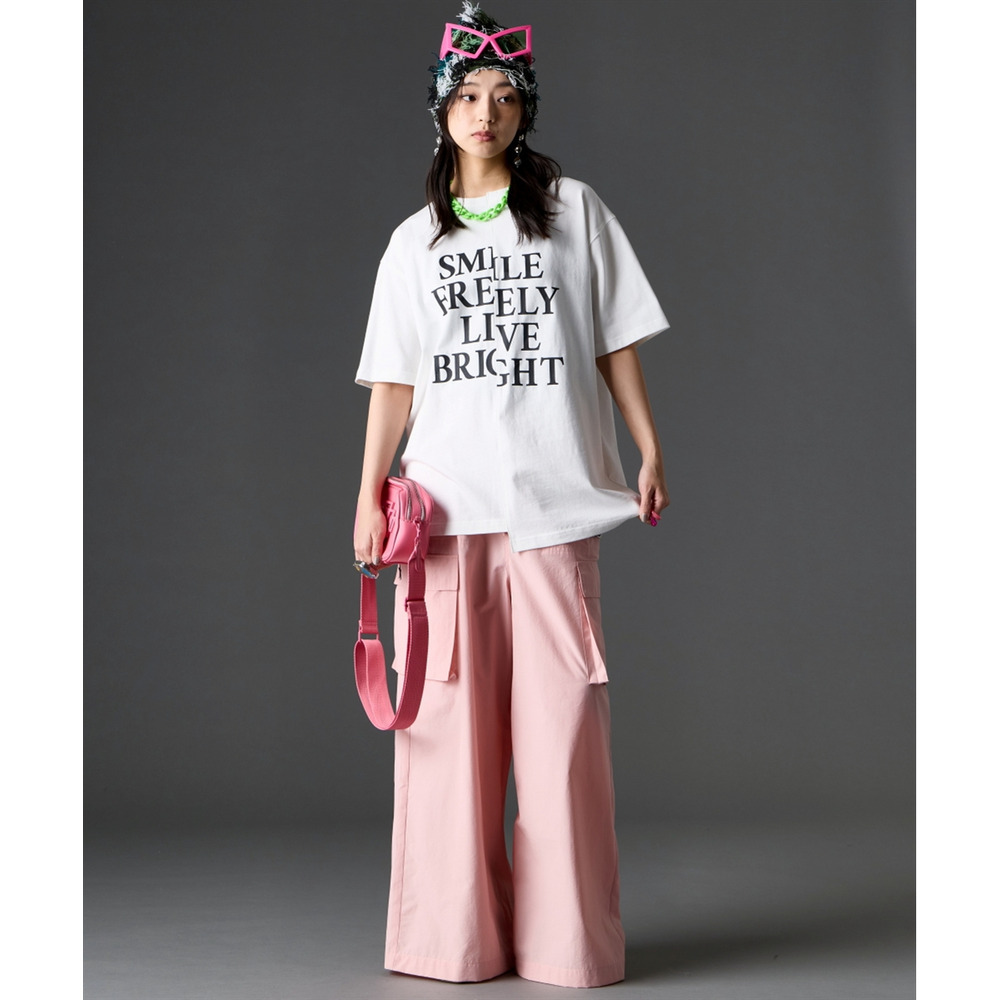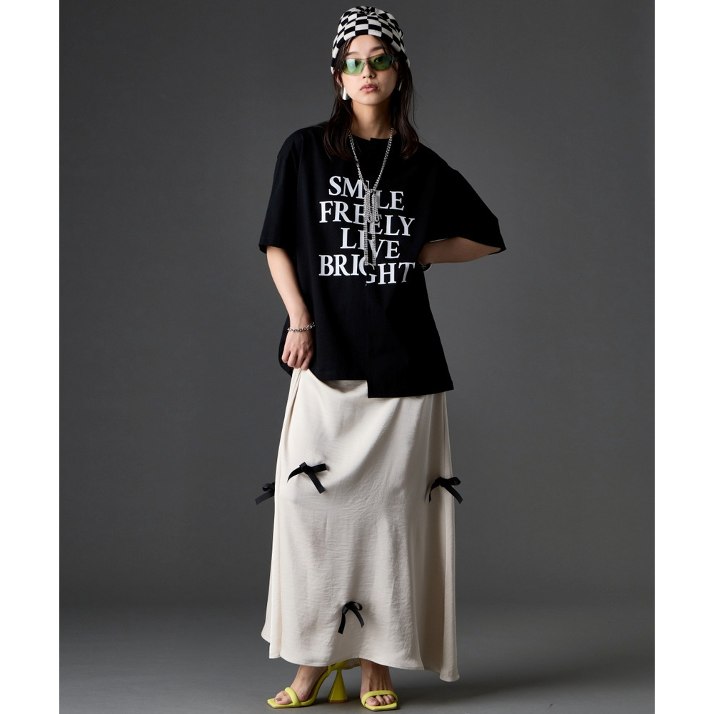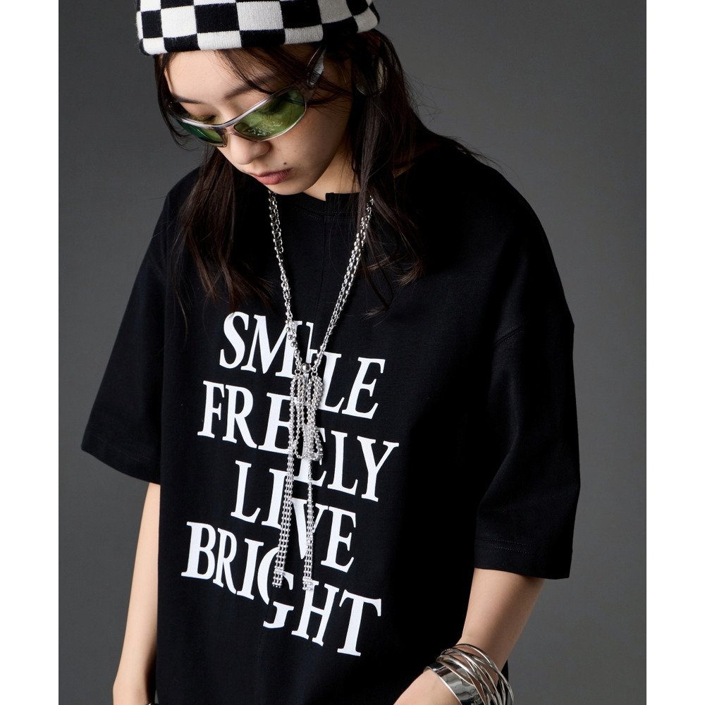 あえて中央に切り替えを施すことで、単なるプリントTシャツにはない、エッジの効いたモードな雰囲気に仕上げました。