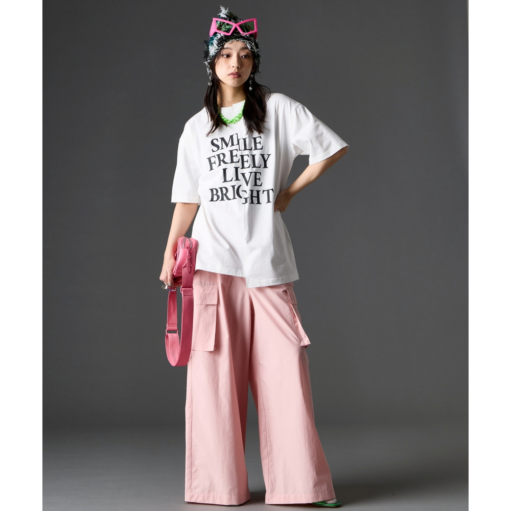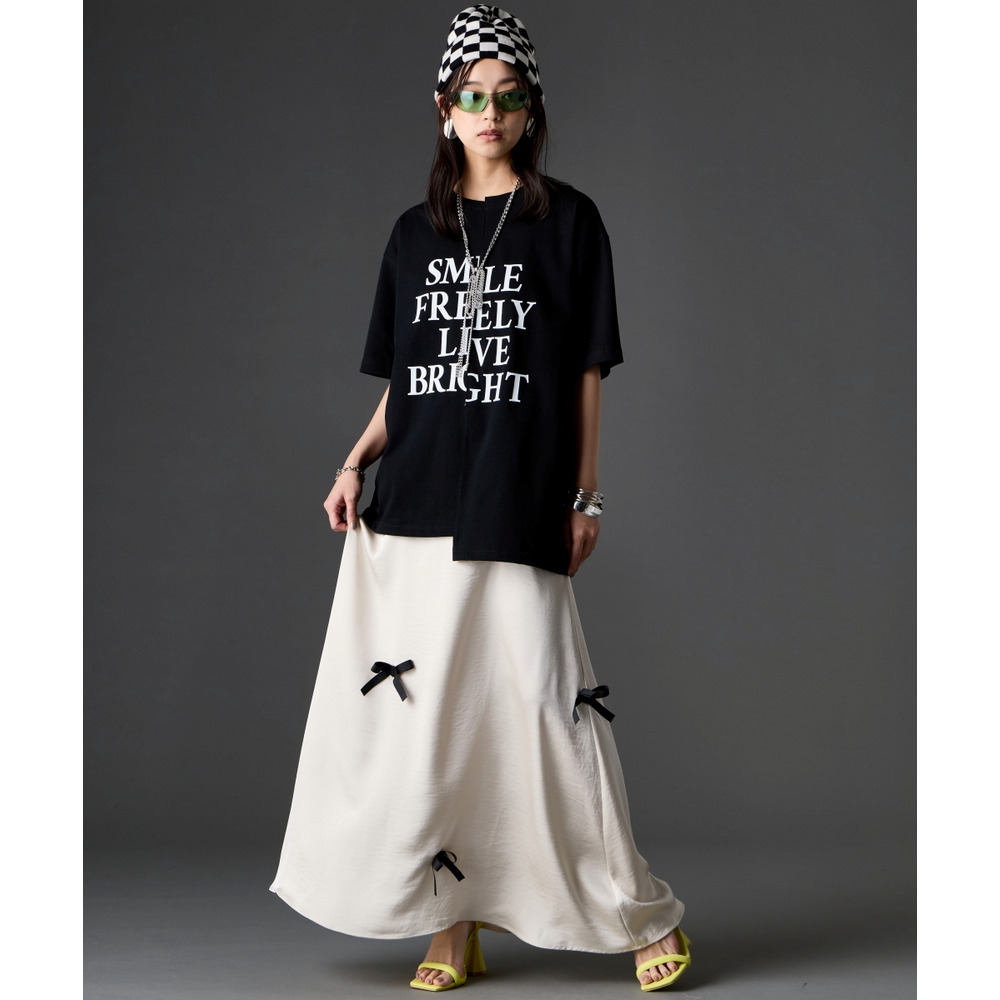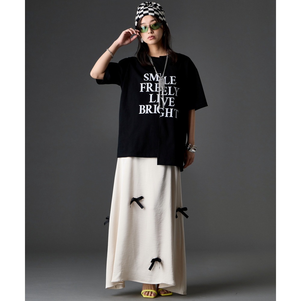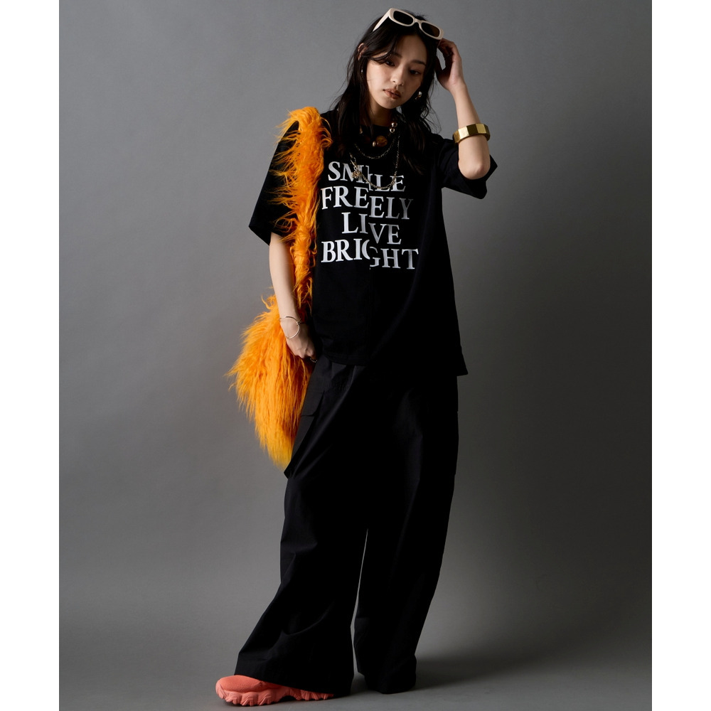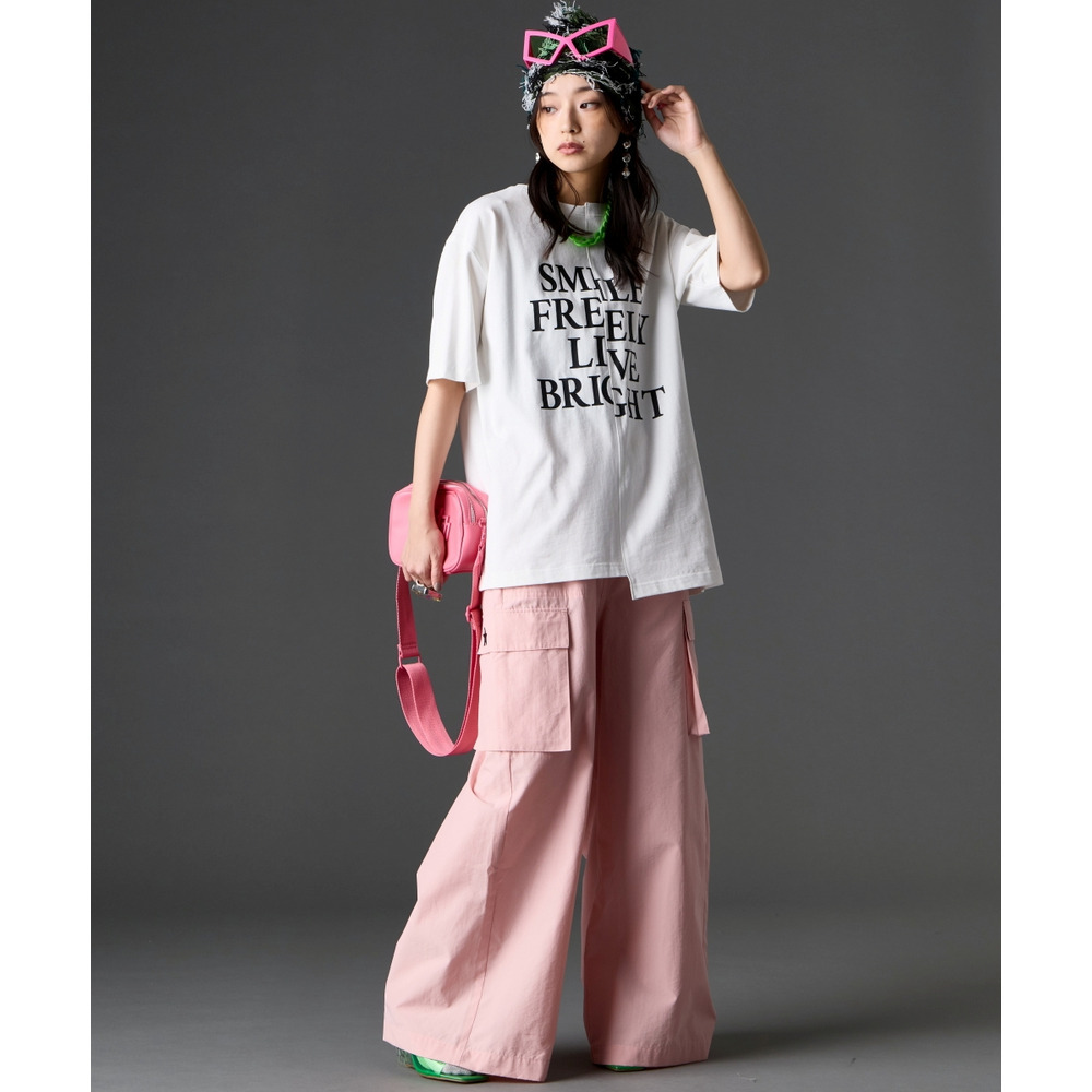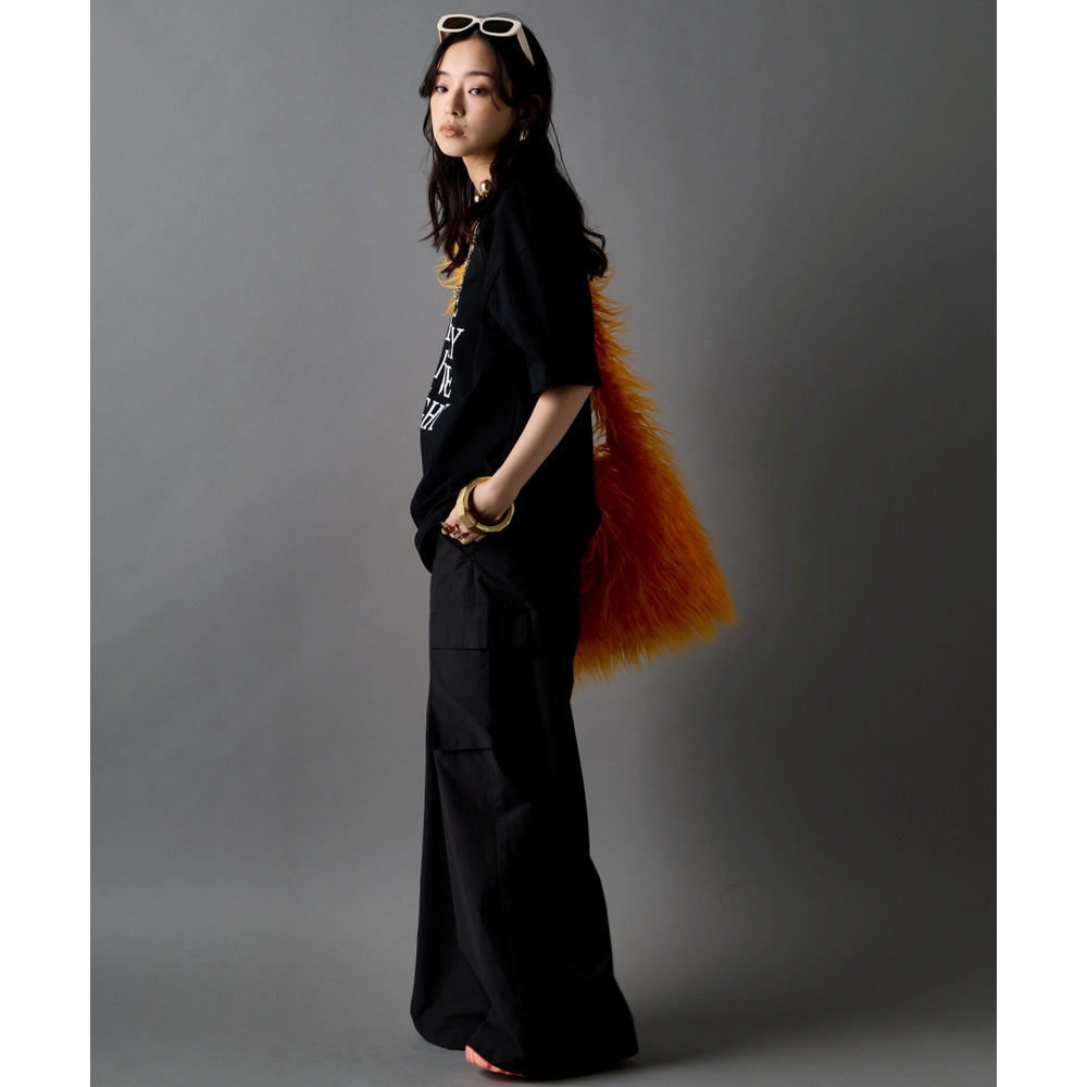 あえて中央に切り替えを施すことで、単なるプリントTシャツにはない、エッジの効いたモードな雰囲気に仕上げました。