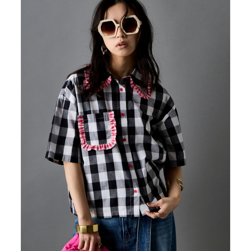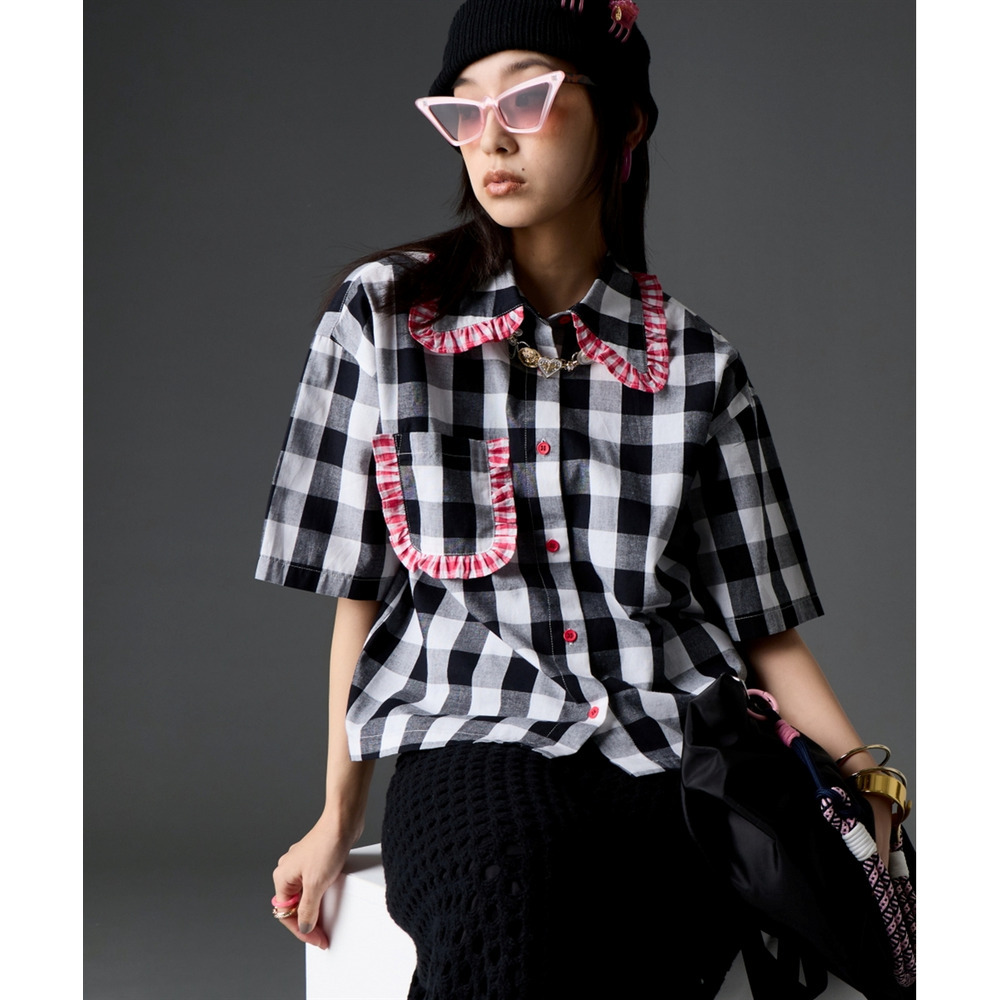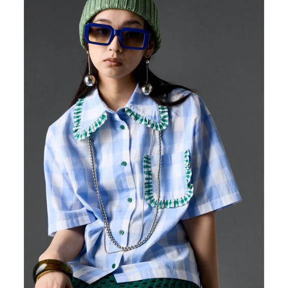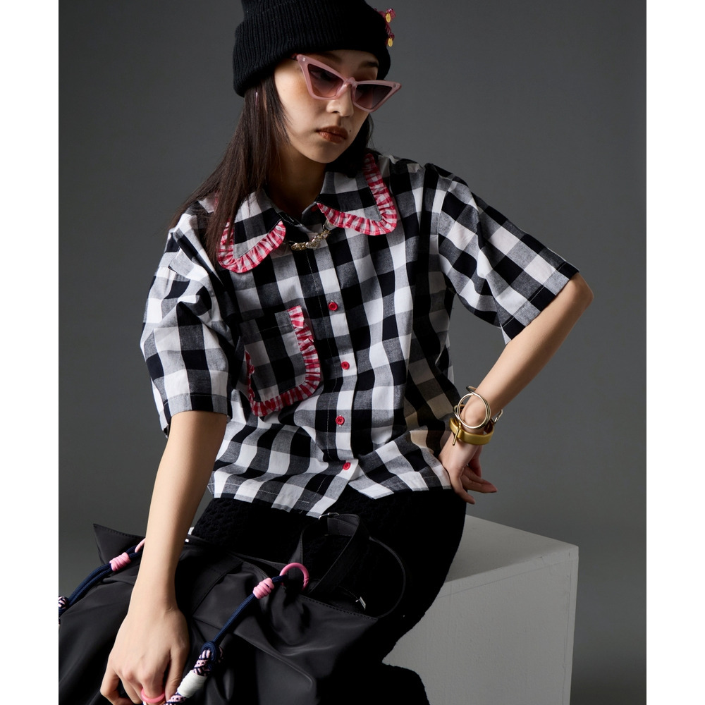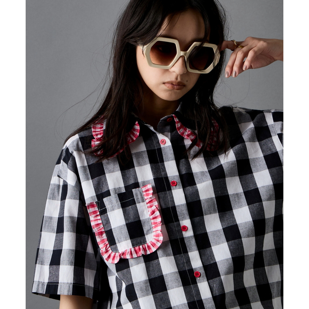 スタンダードなチェックシャツに、遊び心とモードなエッセンスを詰め込んだデザインブラウス。
