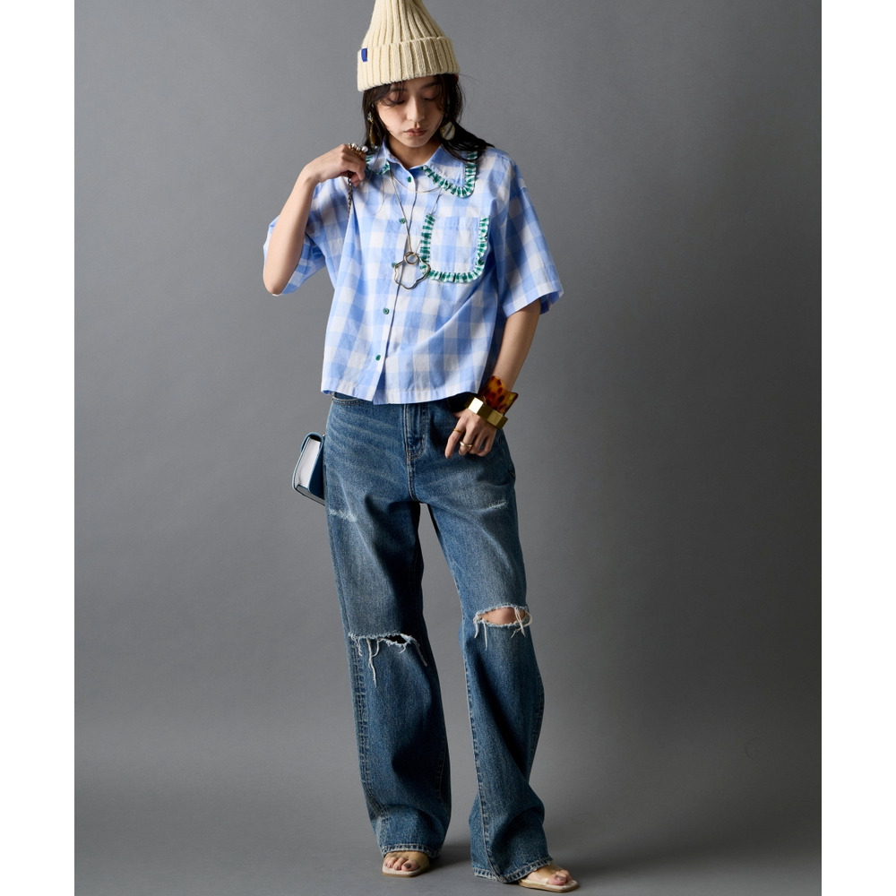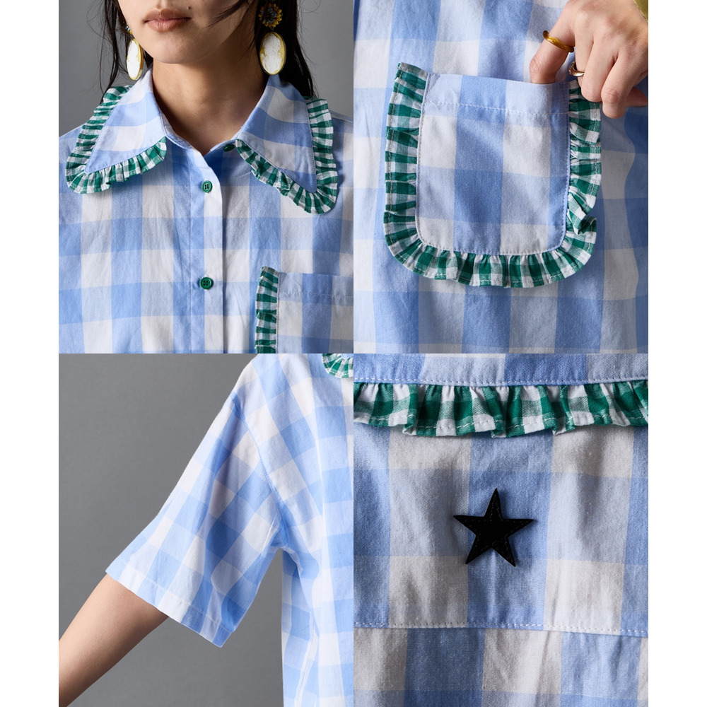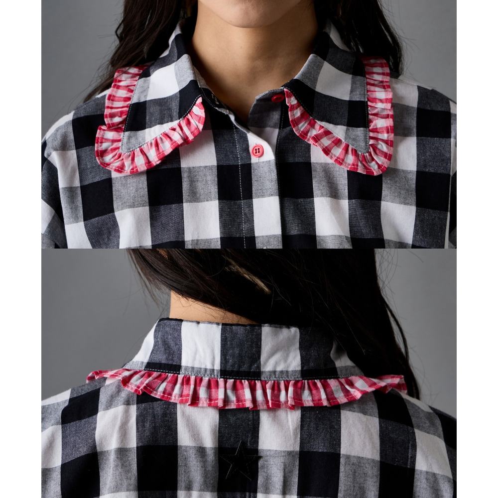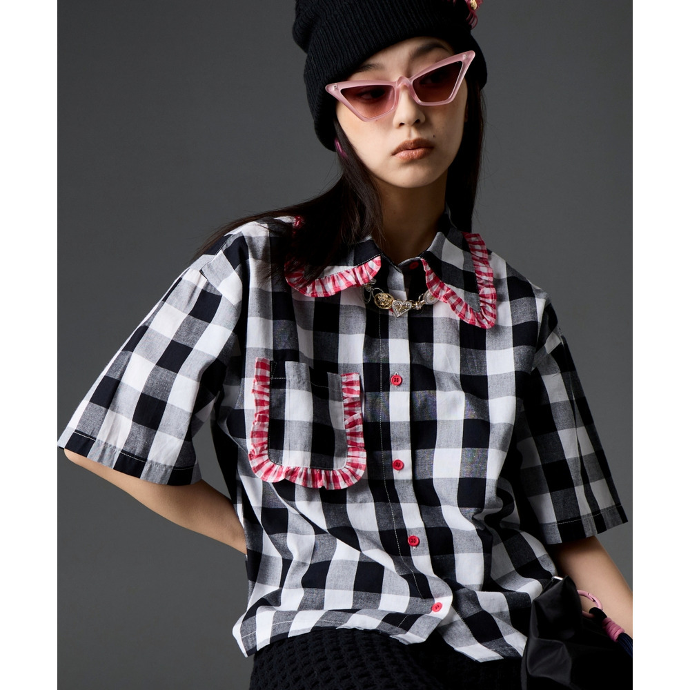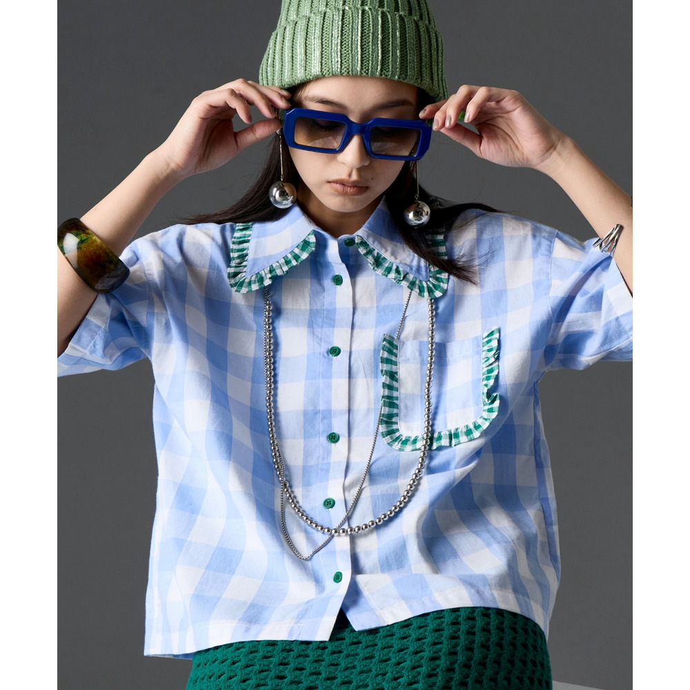 スタンダードなチェックシャツに、遊び心とモードなエッセンスを詰め込んだデザインブラウス。