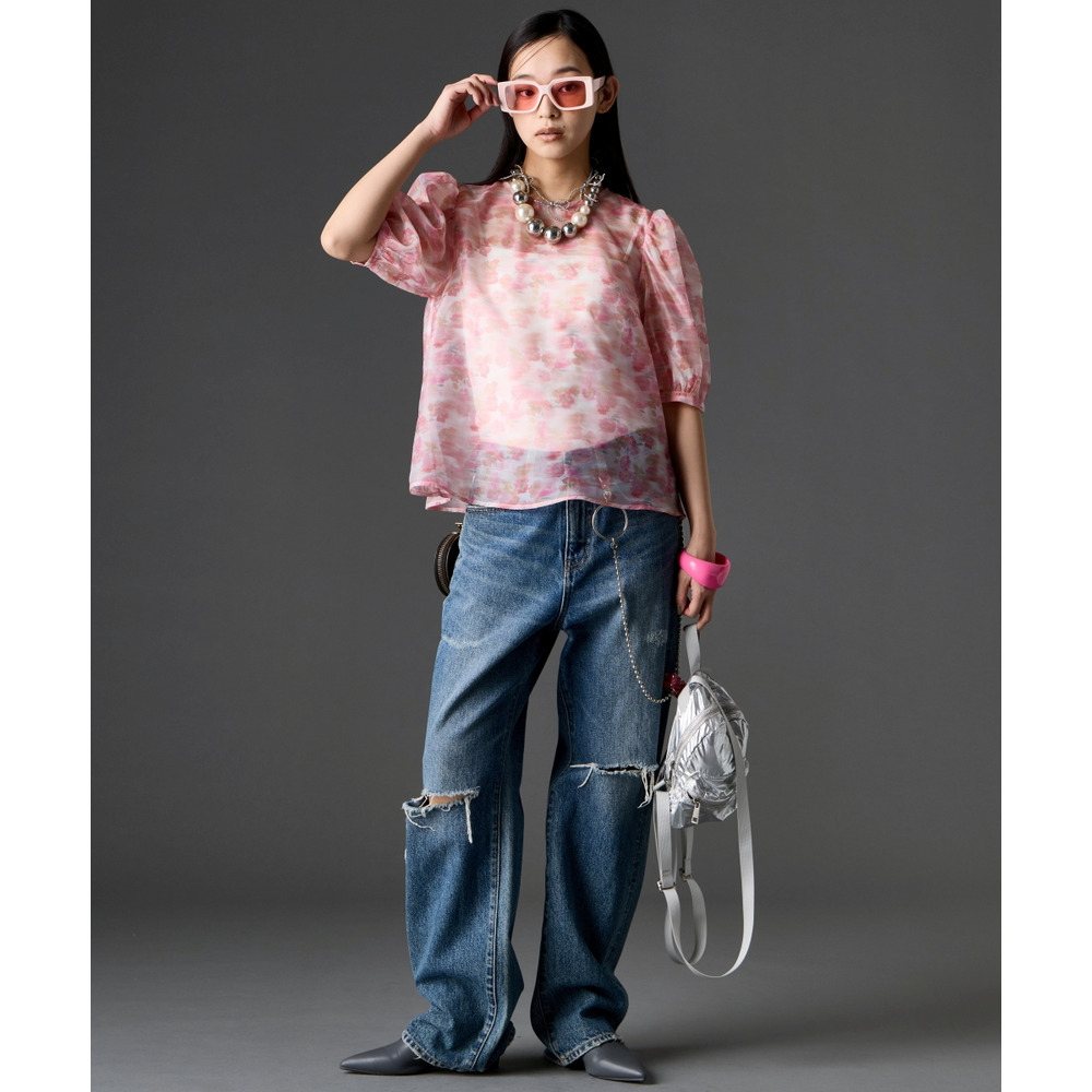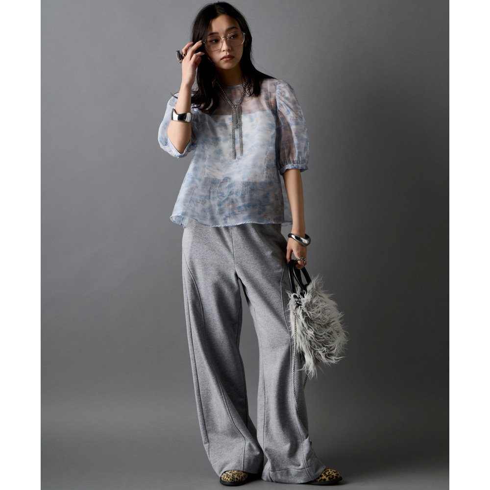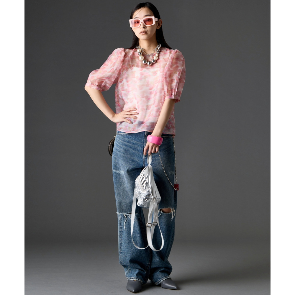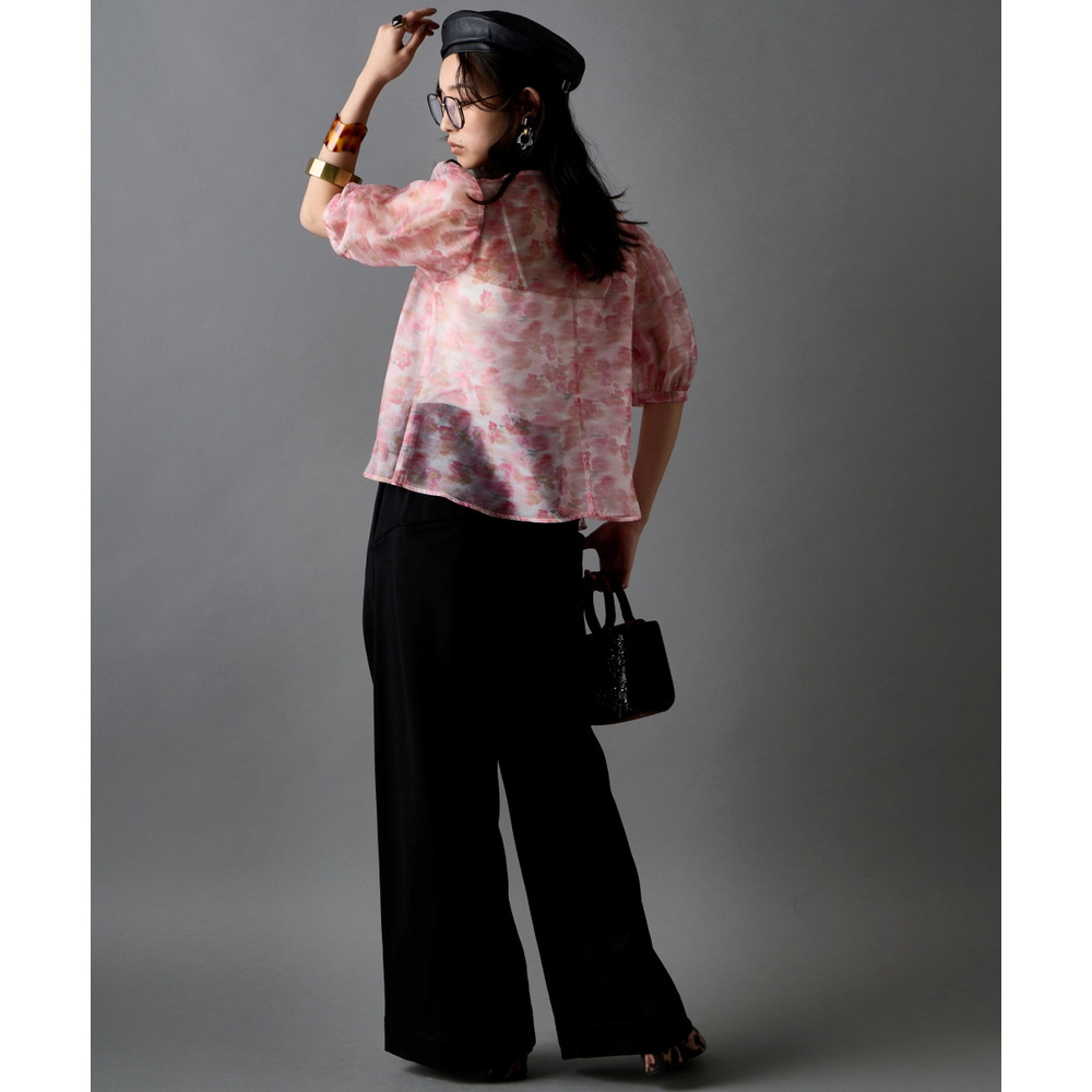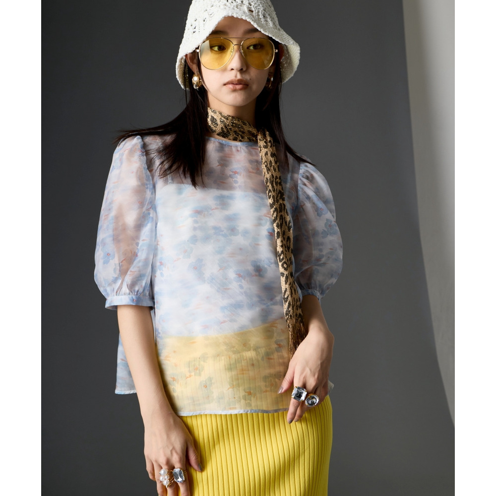 "繊細なシアー素材に、滲むようなフラワープリントを乗せたブラウス。