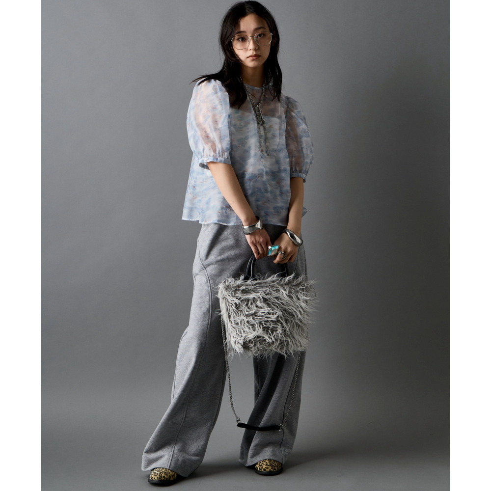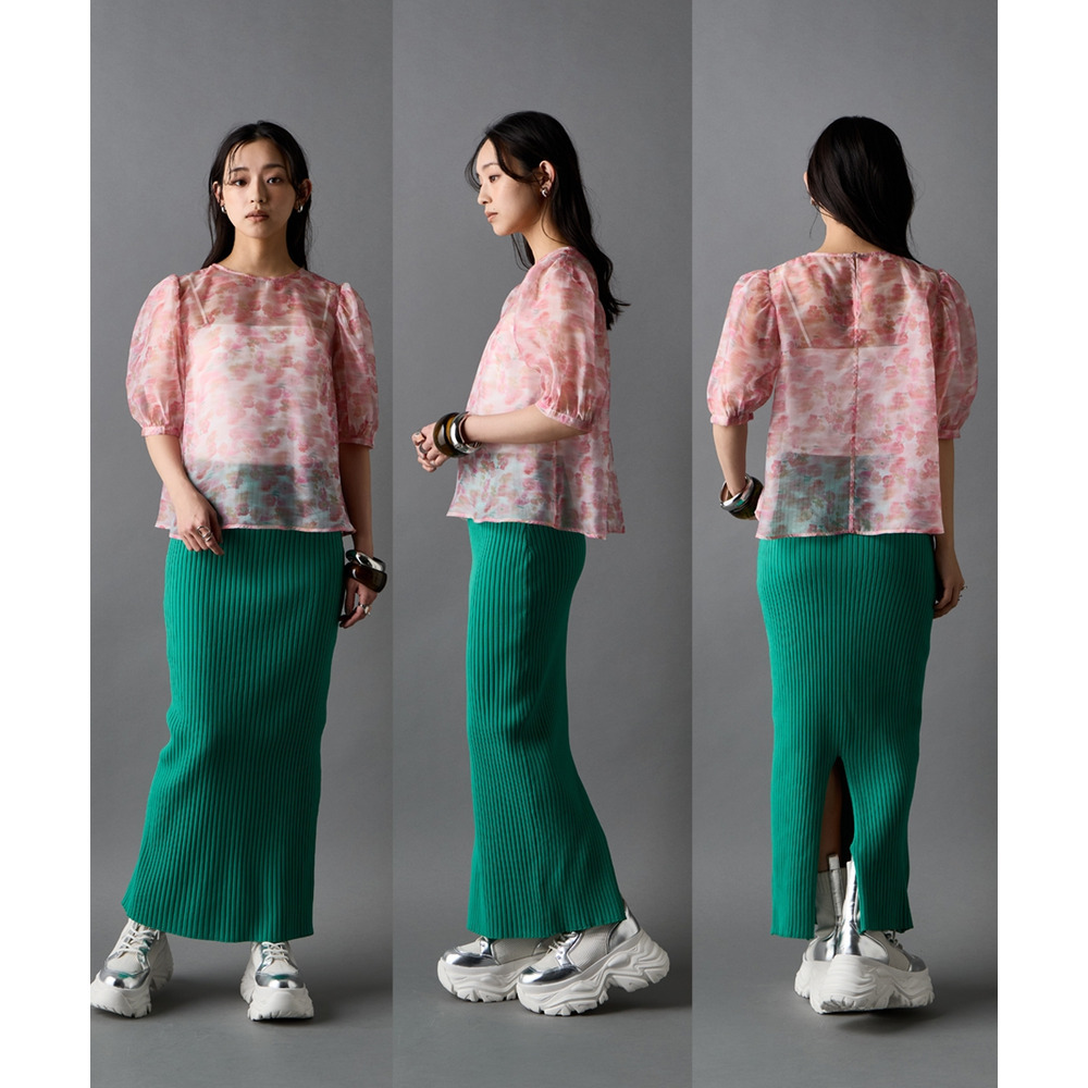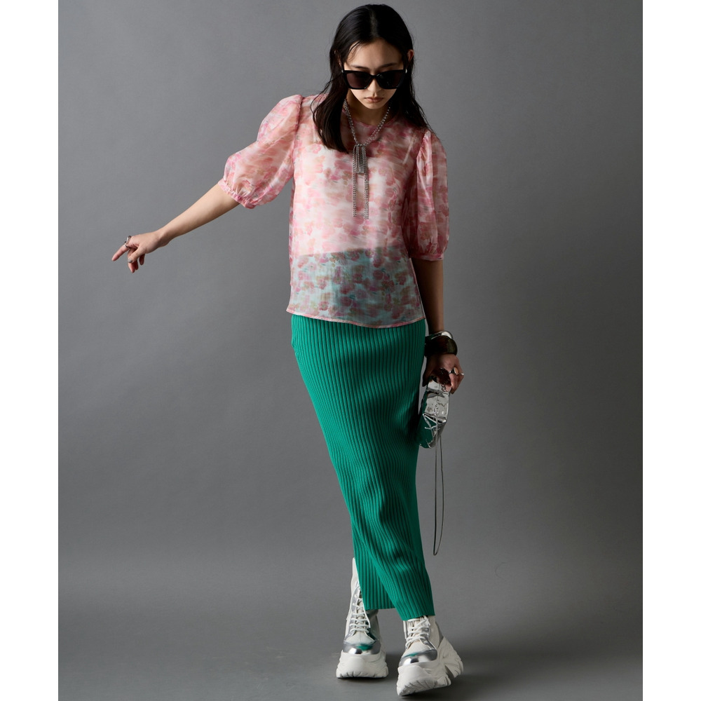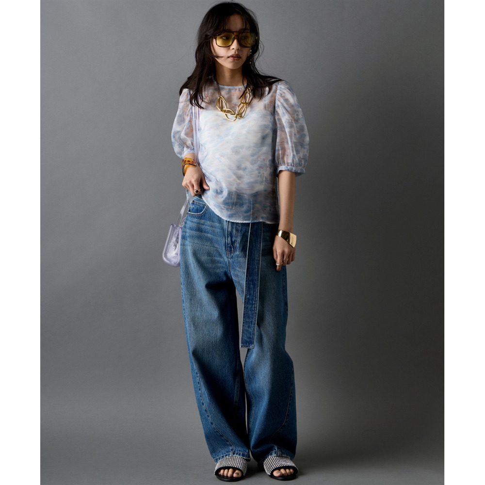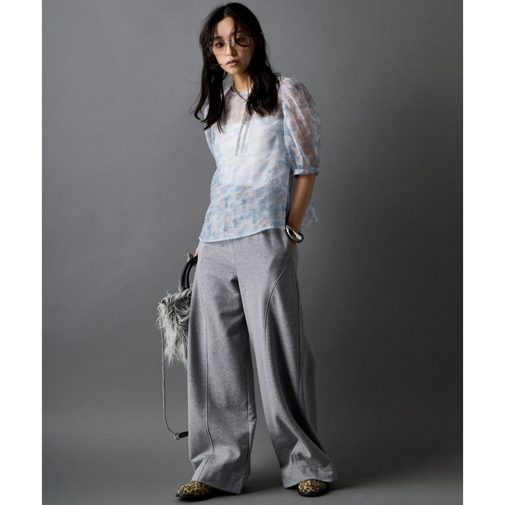 "繊細なシアー素材に、滲むようなフラワープリントを乗せたブラウス。
