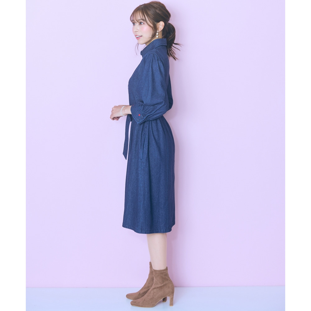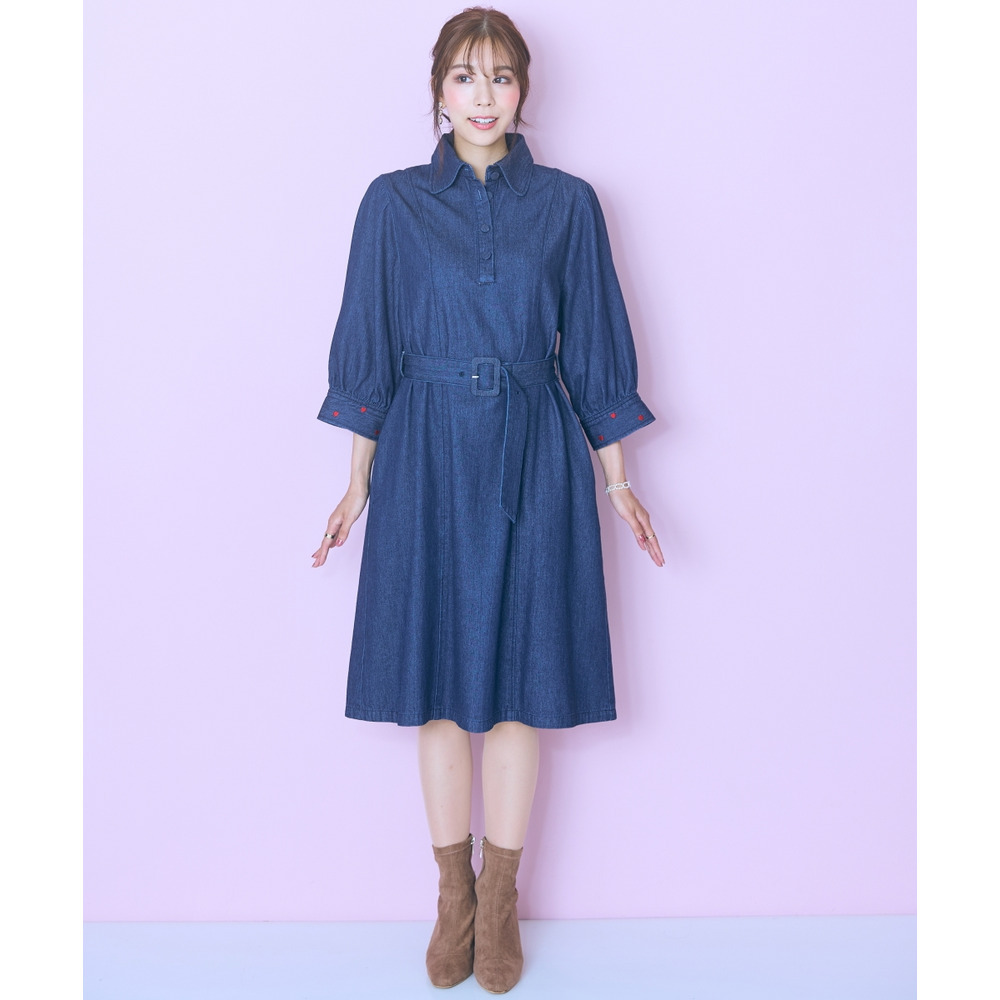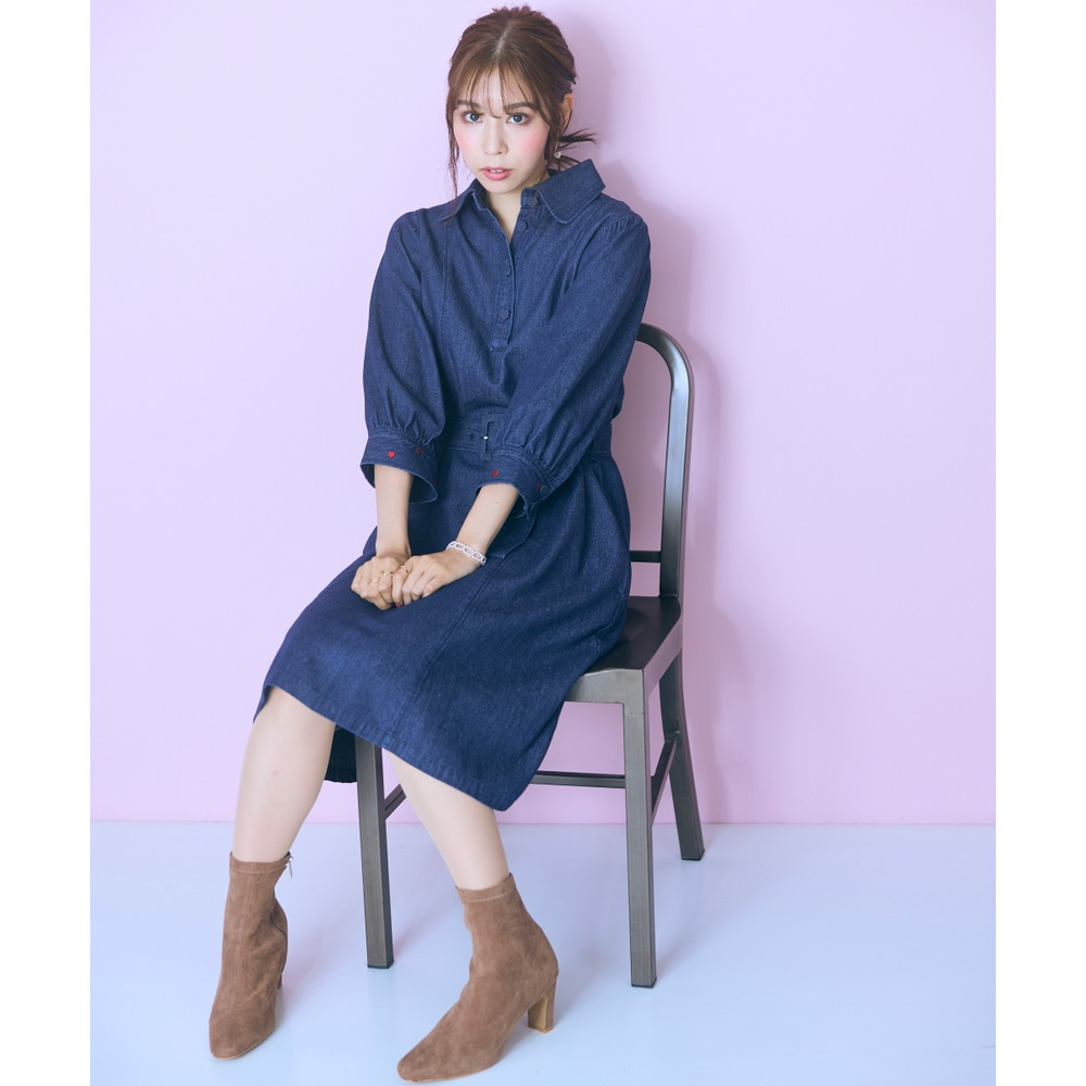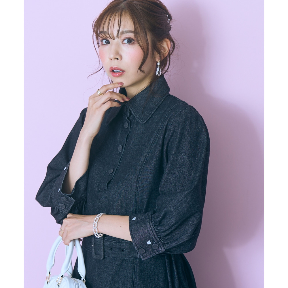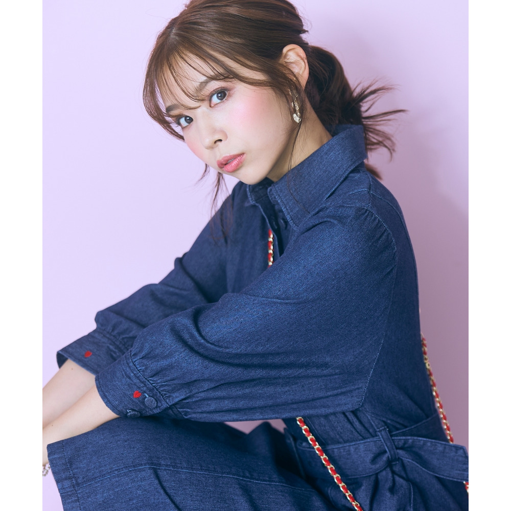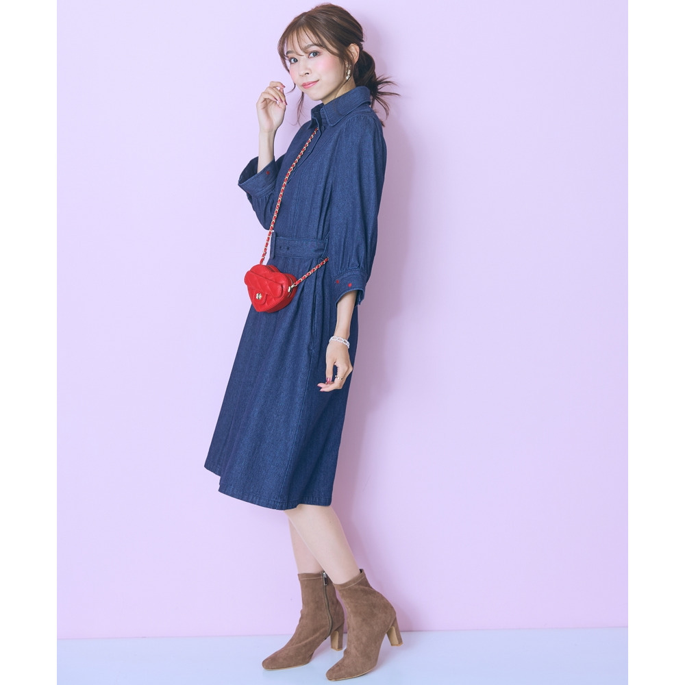 デニムのカジュアルさとハート刺しゅうの甘さが絶妙にマッチしたシャツワンピース。