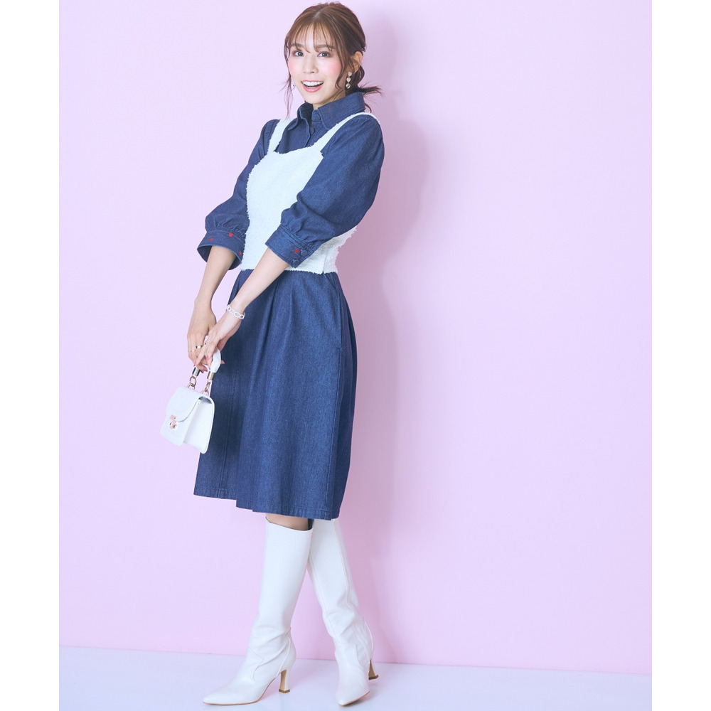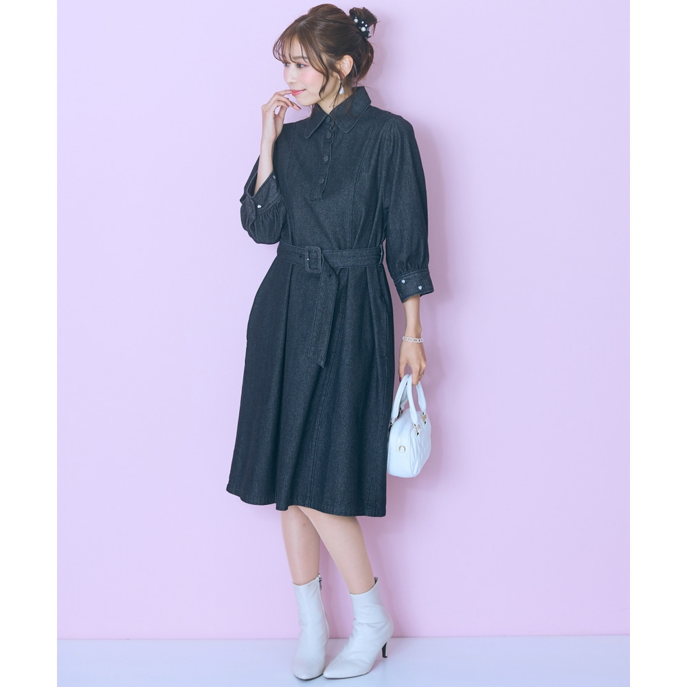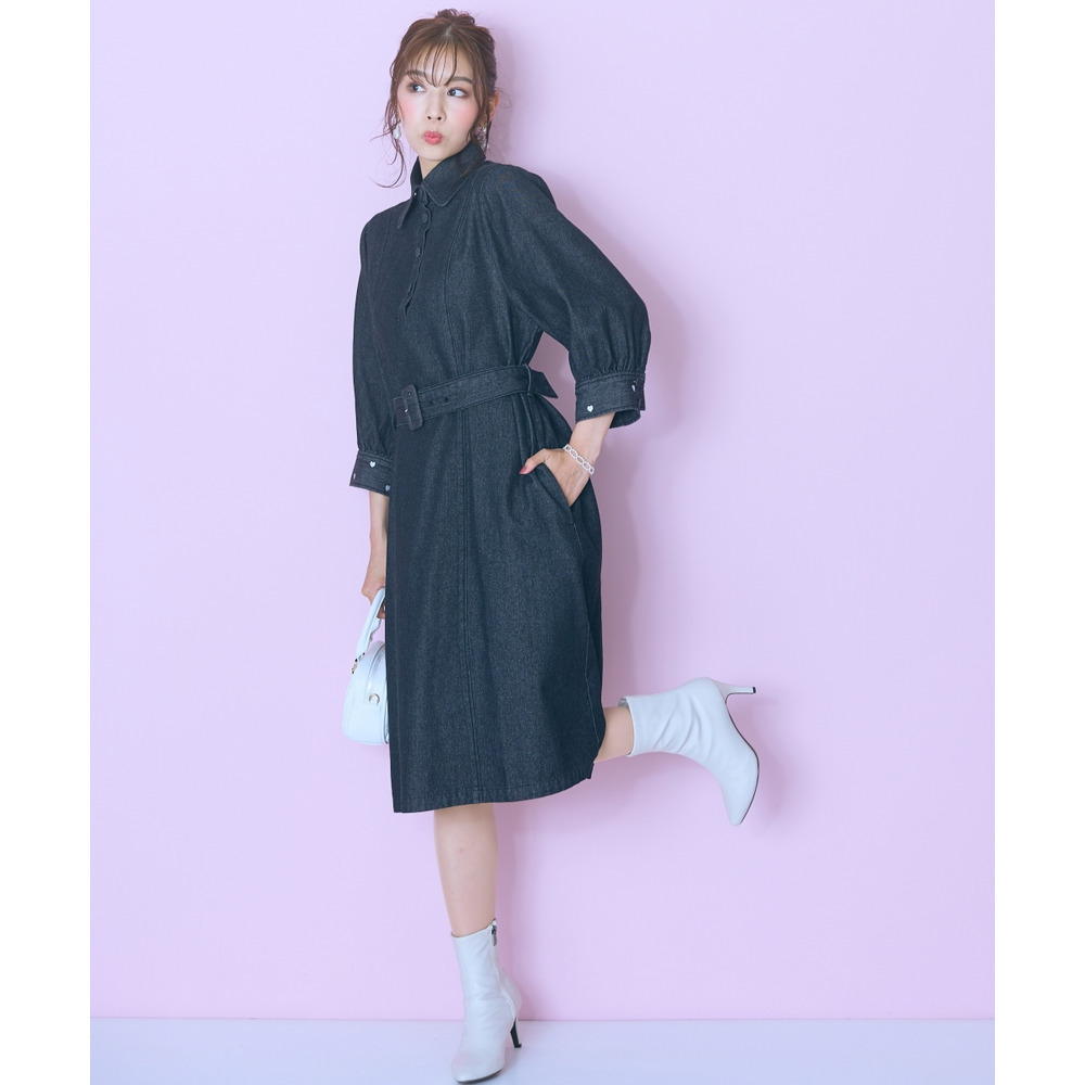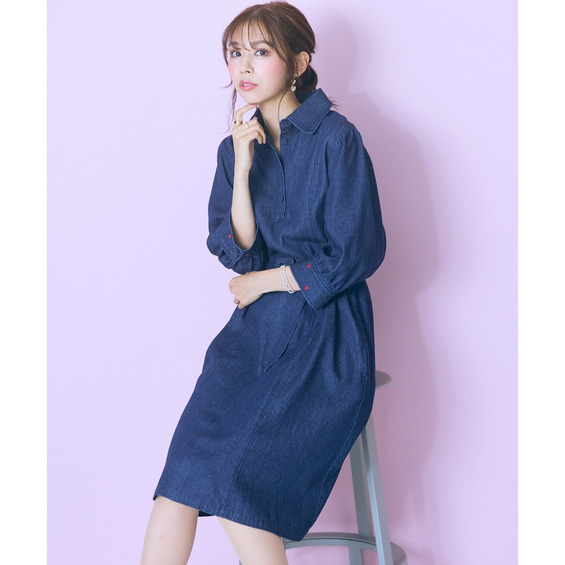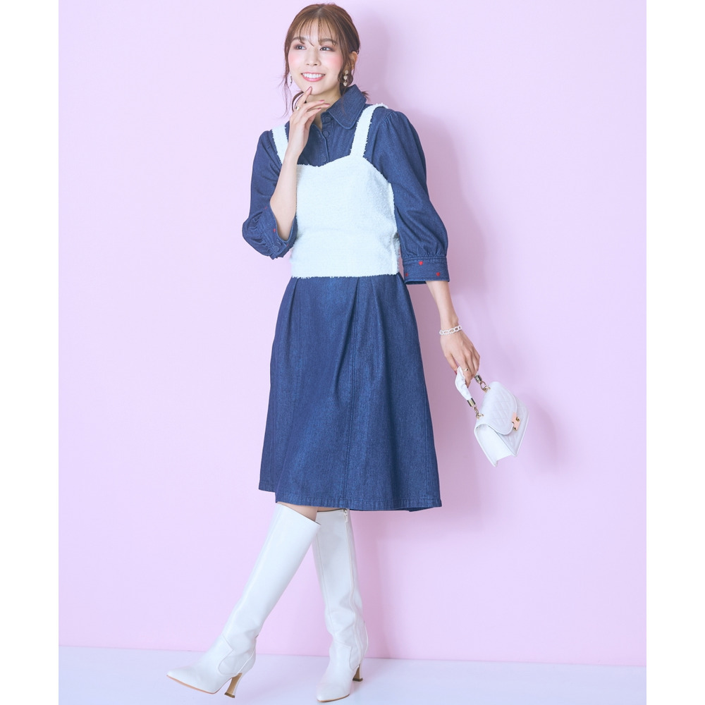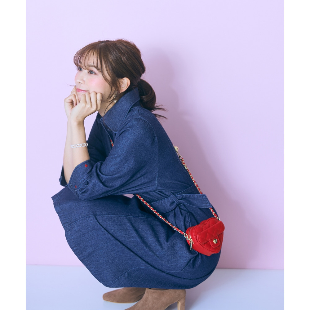 デニムのカジュアルさとハート刺しゅうの甘さが絶妙にマッチしたシャツワンピース。