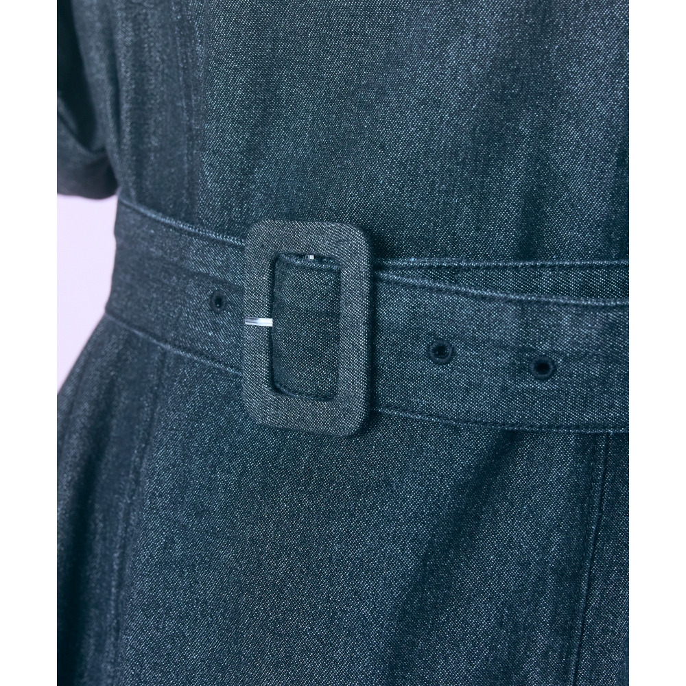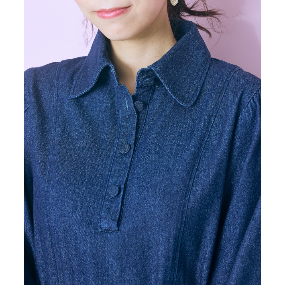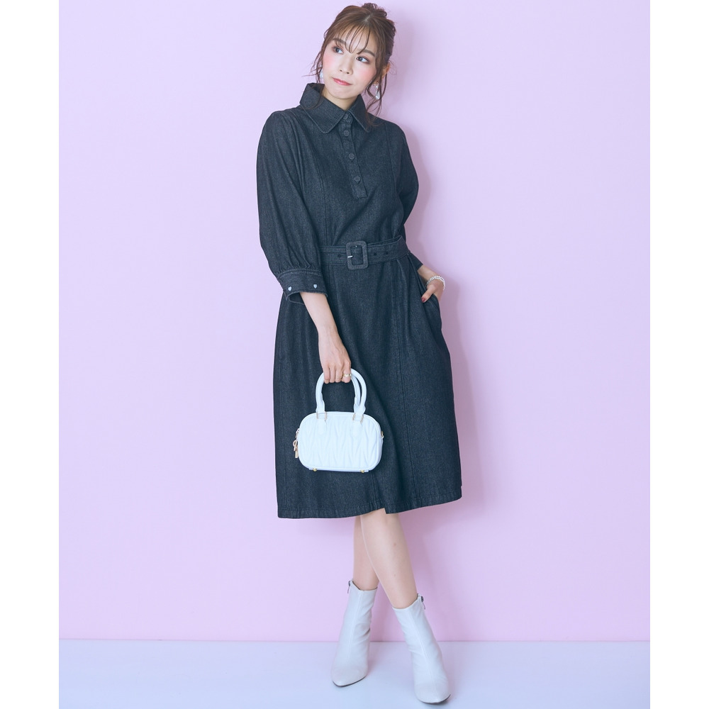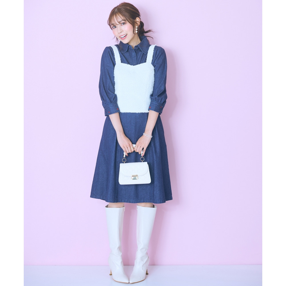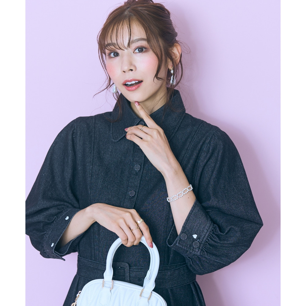 デニムのカジュアルさとハート刺しゅうの甘さが絶妙にマッチしたシャツワンピース。