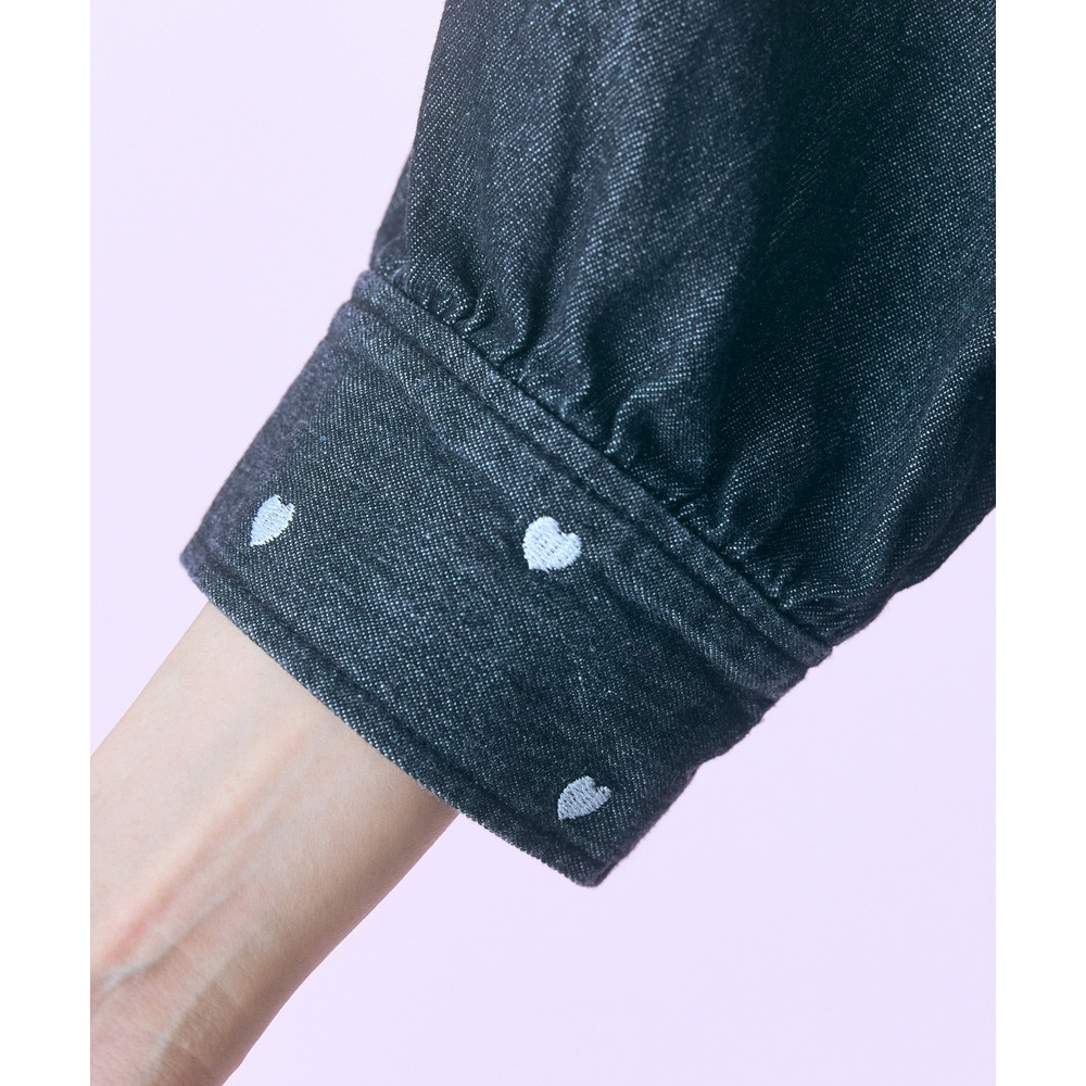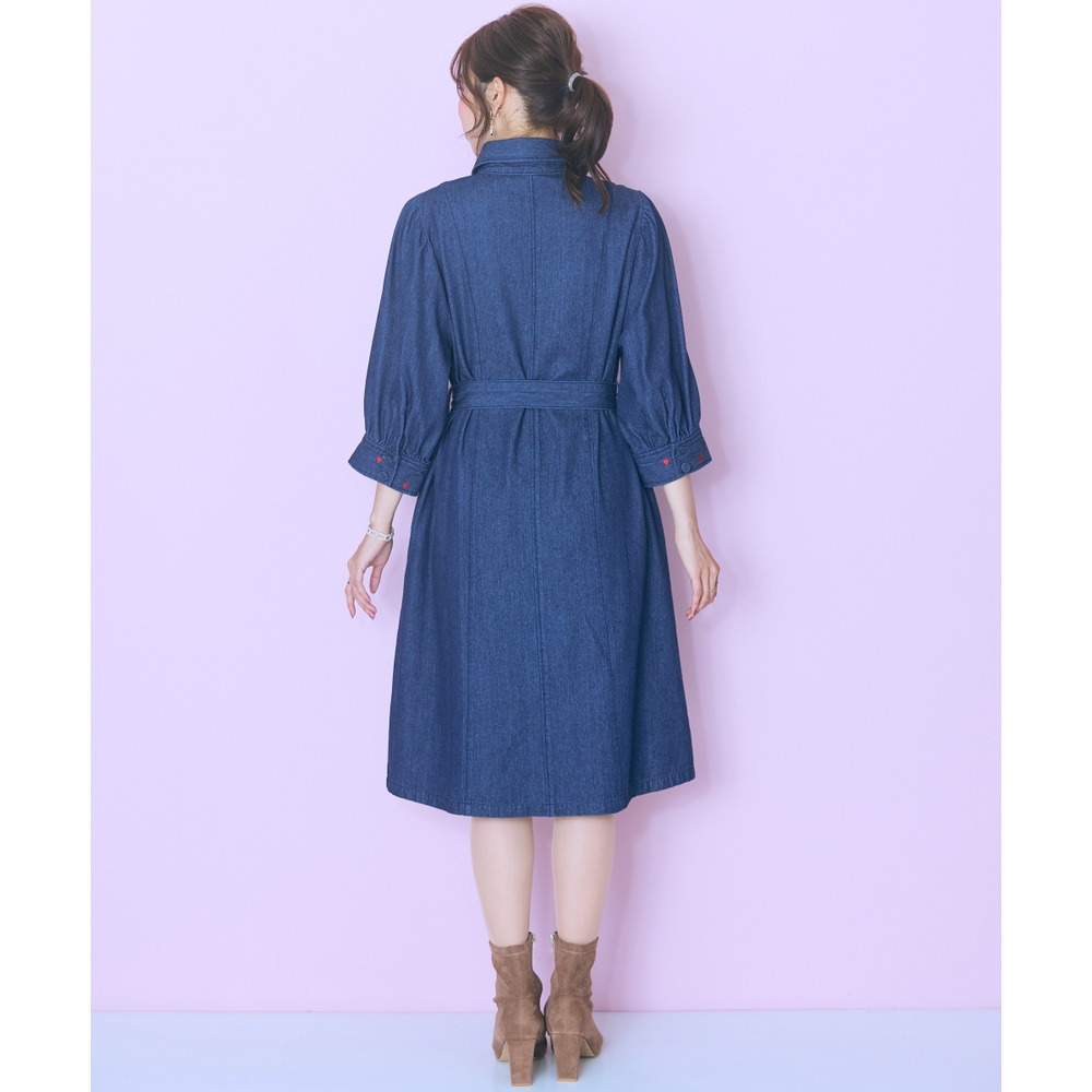 • 袖口ハート刺しゅうデニムシャツワンピース 大きいサイズ marun16