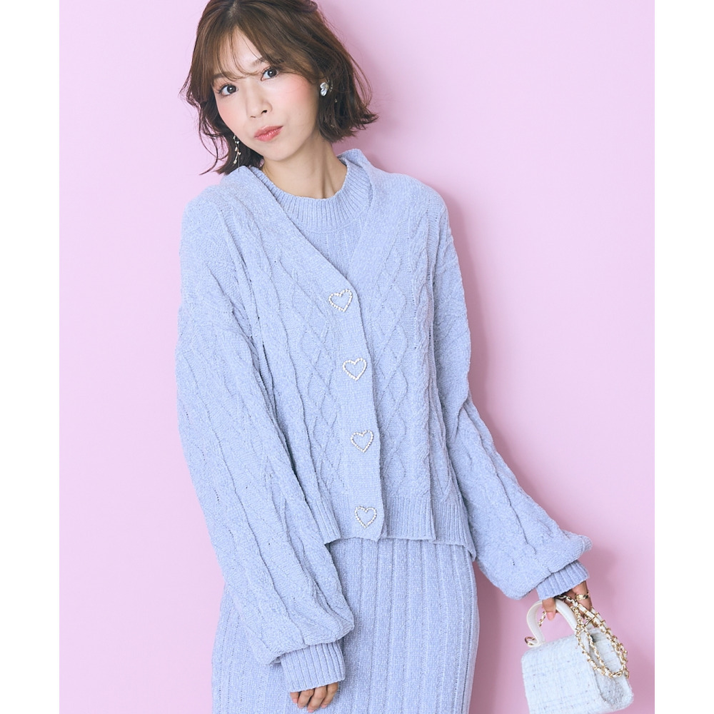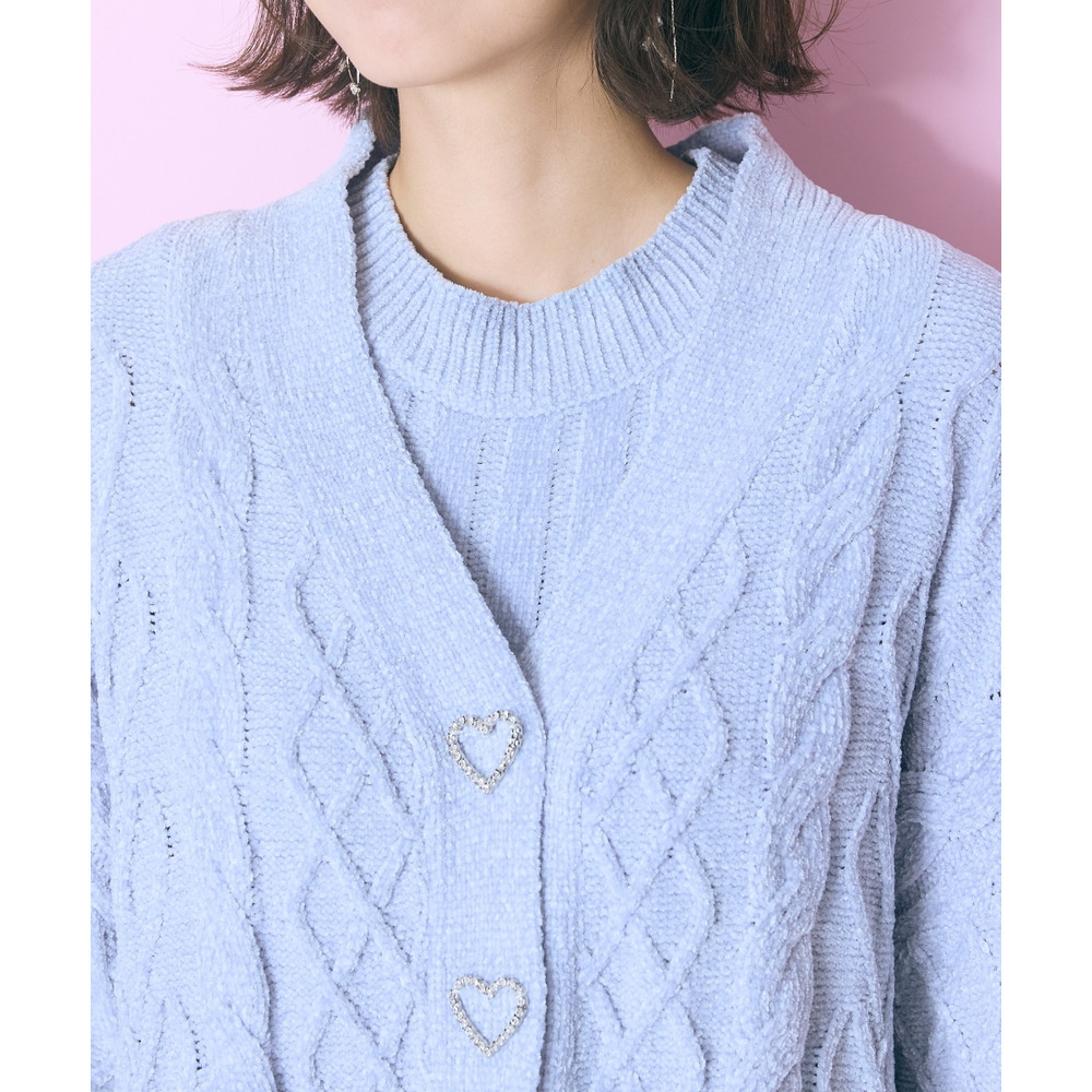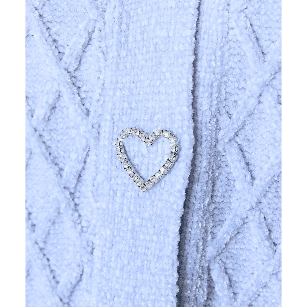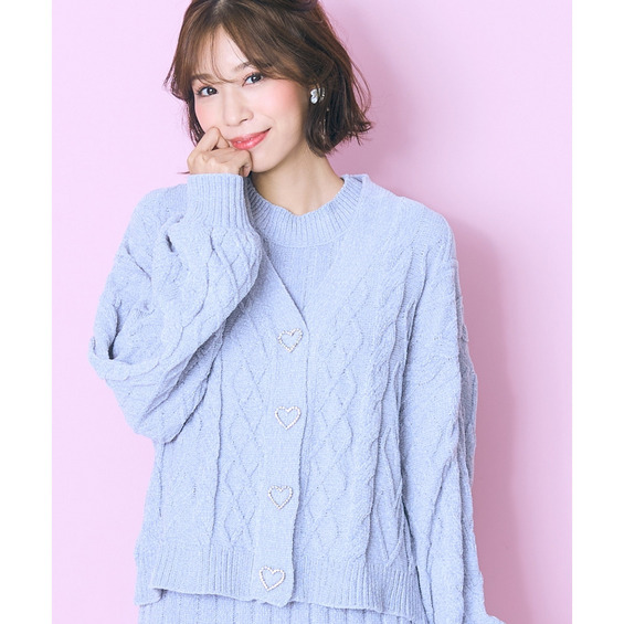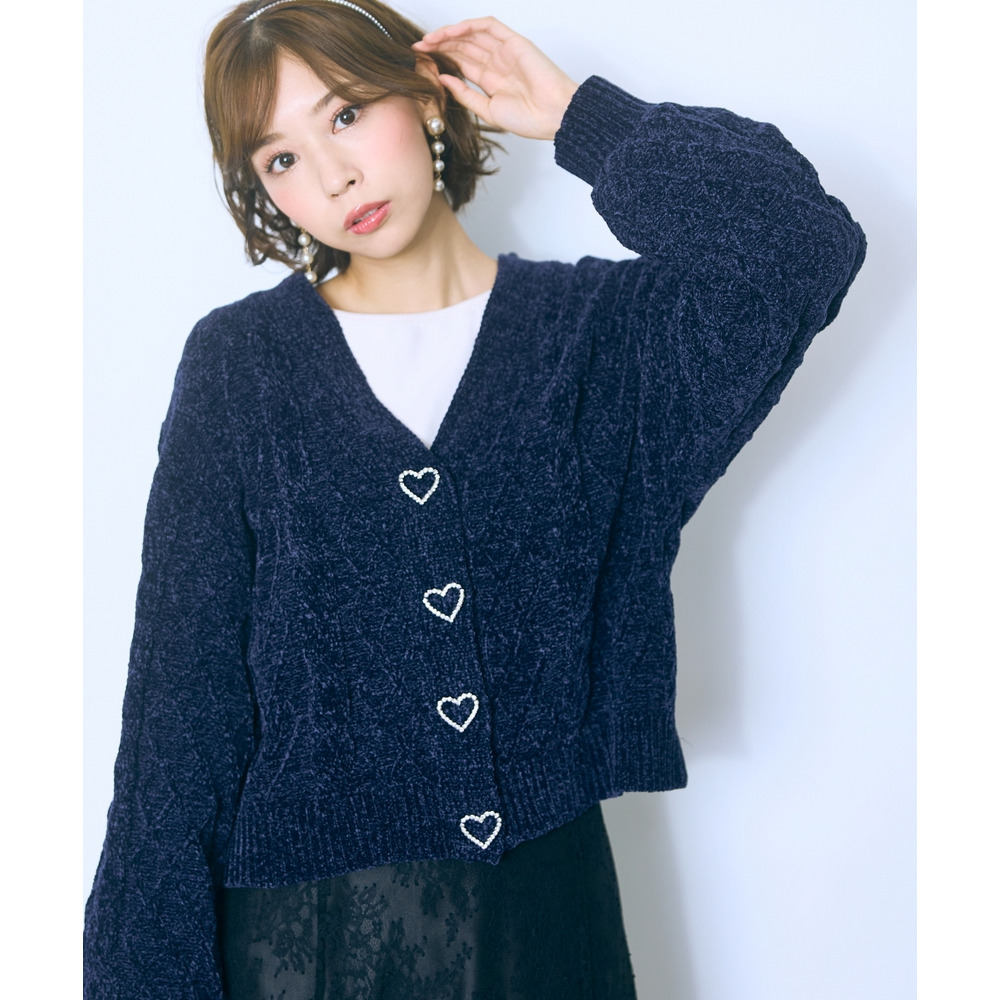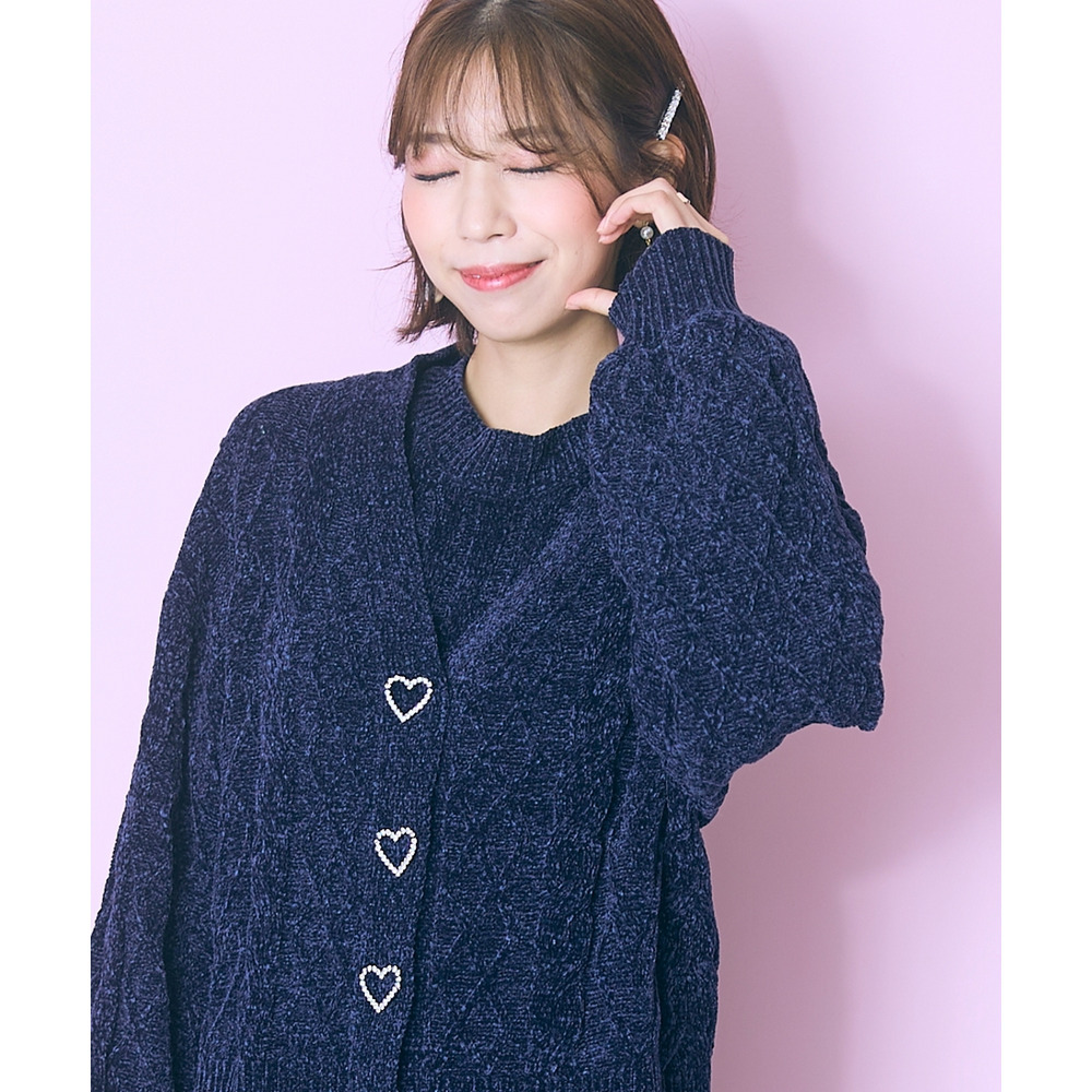 ハートモチーフのスナップボタンとハート柄の編地でさりげない可愛らしさをプラス。
