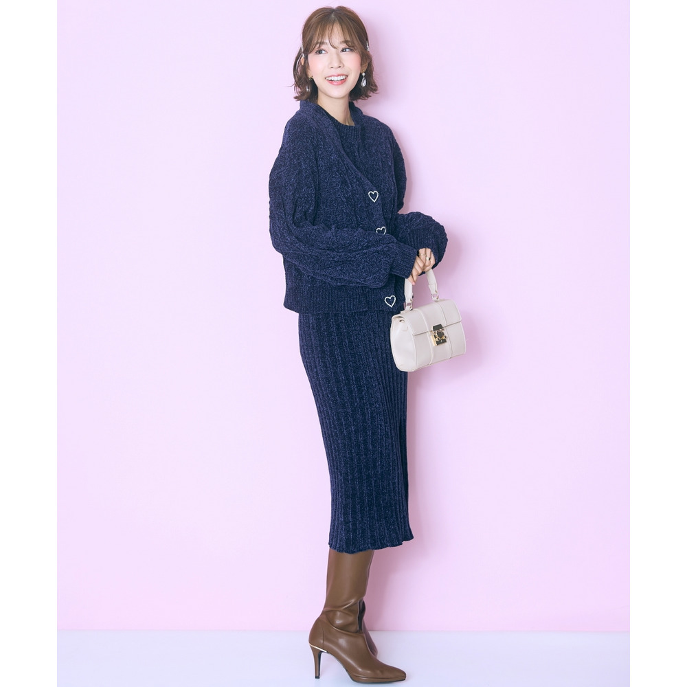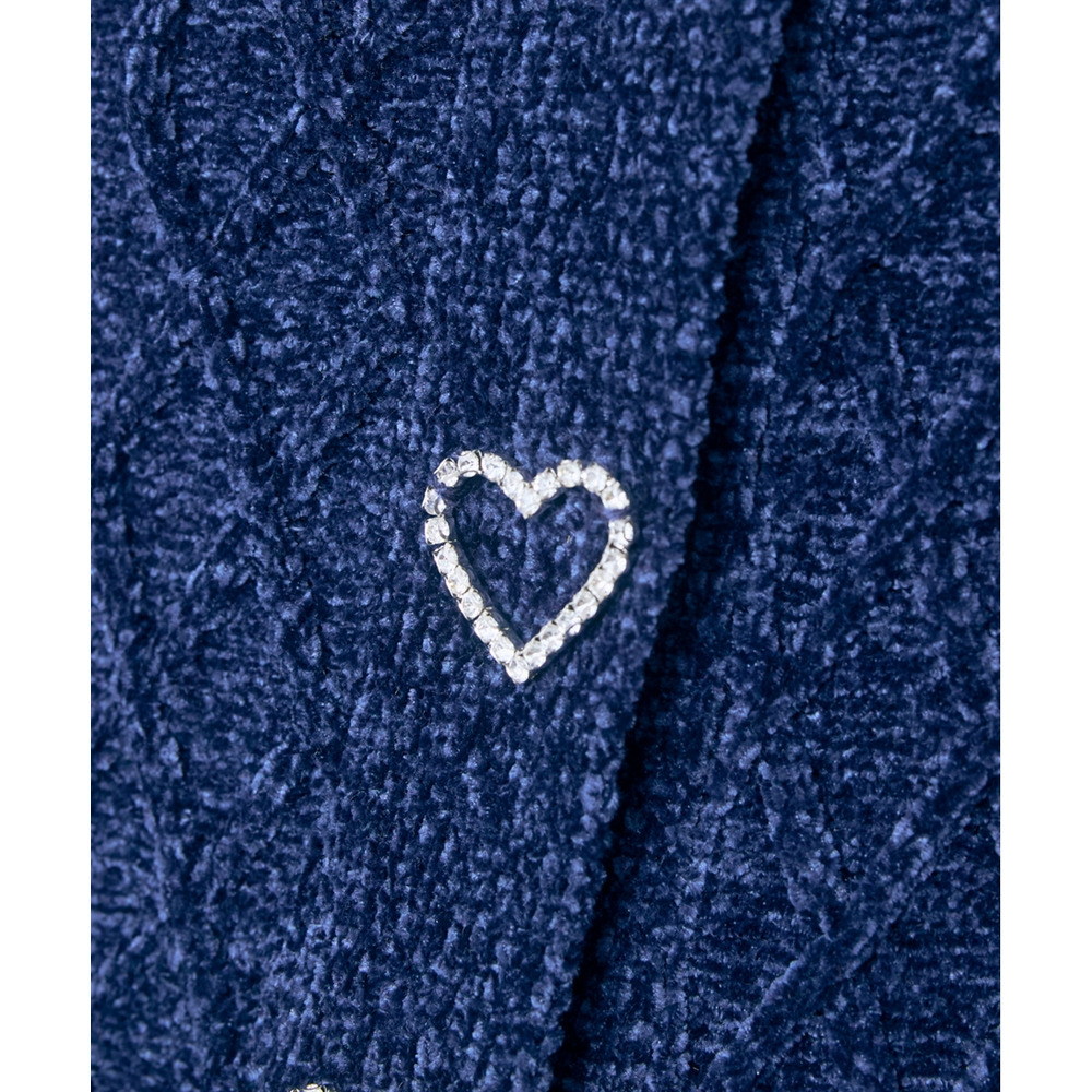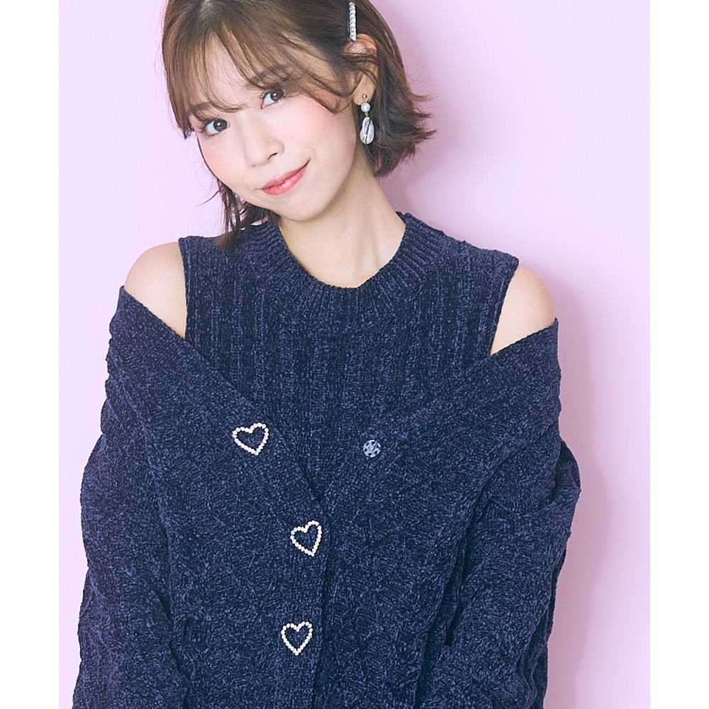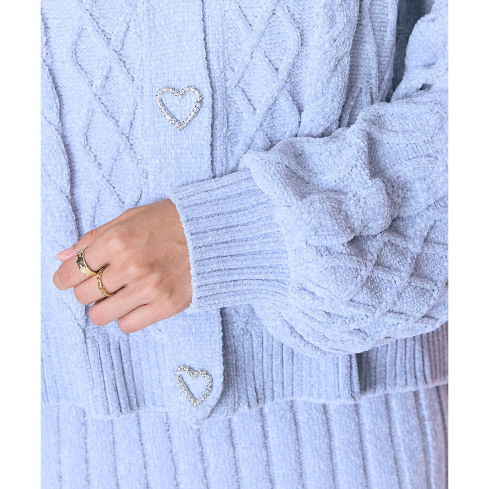 ハートモチーフのスナップボタンとハート柄の編地でさりげない可愛らしさをプラス。