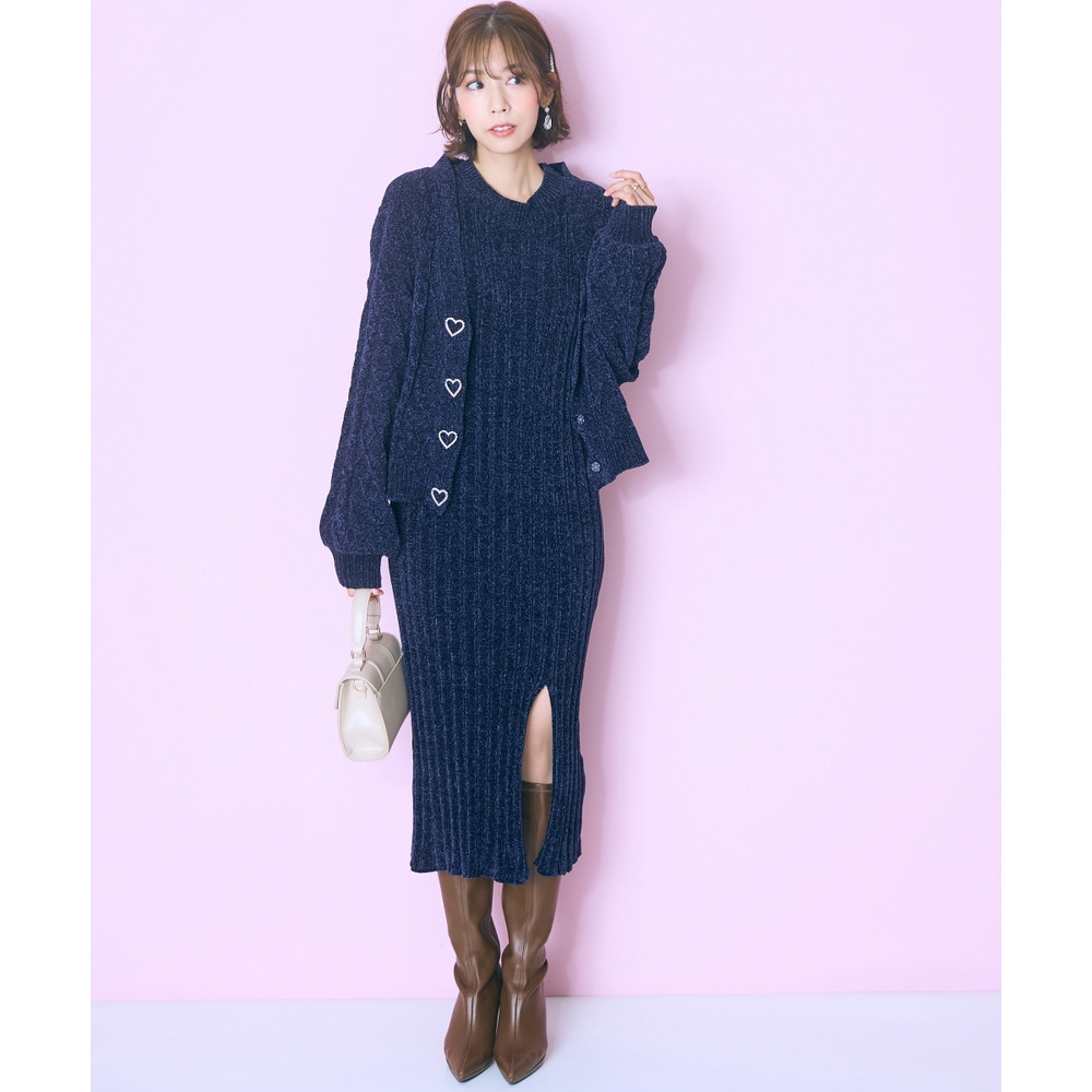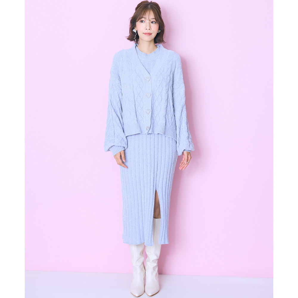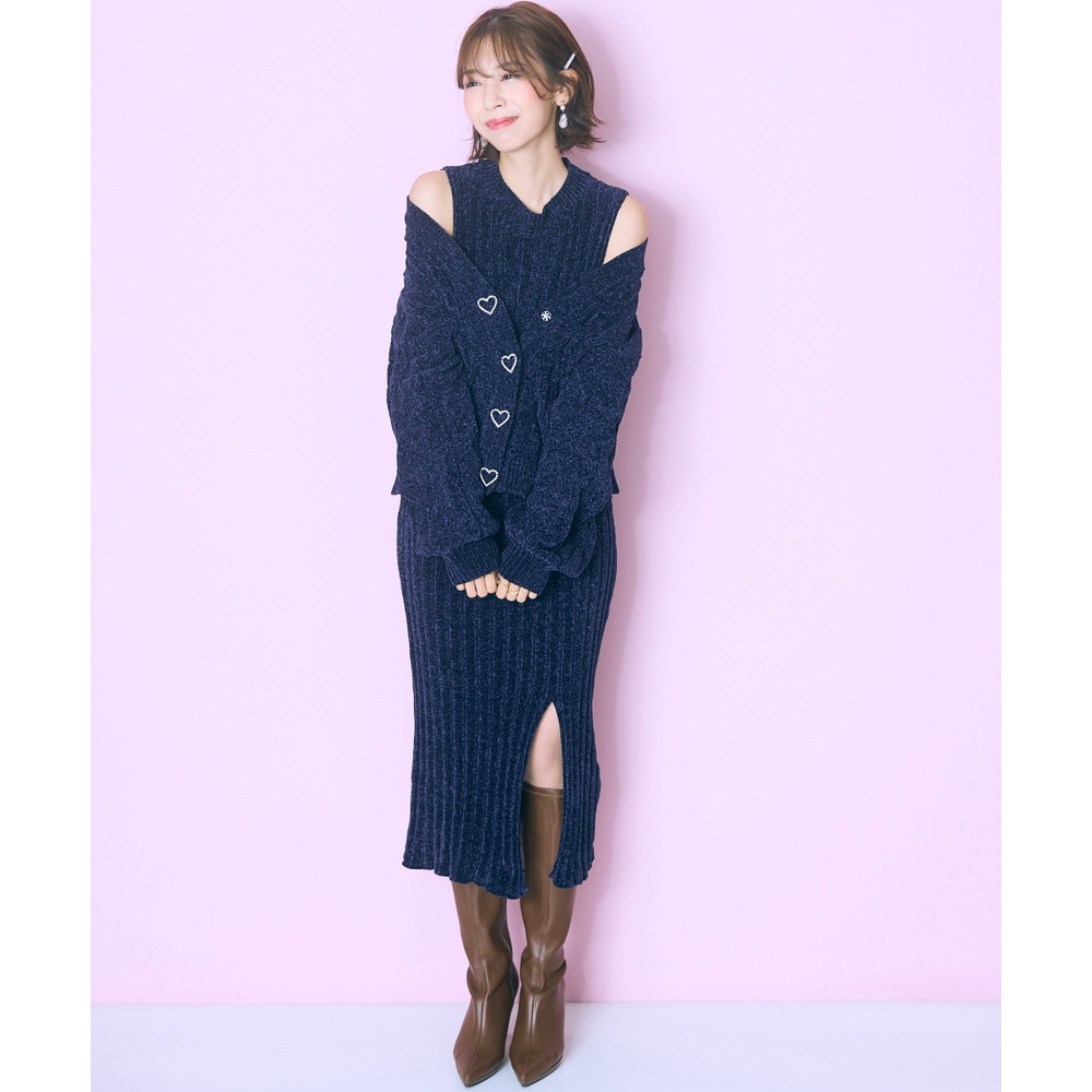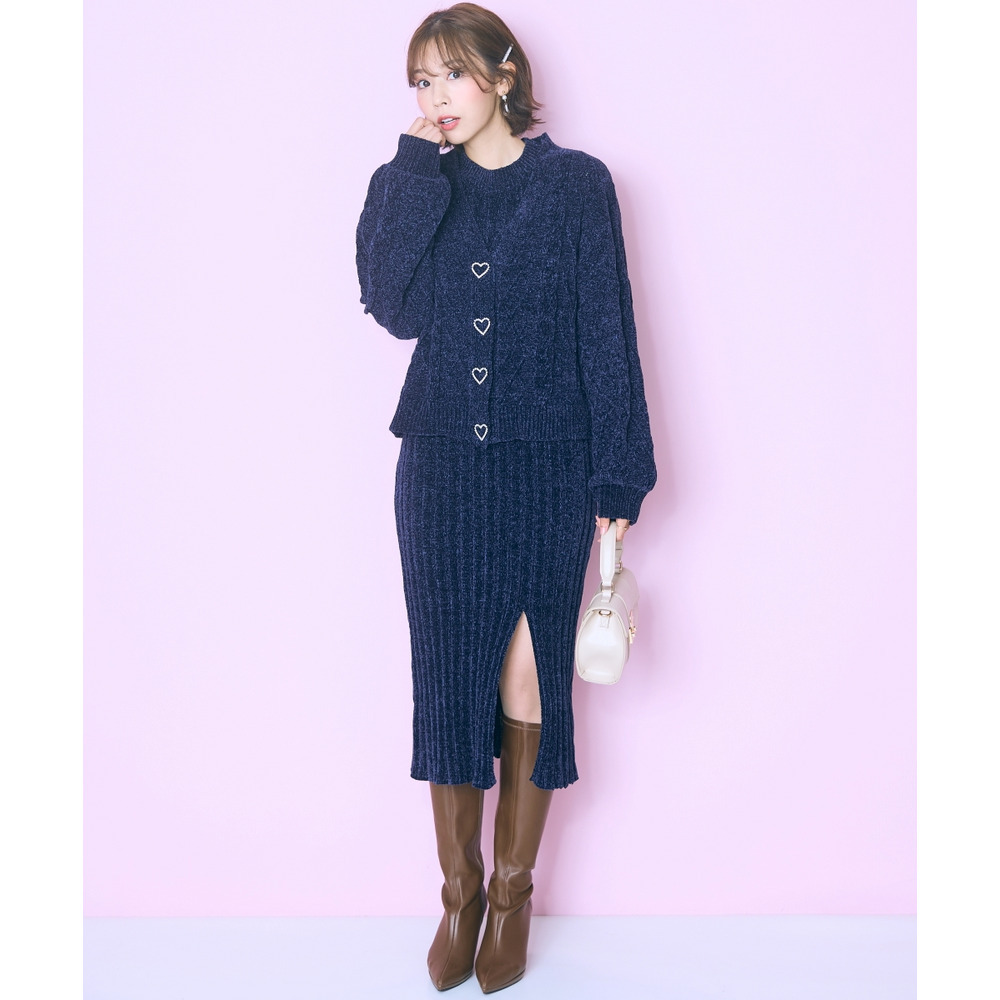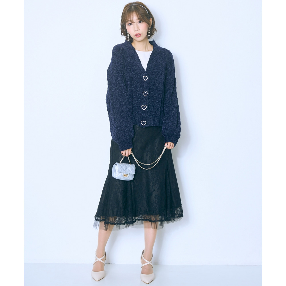 ハートモチーフのスナップボタンとハート柄の編地でさりげない可愛らしさをプラス。