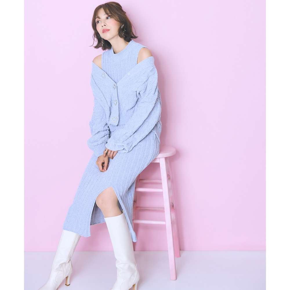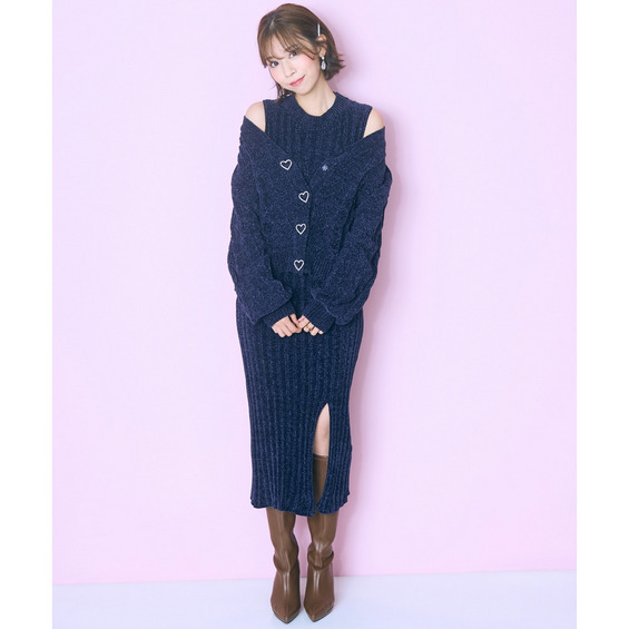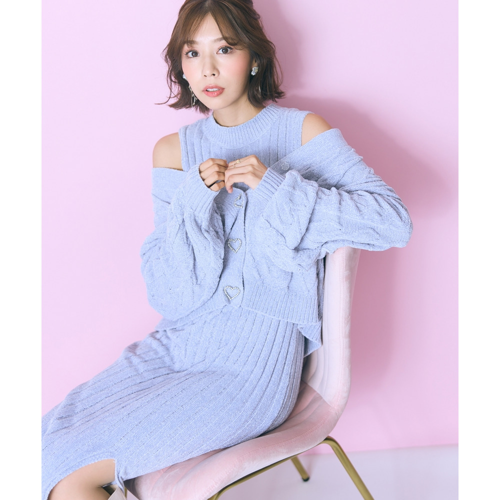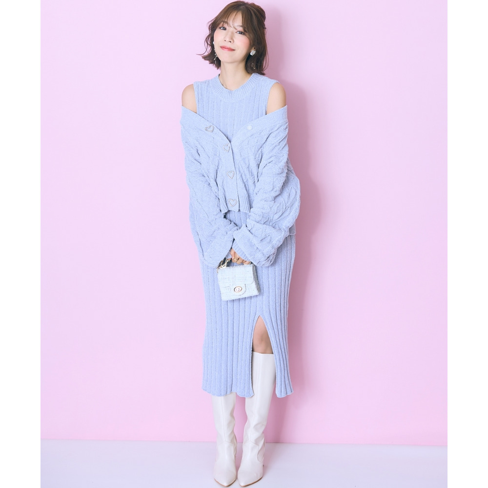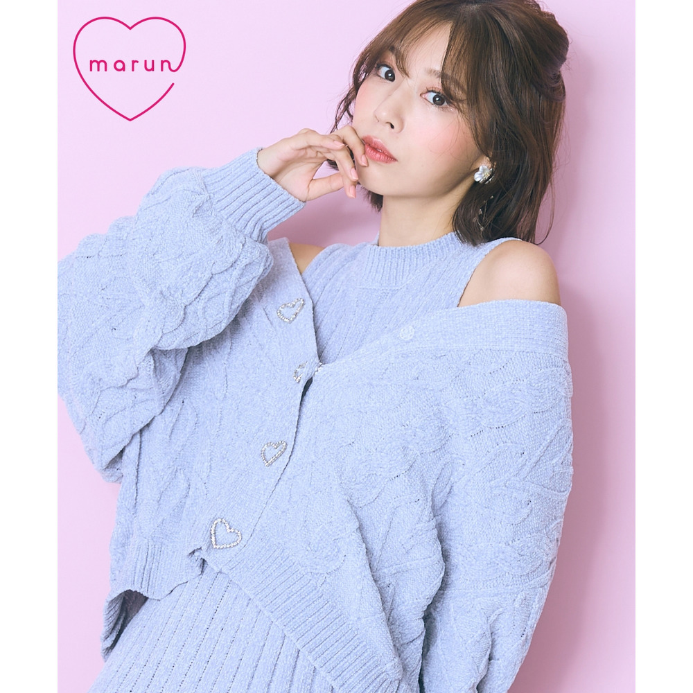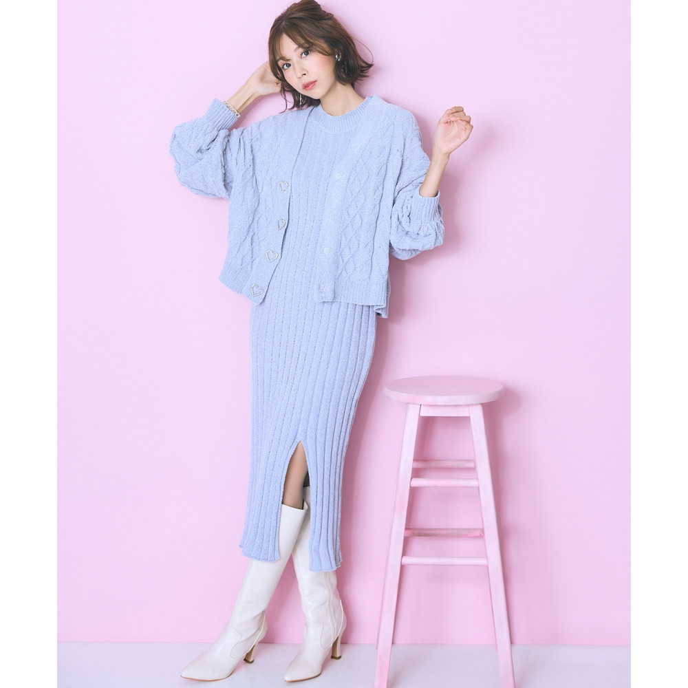 ハートモチーフのスナップボタンとハート柄の編地でさりげない可愛らしさをプラス。