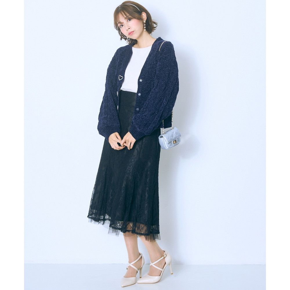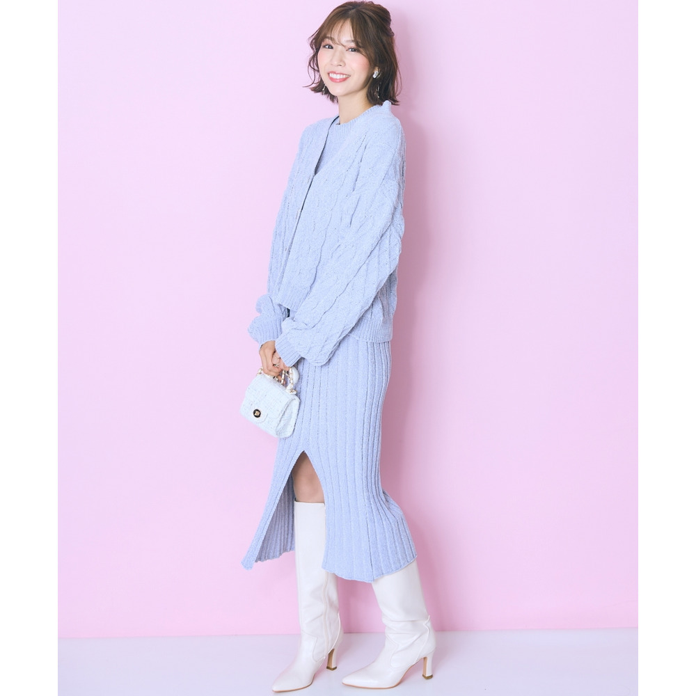 素材 | 品質:ポリエステル95%・ポリウレタン5% 前スナップボタン開き(ハートビジュー飾りボタン) 引っかかると編み目が伸びたりほつれたりする恐れがありますので、ご注意ください。モールニットの特性上、小さい穴が開いたように見える場合がございます。 透け感:なし 伸縮性:あり 生地の厚み:普通 光沢感:なし 季節:秋・冬向き シルエット:普通 |