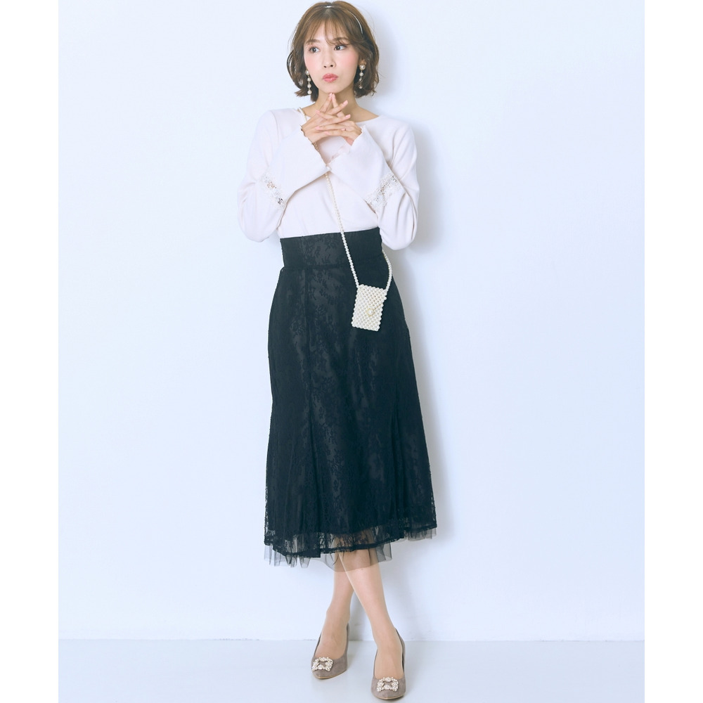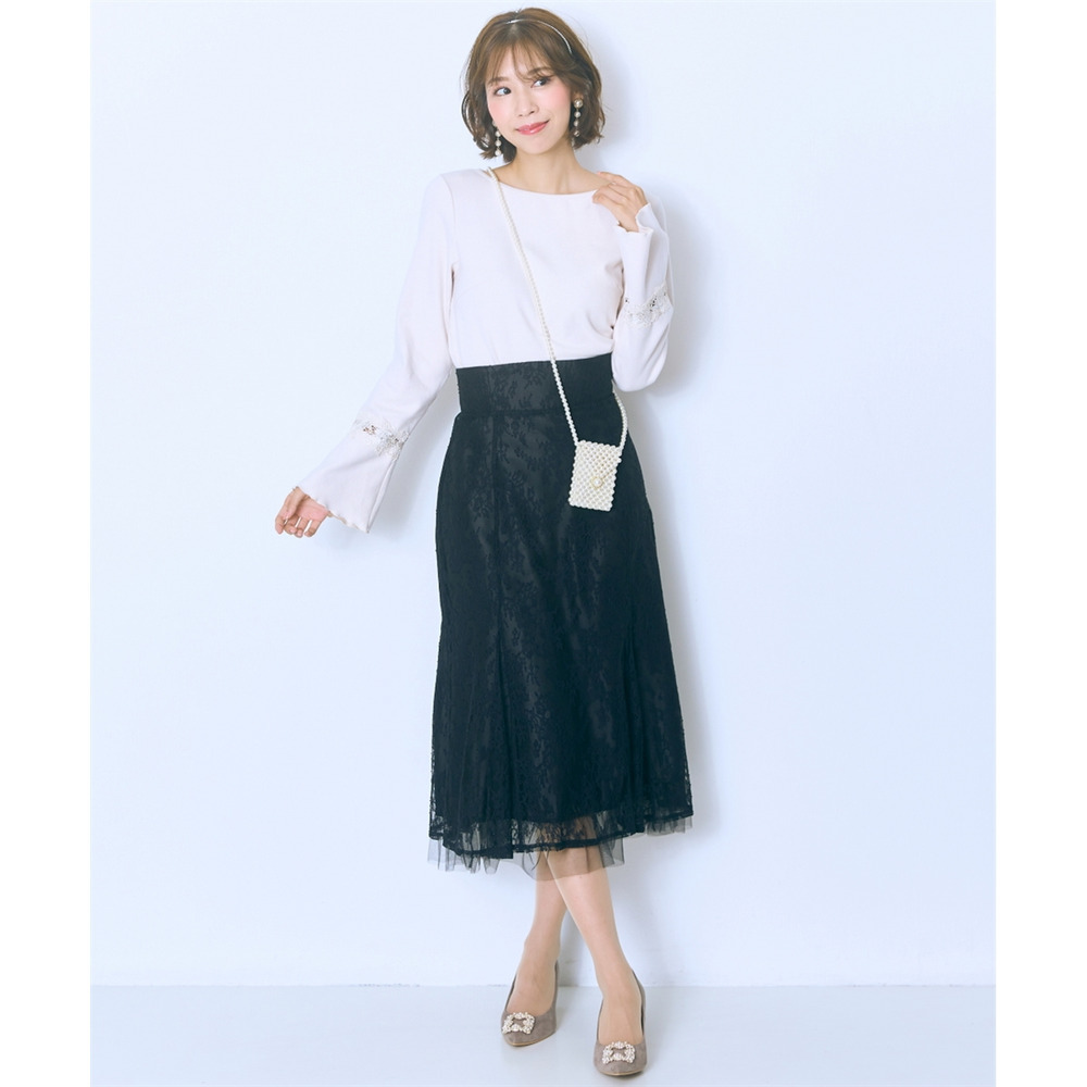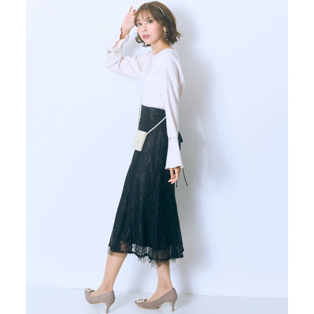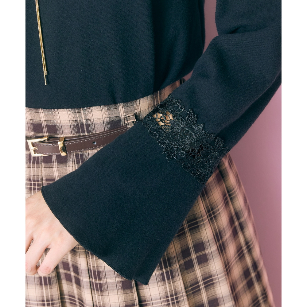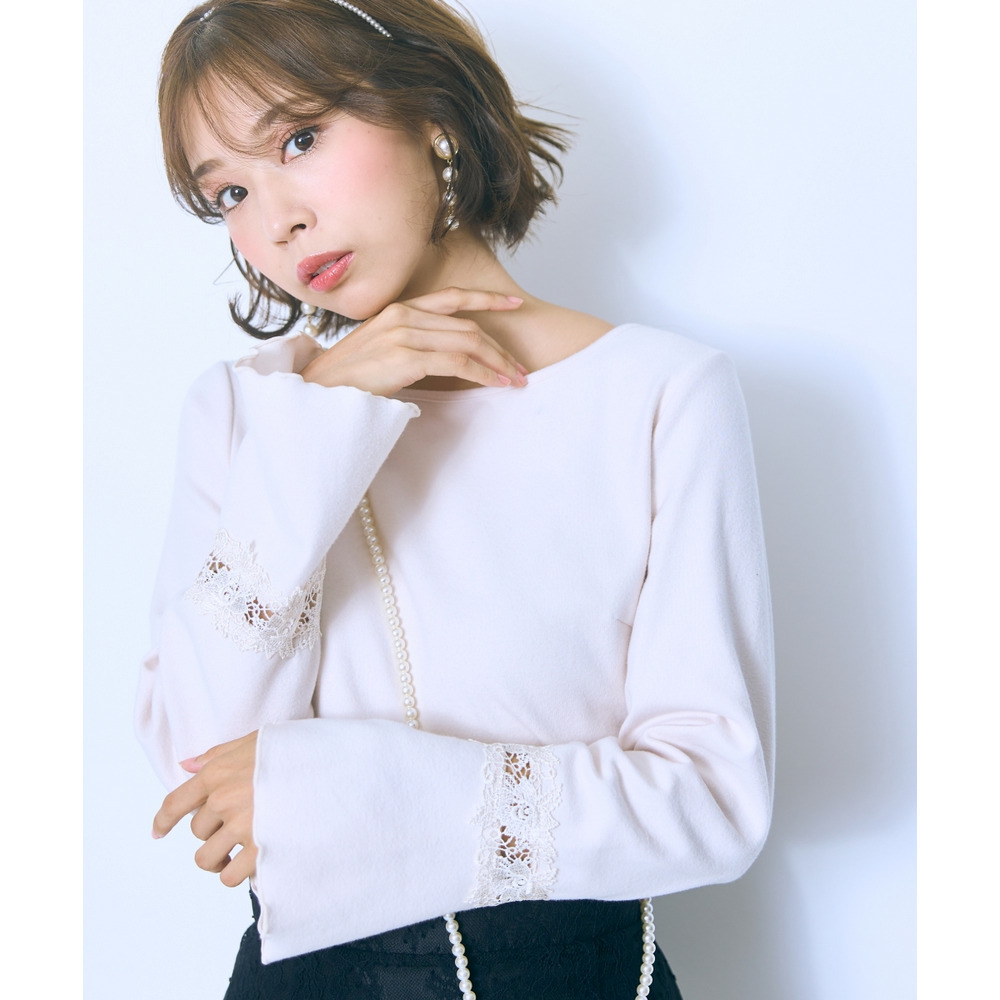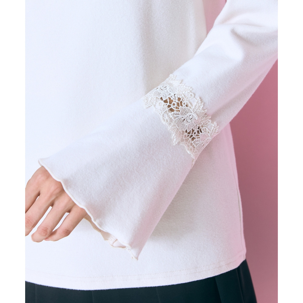 袖口フレアデザインとレースのあしらいが女性らしい華やかさを演出して、手元を美しく見せてくれます。