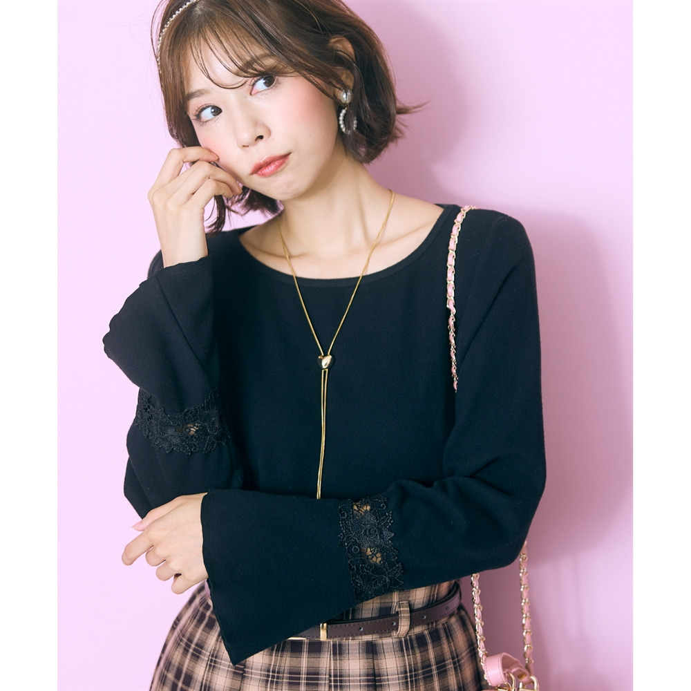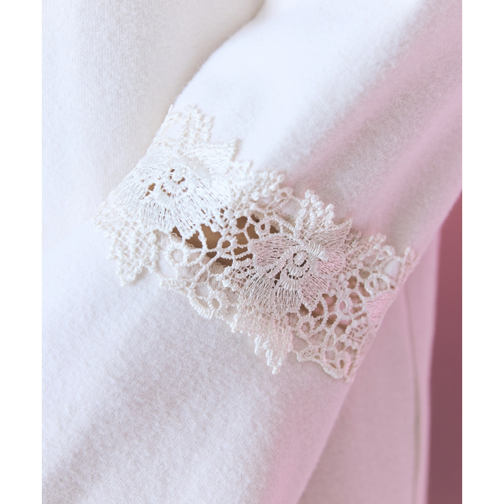 素材 | 品質:[本体]綿97%・ポリウレタン3% [レース部]ポリエステル100% レースの引っかかりにご注意ください。 透け感:あり(袖レース部) 伸縮性:あり 生地の厚み:普通 光沢感:なし 季節:春・秋・冬向き シルエット:普通 |