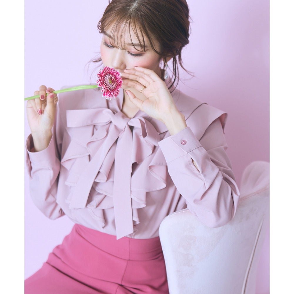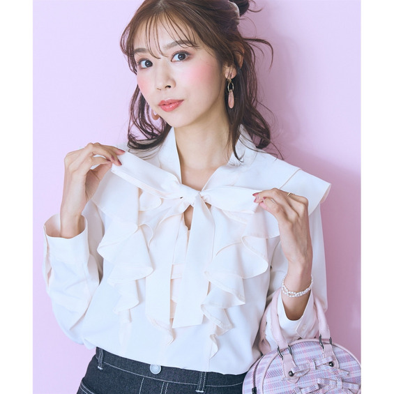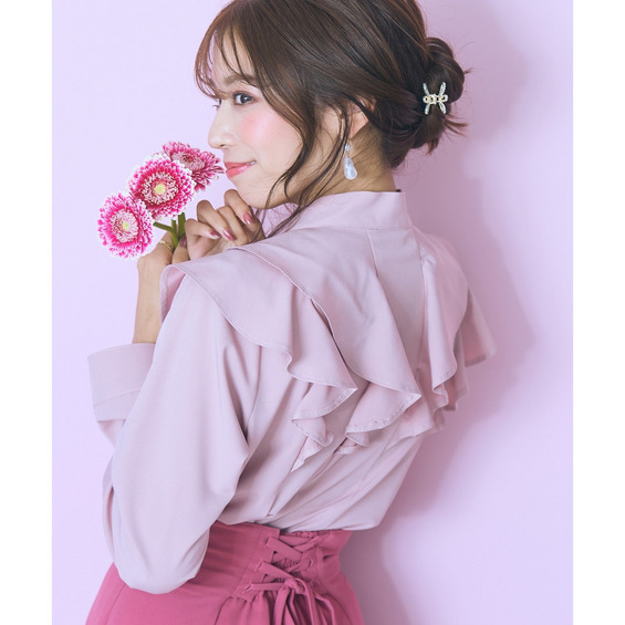 ふんわり揺れるラッフルフリルが顔周りを華やかに彩ります。