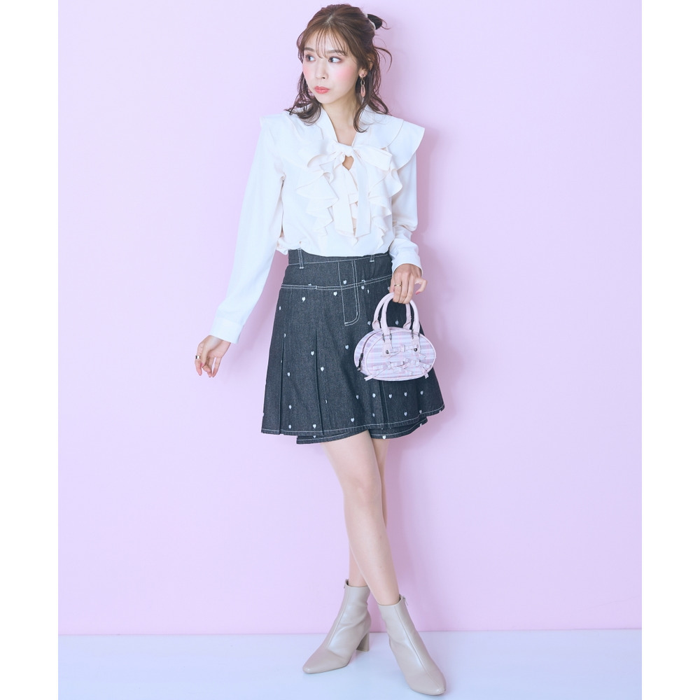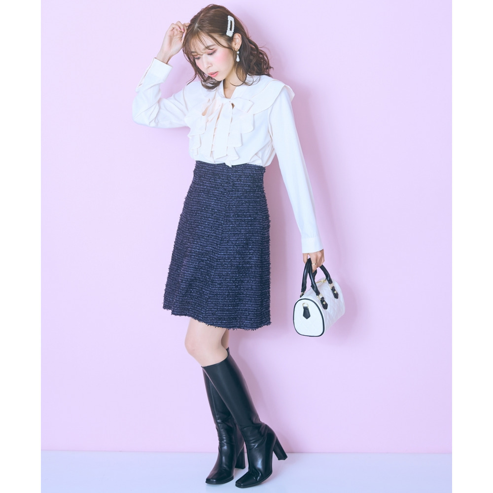 上品なボウタイリボンデザインで大人の女性らしいエレガントな着こなしを叶えます。