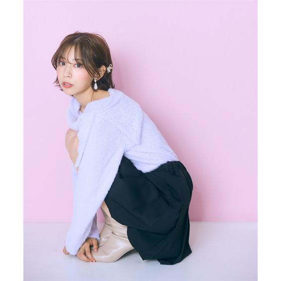 トレンド感のあるラベンダーカラーは着るだけで旬顔に。
