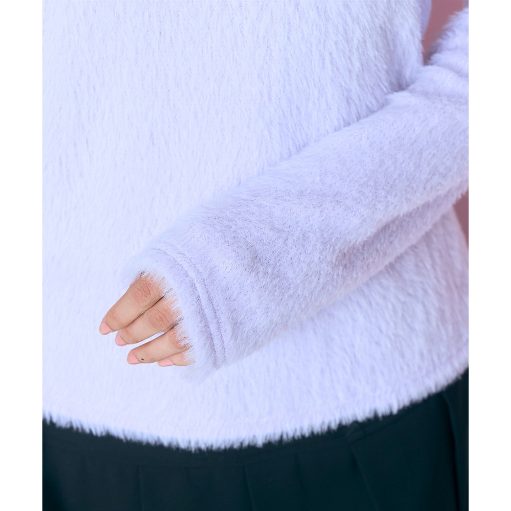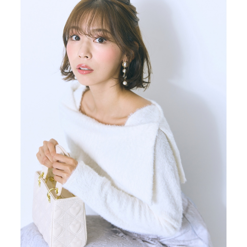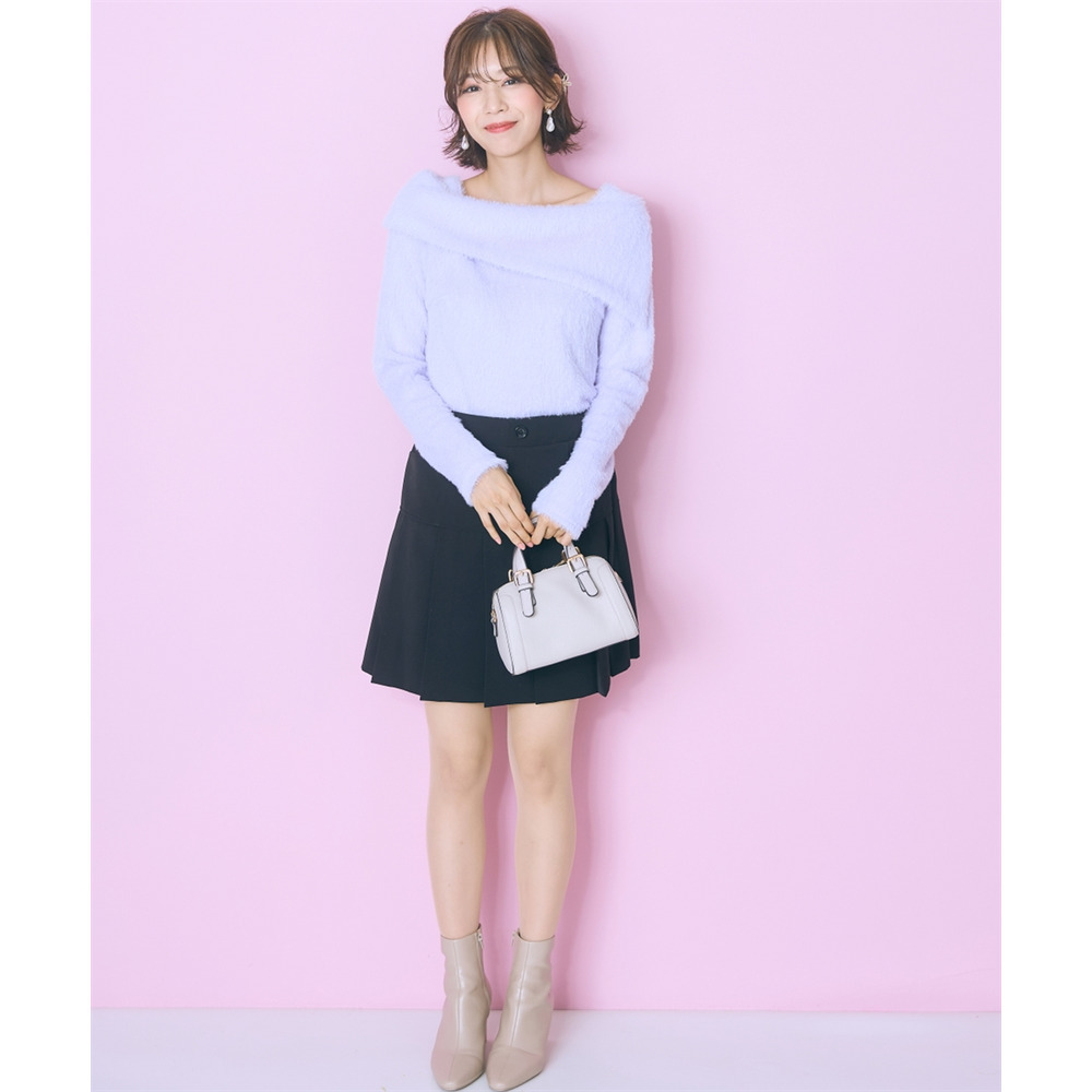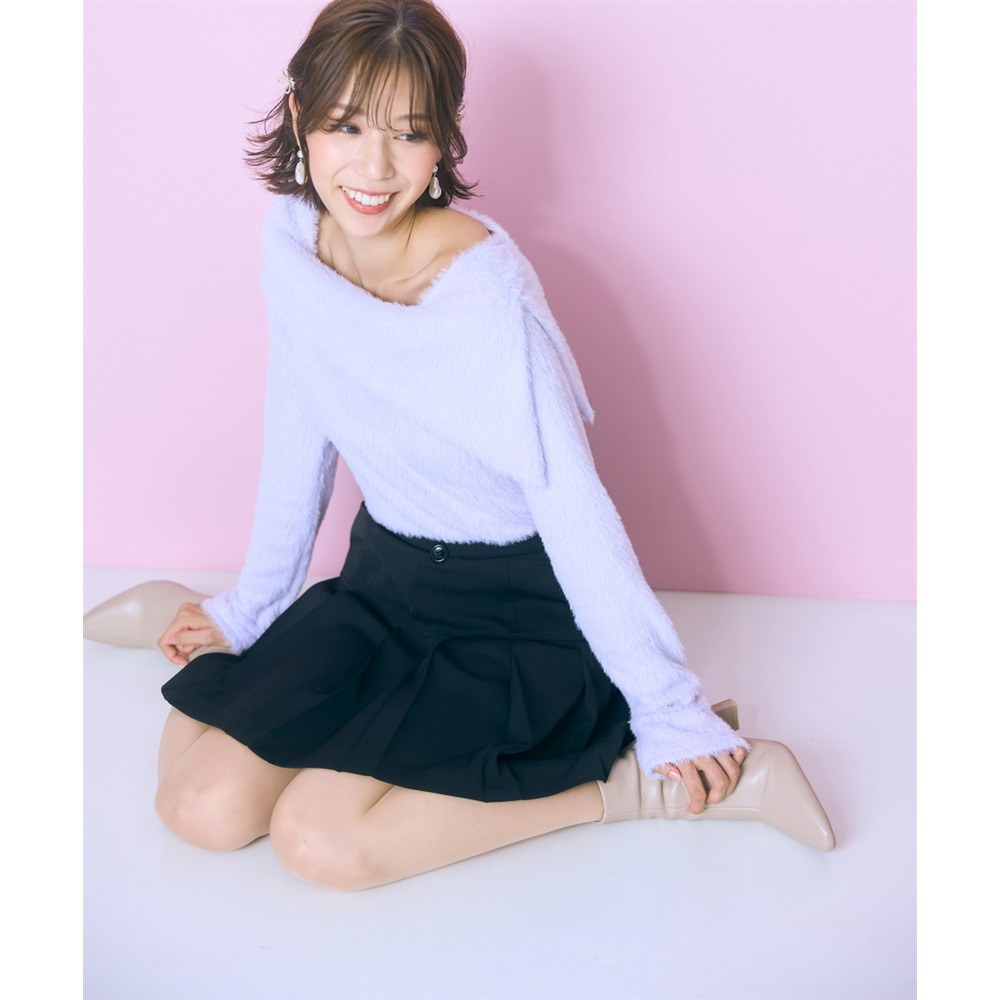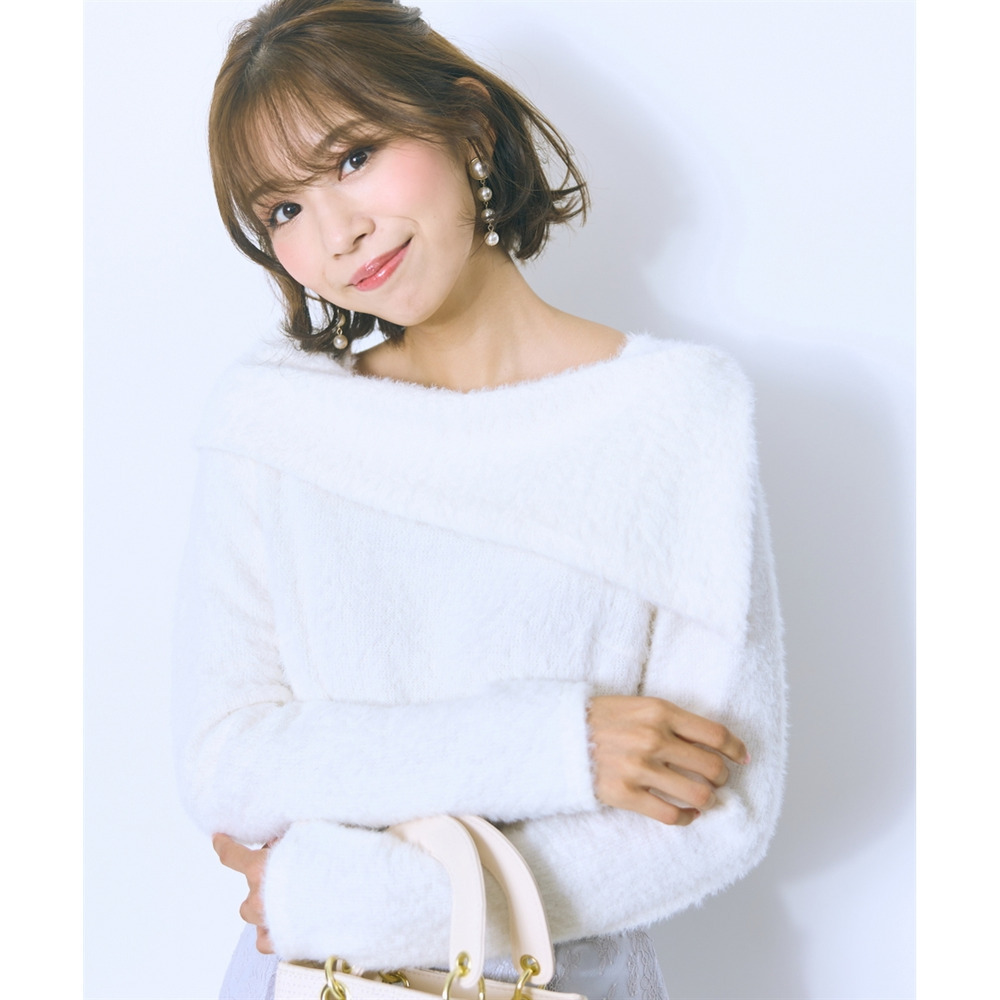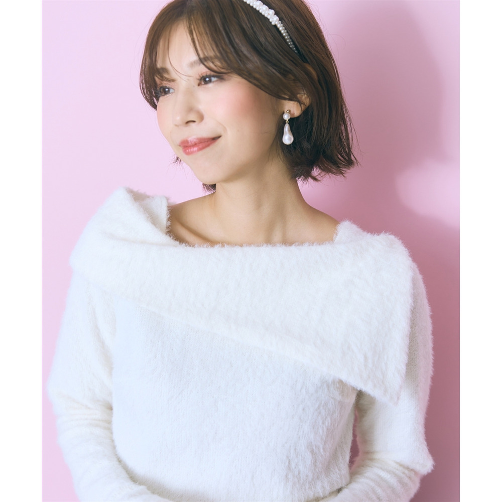 ふわふわシャギー素材が愛らしいオフショルダーニットソー!ニット調カットソー素材なので、着心地が楽で羽織りのインに着るのもおすすめです。