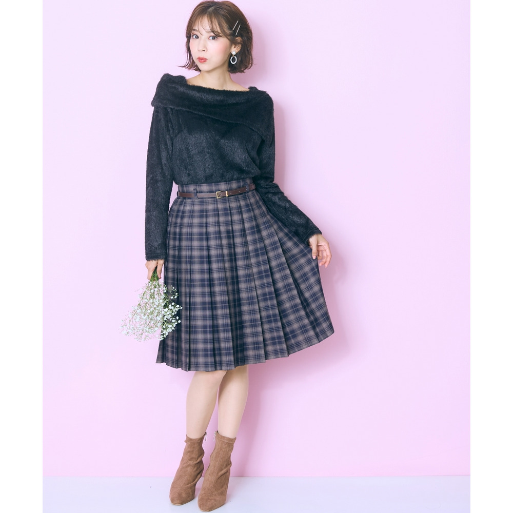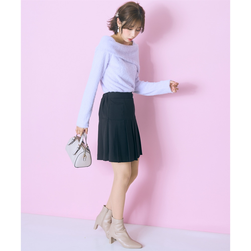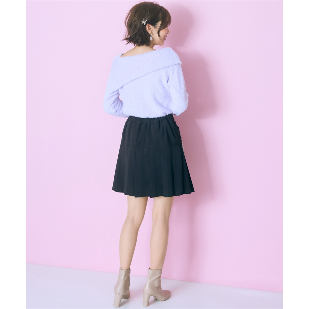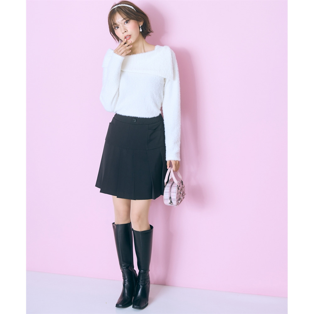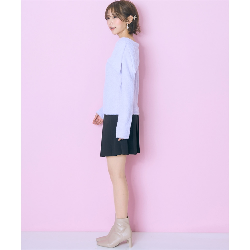 ふわふわシャギー素材が愛らしいオフショルダーニットソー!ニット調カットソー素材なので、着心地が楽で羽織りのインに着るのもおすすめです。