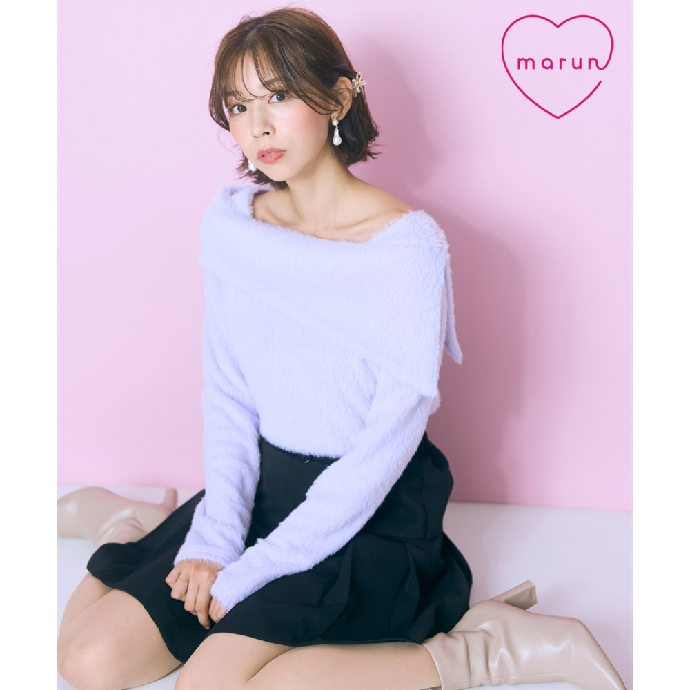 • シャギー調オフショルダーニットソー 大きいサイズ marun2