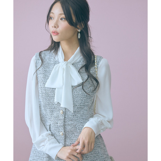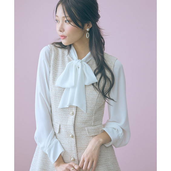 ワンピース風に着ていただくととびきりcuteな印象に?フォーマルシーンからカジュアルまでマルチに活躍する一枚です。