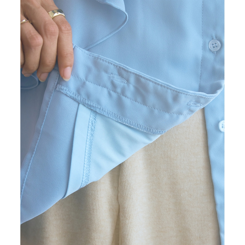 | 素材 | 品質:ポリエステル100% 前・袖口ボタン開き 透け感:あり(袖部) 伸縮性:なし 生地の厚み:普通 光沢感:なし 裏地:あり(身頃部) 季節:春・秋・冬向き シルエット:普通 |