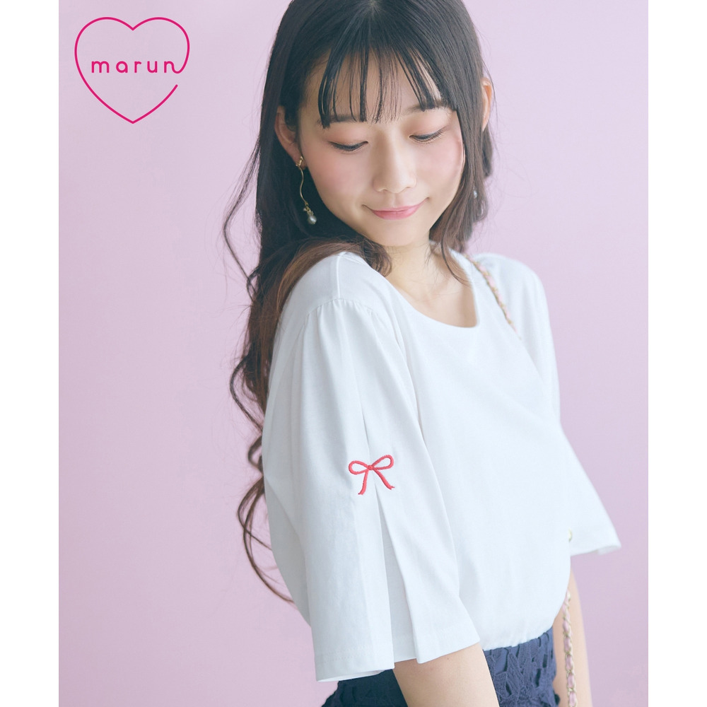 • 袖タックリボン刺しゅうTシャツ 大きいサイズ  marun5