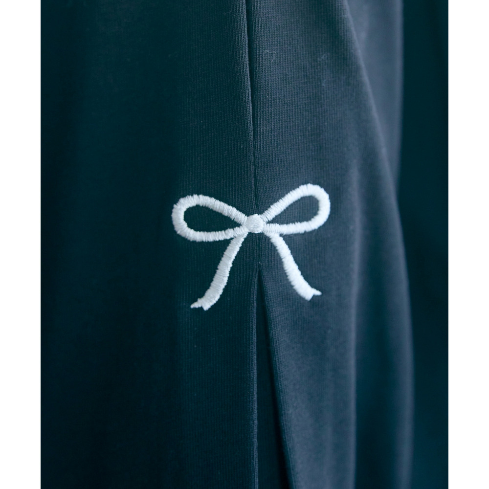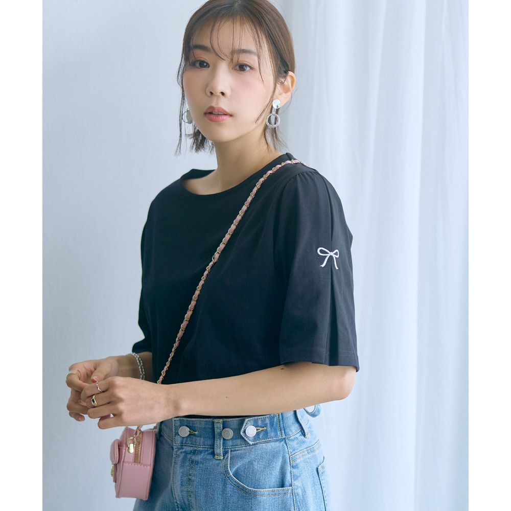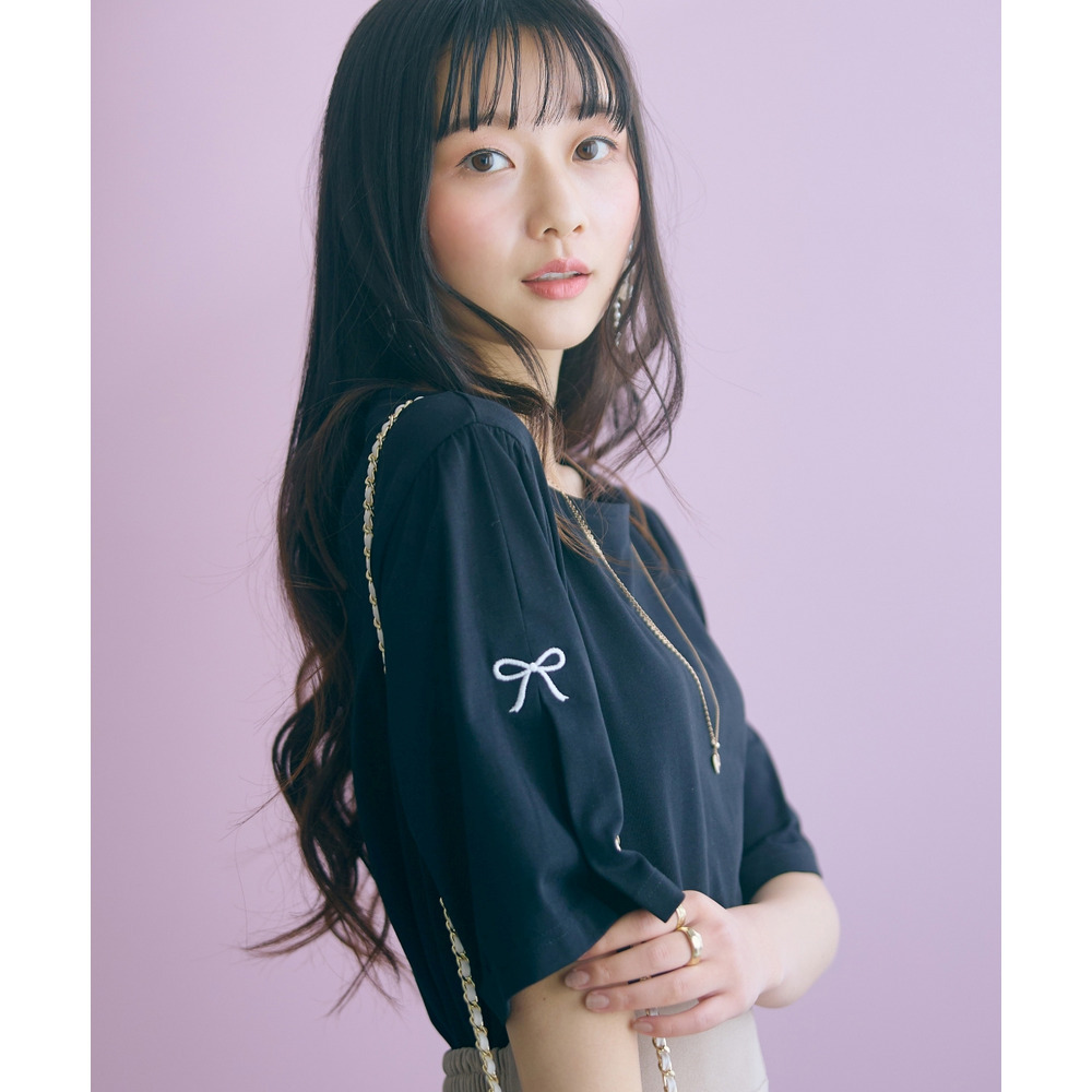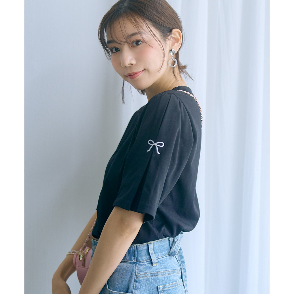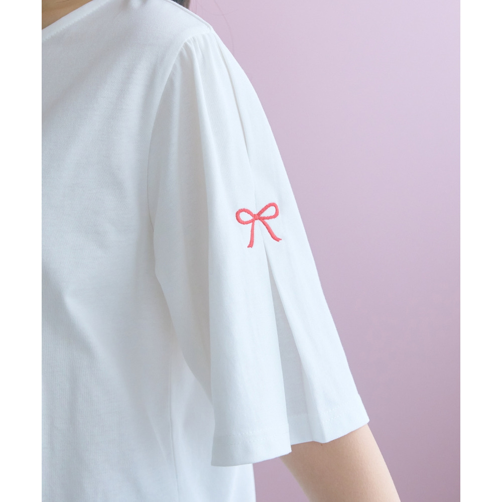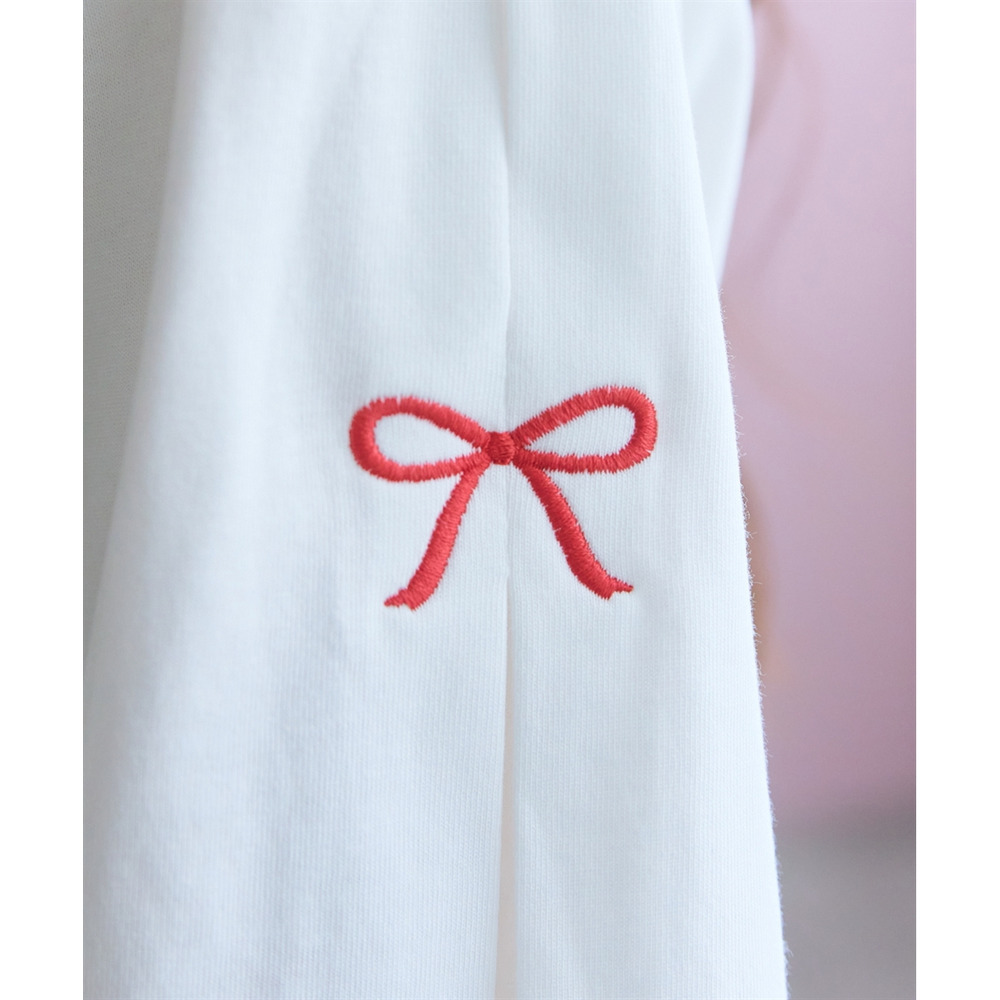 袖部分に愛らしいリボンのワンポイント刺しゅうを配置。
