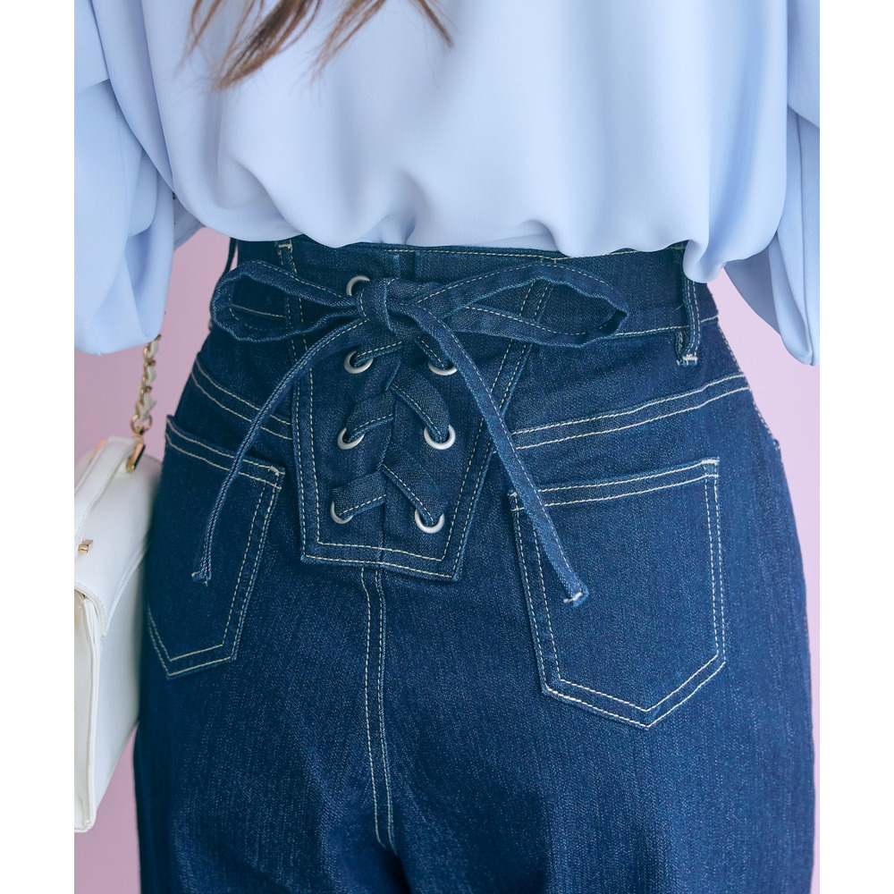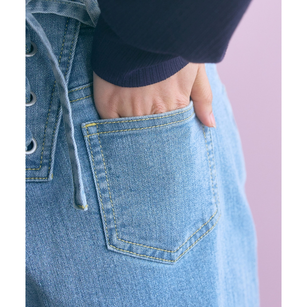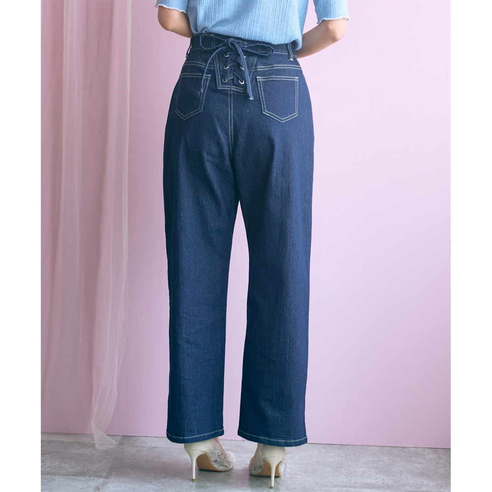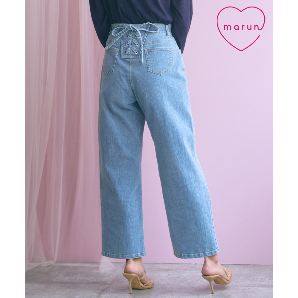 バック編み上げデニムパンツ 大きいサイズ marun