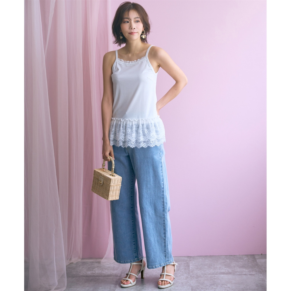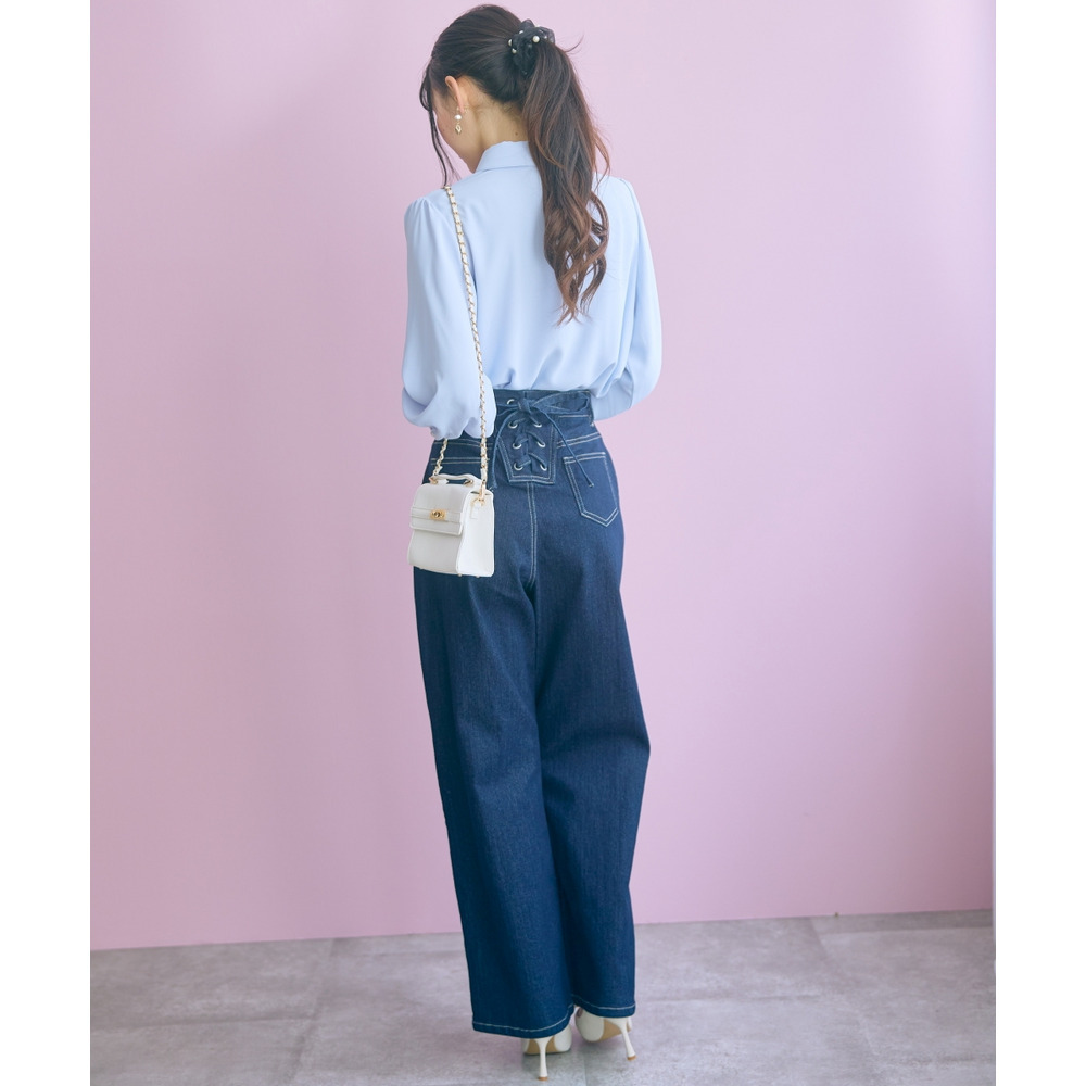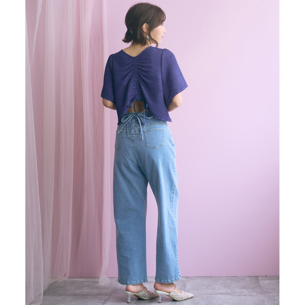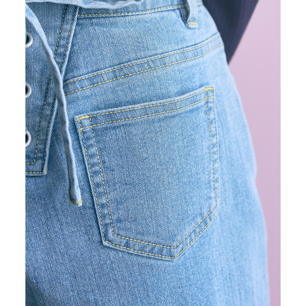 バック編み上げデニムパンツ 大きいサイズ marun