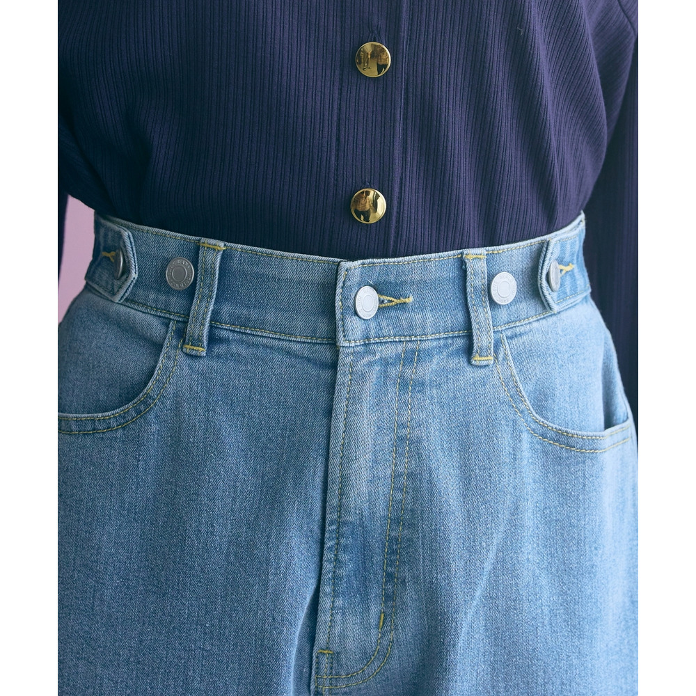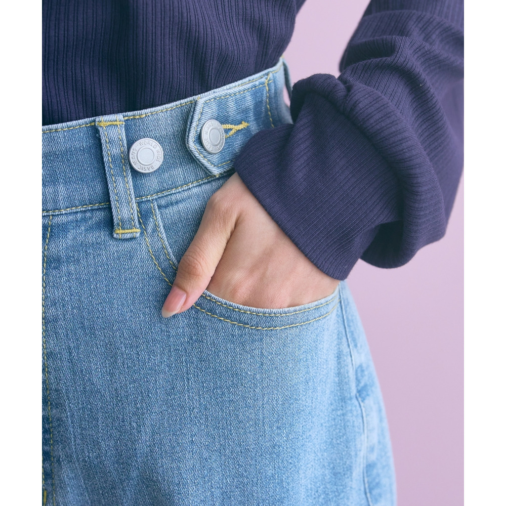 すっきりシルエットなのに着心地も◎ウエスト部は裏側がゴム仕様のため約15cm程度伸長します。