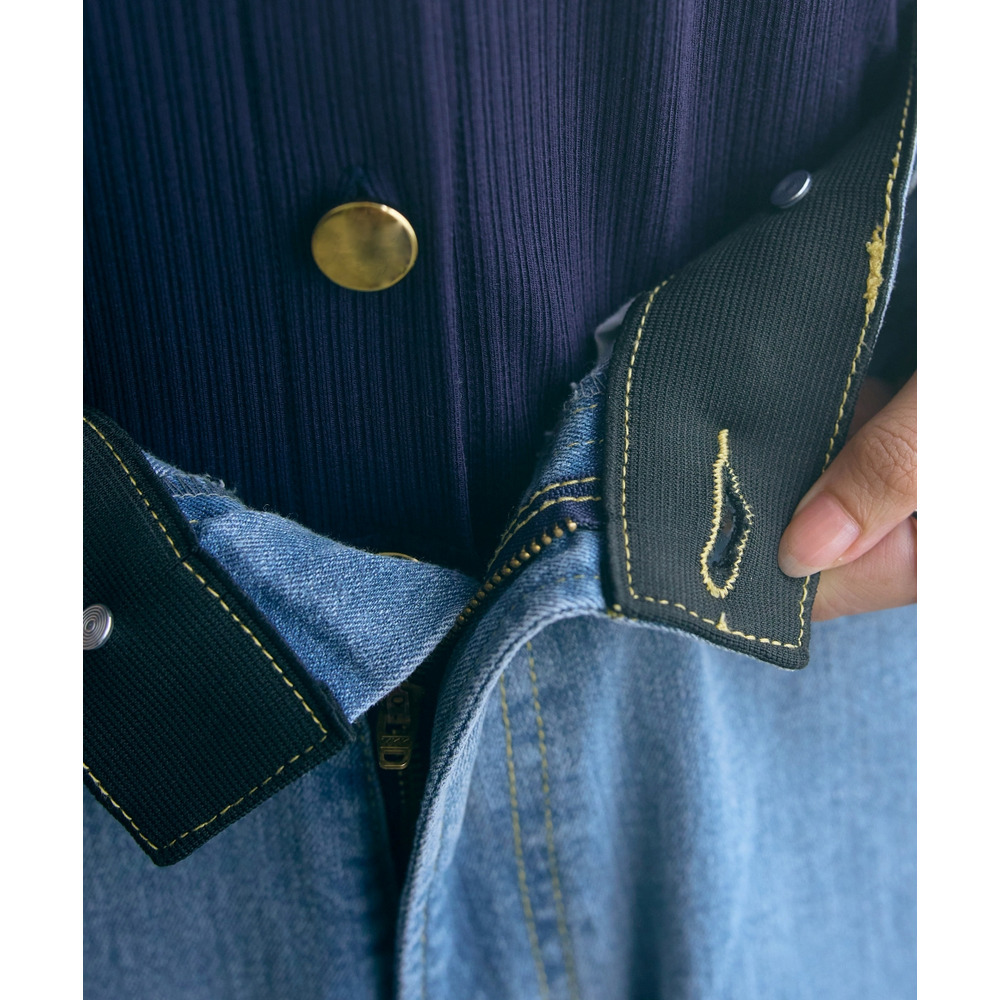 ストレッチ性のあるデニム生地。