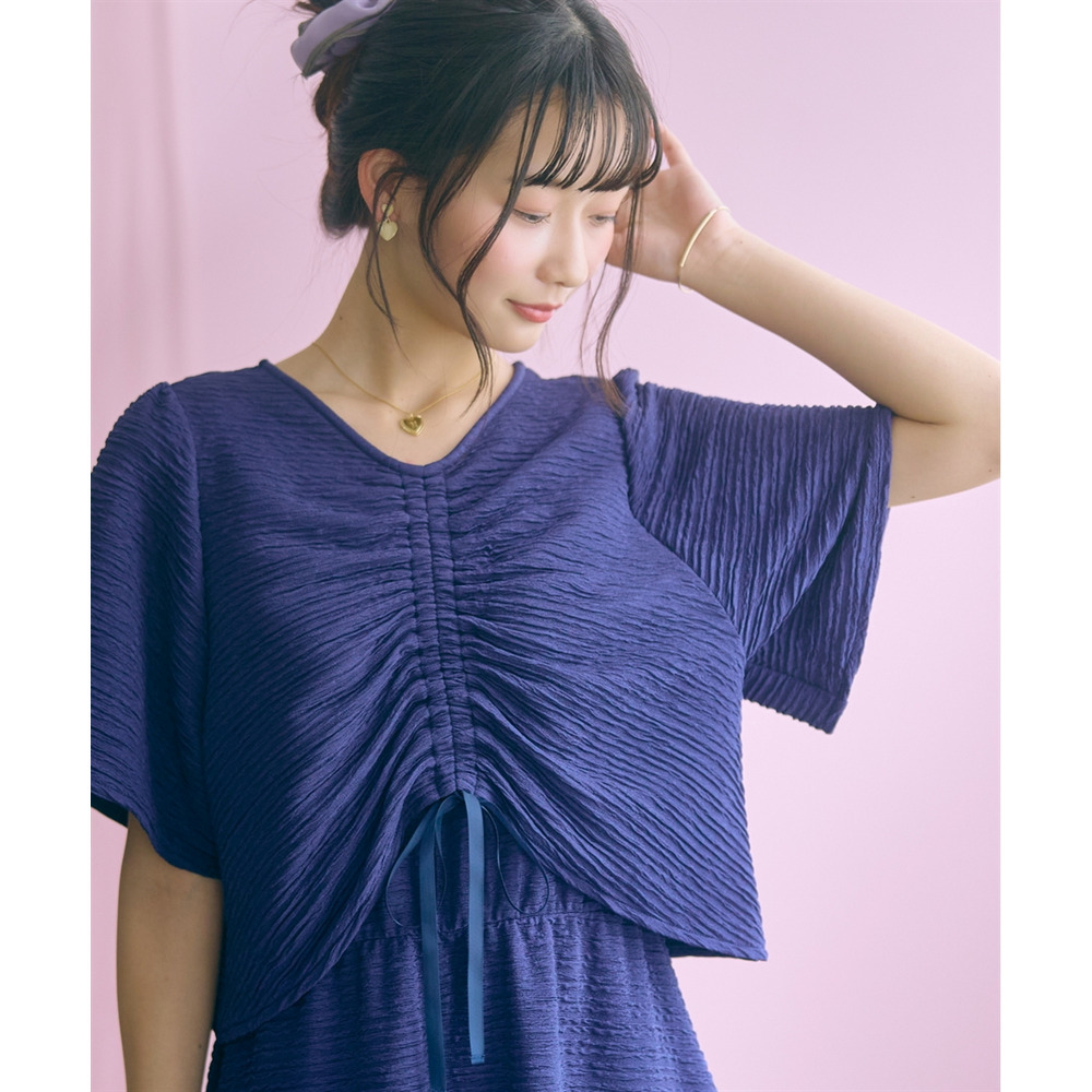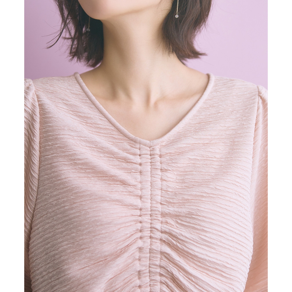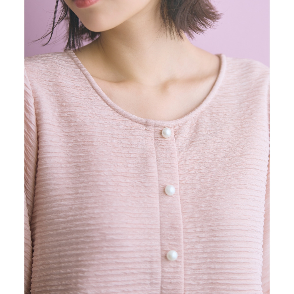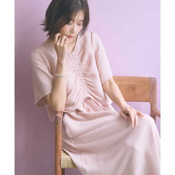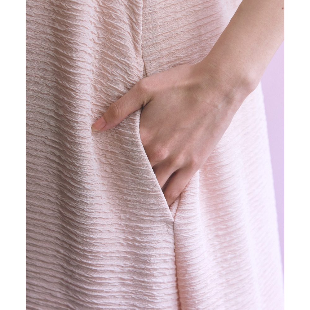 表面感のある素材で身体のラインを拾いにくく可愛く楽に着られる優秀な一枚です。