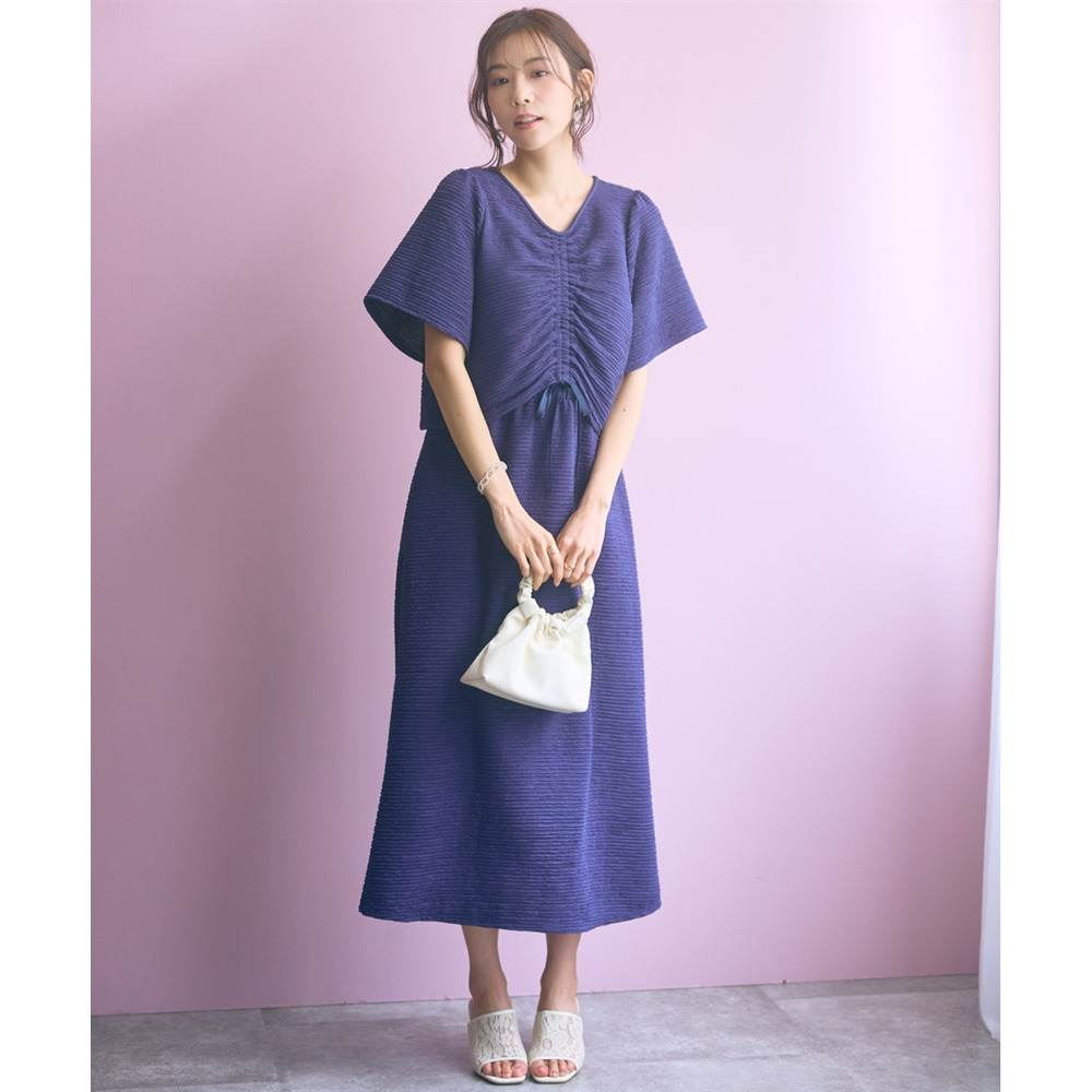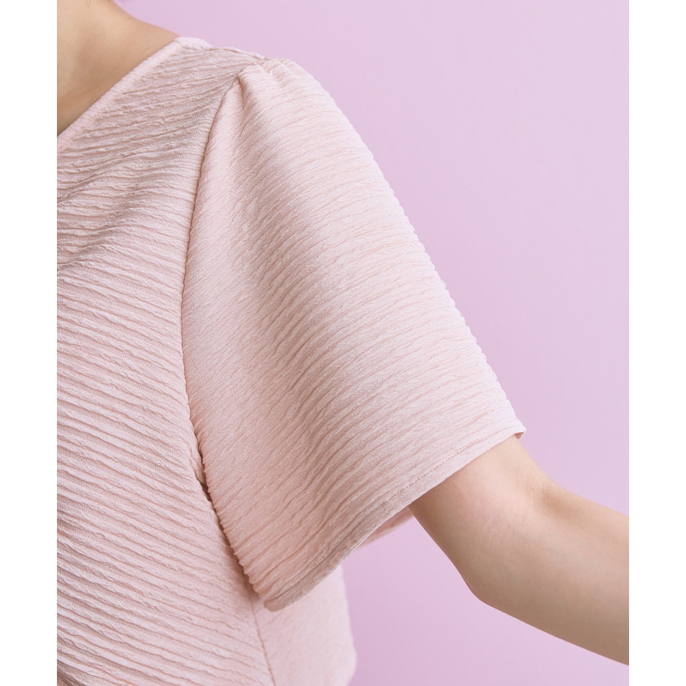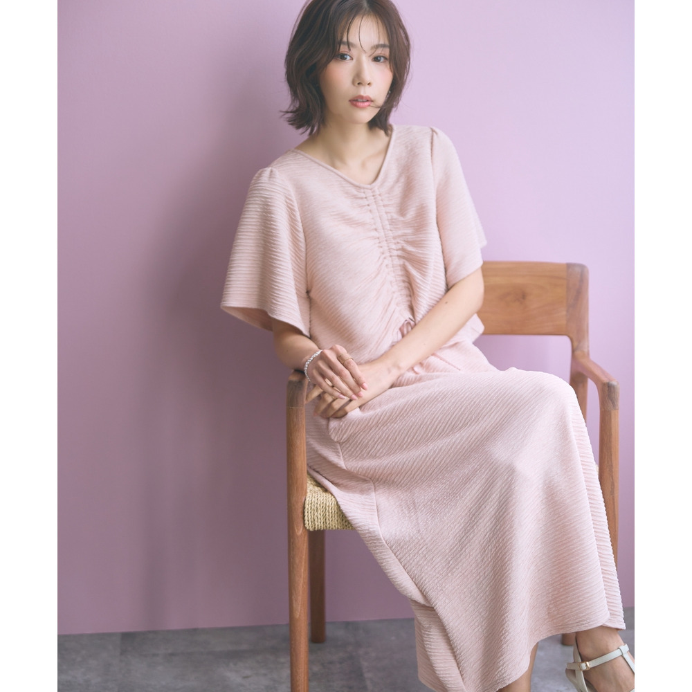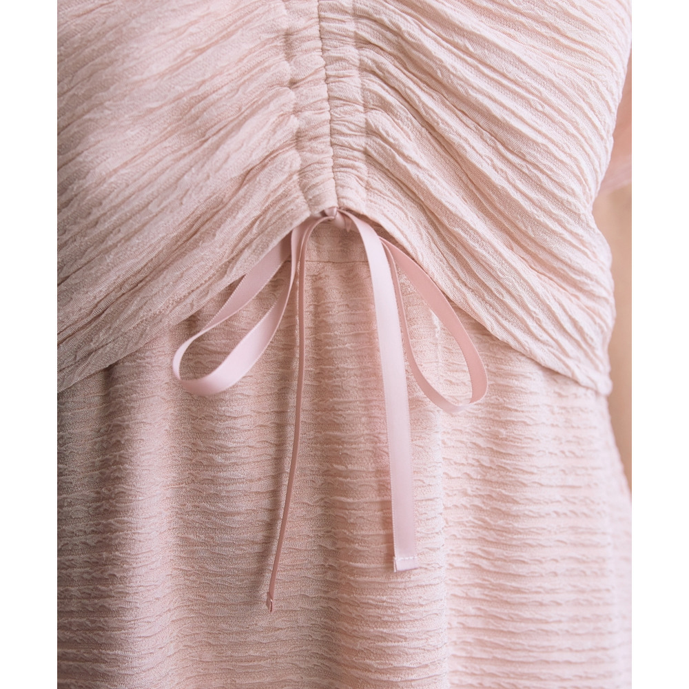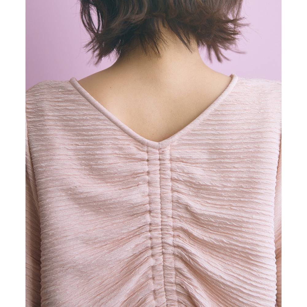 表面感のある素材で身体のラインを拾いにくく可愛く楽に着られる優秀な一枚です。