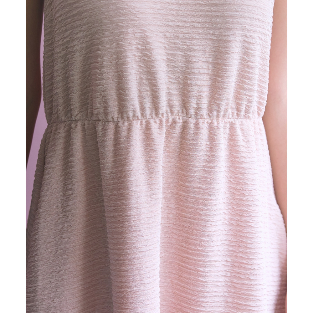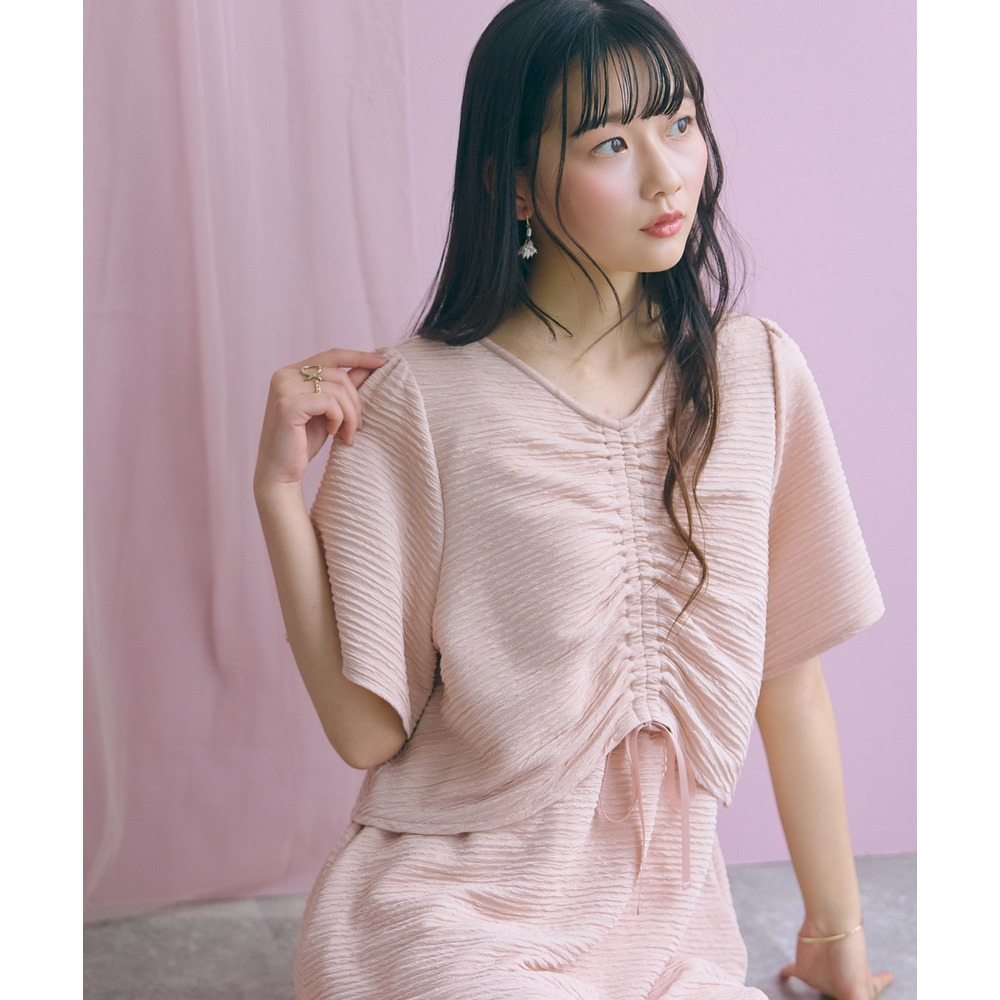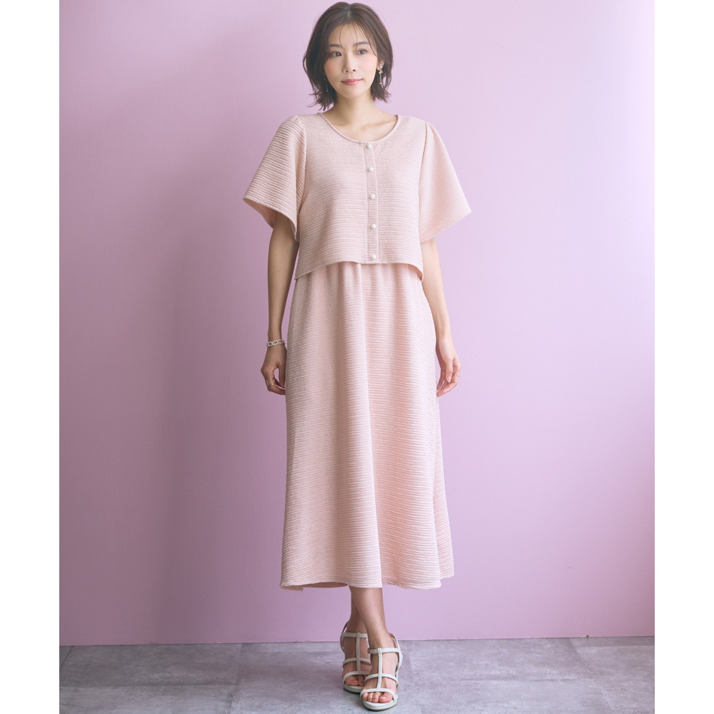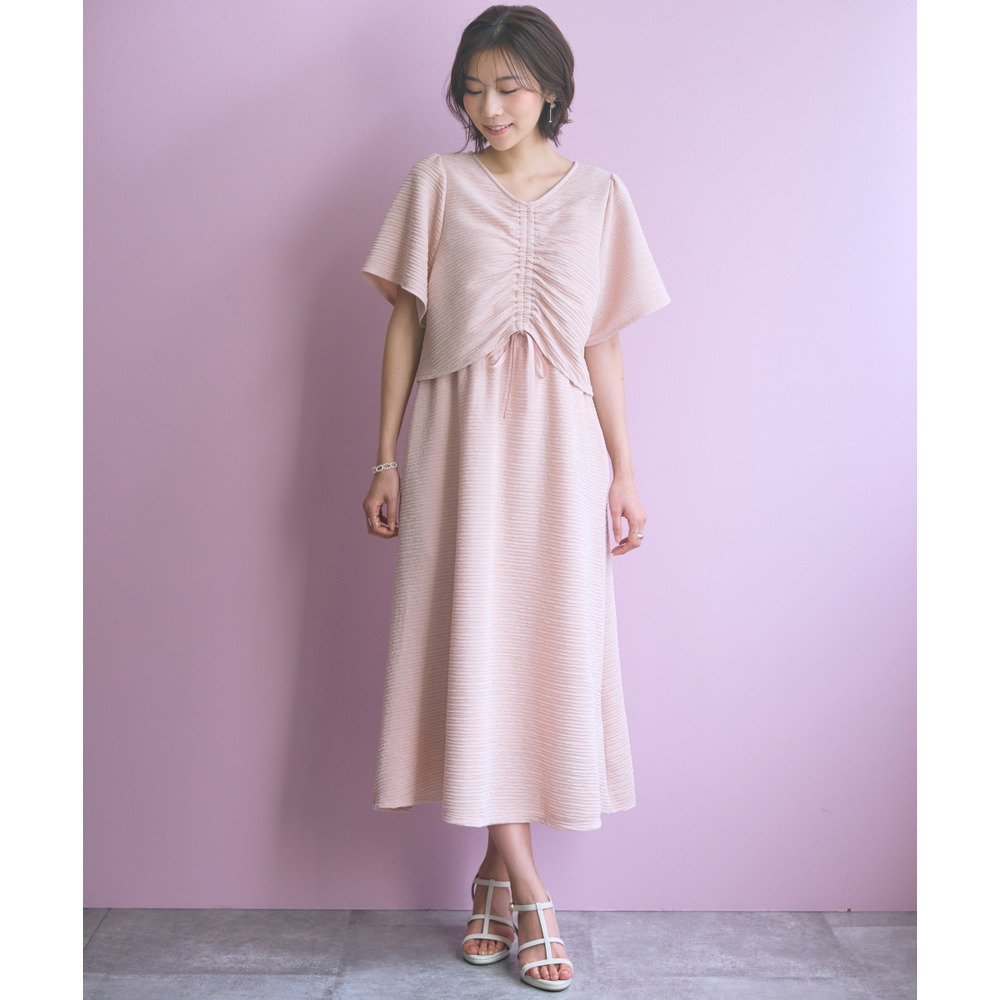 表面感のある素材で身体のラインを拾いにくく可愛く楽に着られる優秀な一枚です。