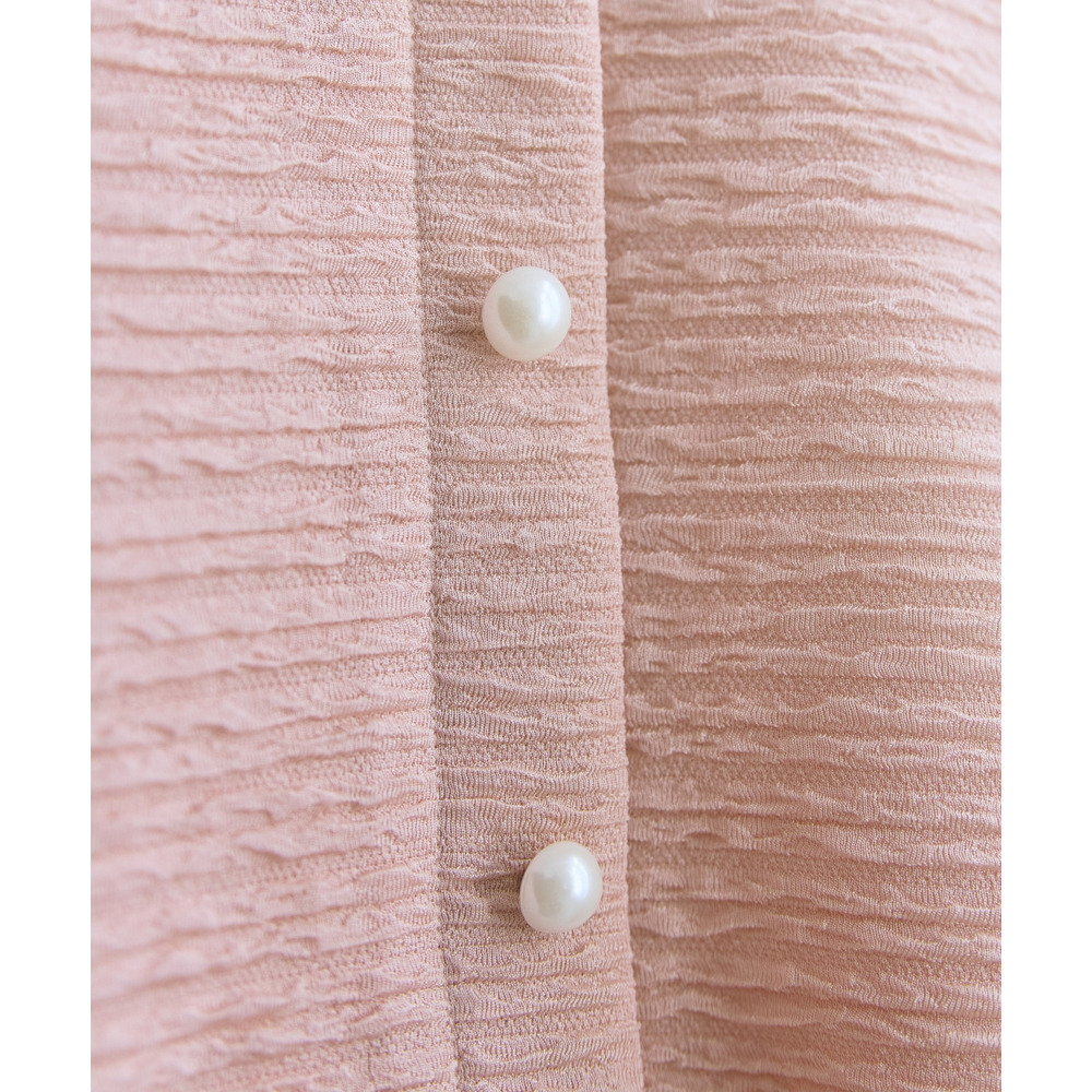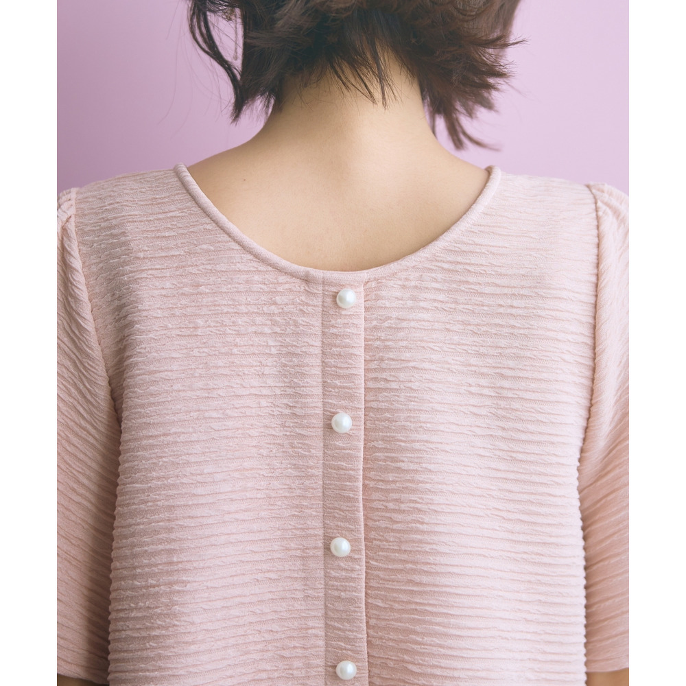 トップスは前後どちらでもOKな2way仕様!飾りパールボタンが上品さをプラスします。