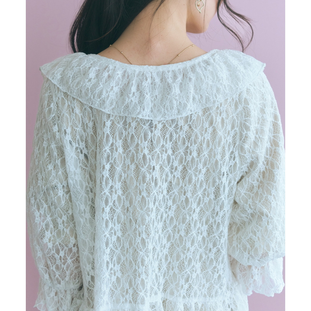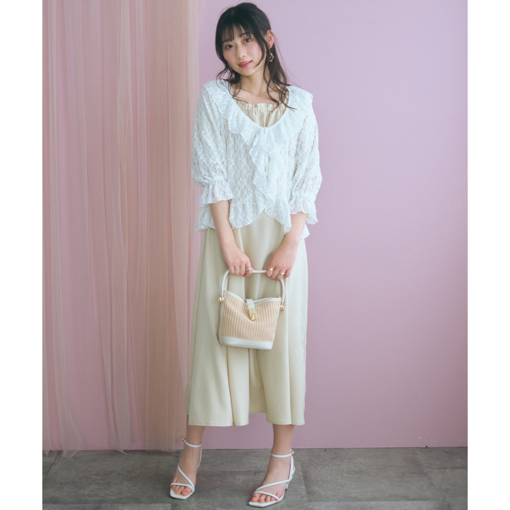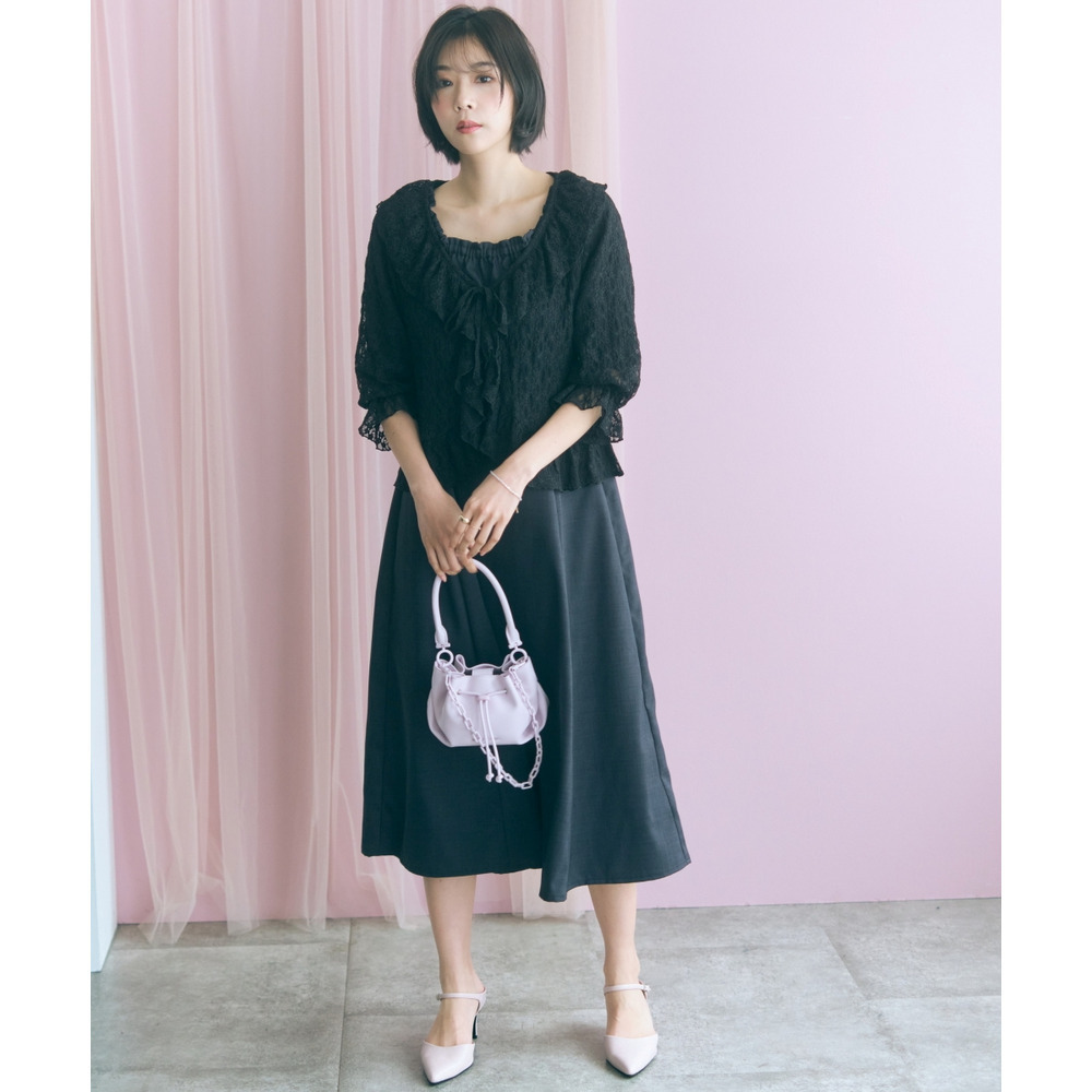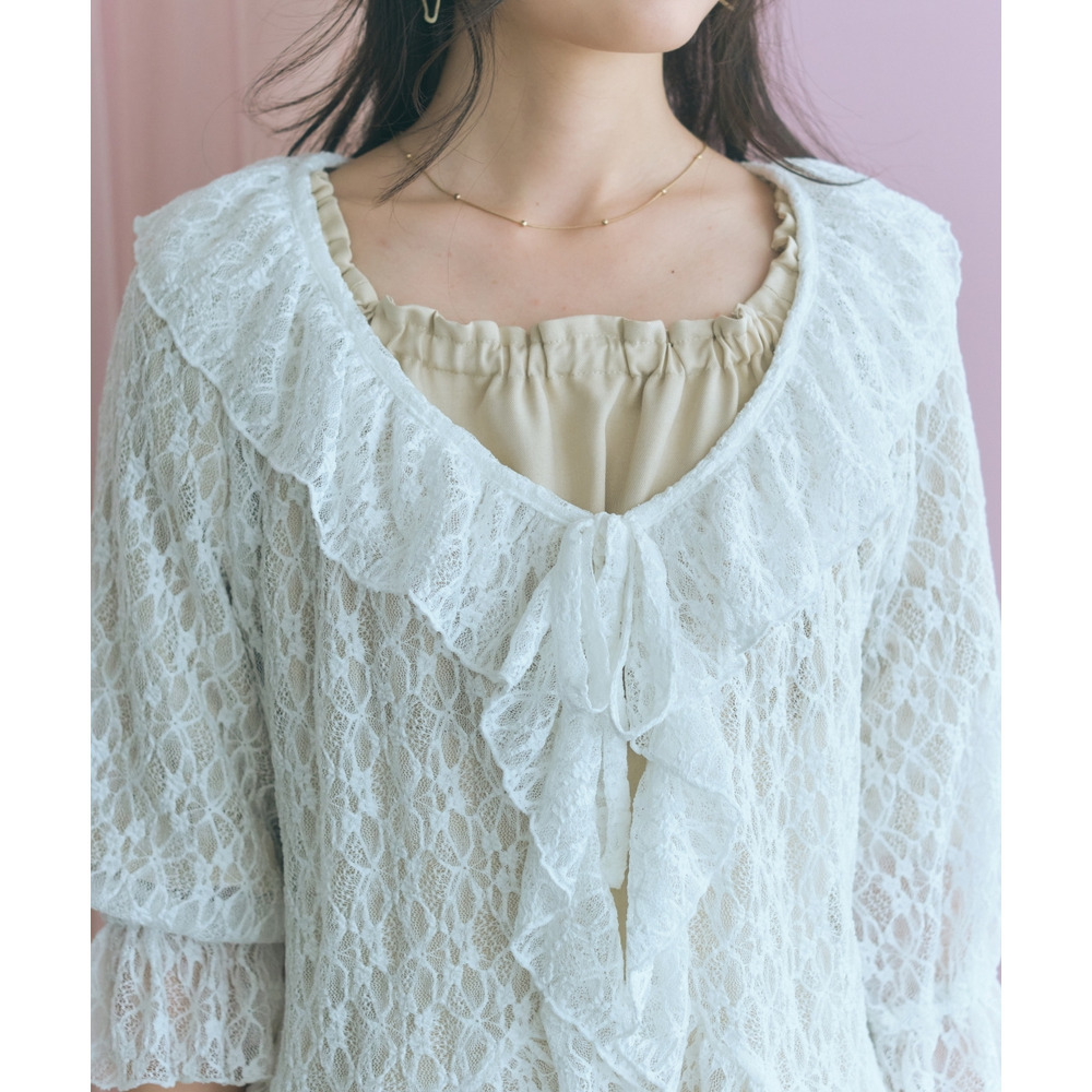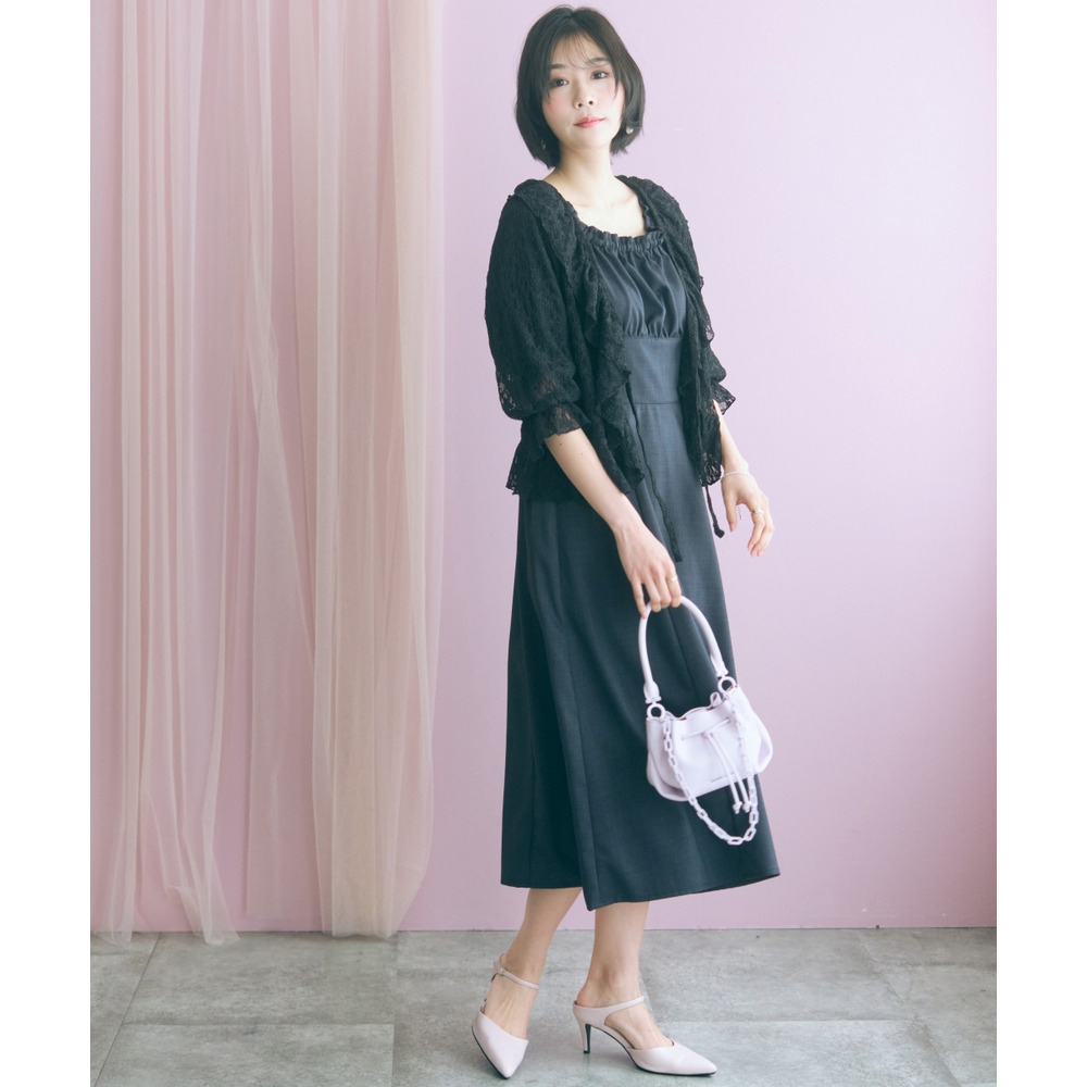 顔周りを華やかに縁取る大ぶりのボリューミーなフリルが、視線を上に集めて小顔効果を発揮。