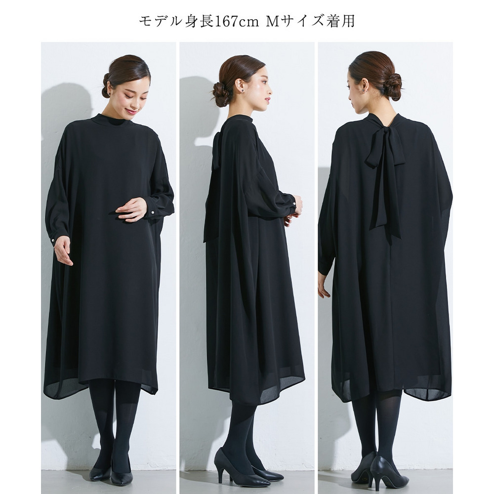 Callarus, カラルス, ブラックフォーマル, 喪服, 礼服, レディース, ワンピース, リボンデザイン, 日本製生地, コクーンシルエット, 体型カバー, 着痩せ, 20代, 30代, 40代, 50代, 洗える, 防しわ, 普段使い, 卒業式, 入学式, セレモニー