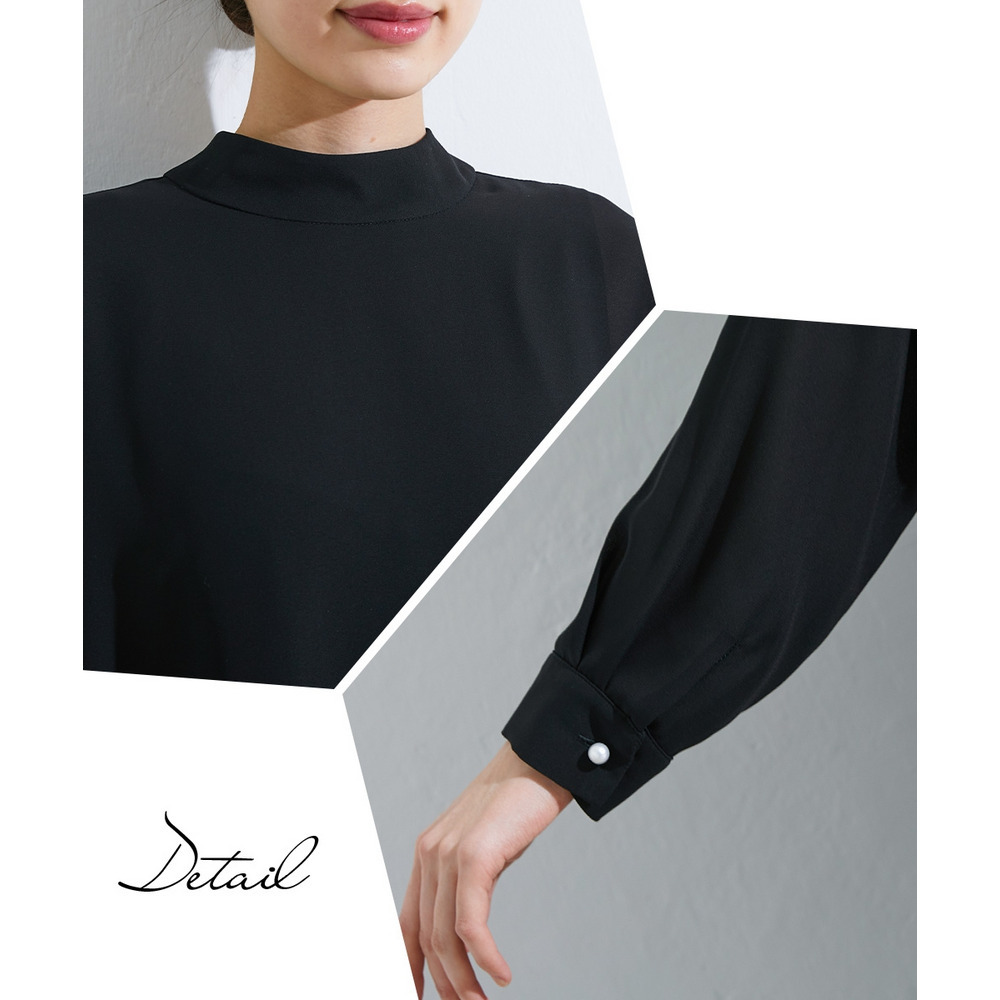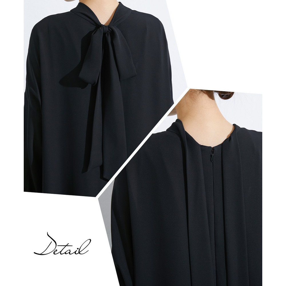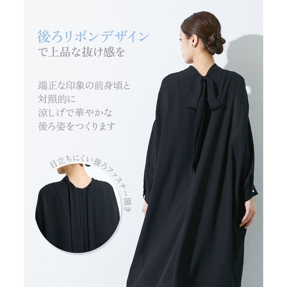 ・首元を彩るリボンデザインが、ブラックフォーマルの端正な品格の中に、大人の愛らしさと華やかさを添えます。