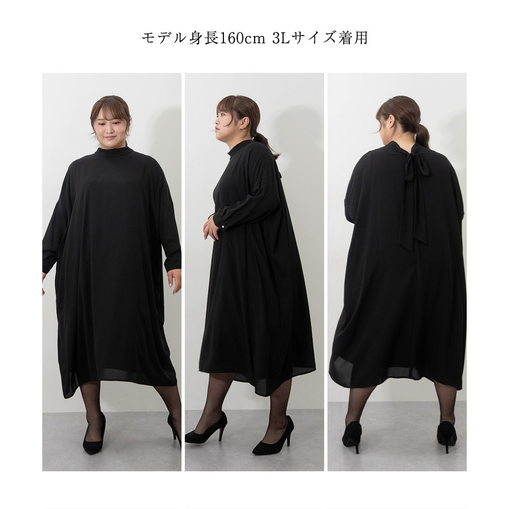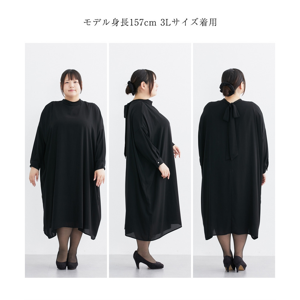【喪服・礼服】日本製生地使用 洗える防しわリボンデザインワンピース 大きいサイズ Callarus