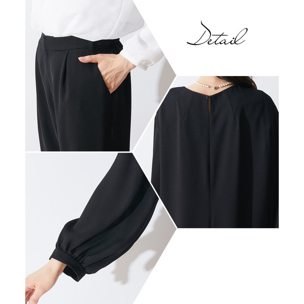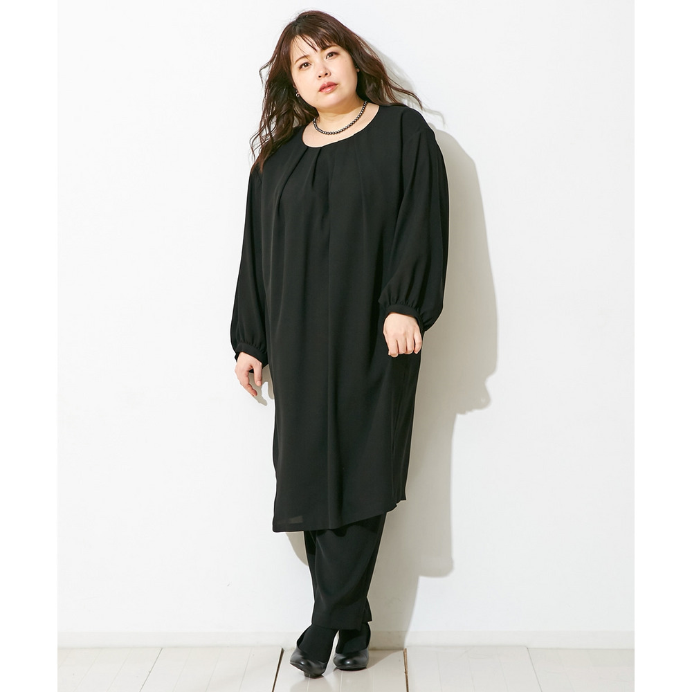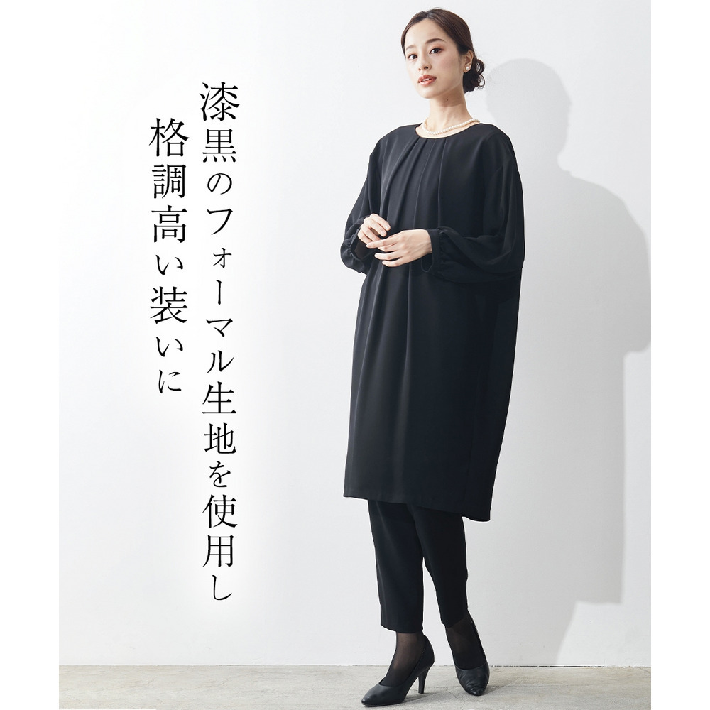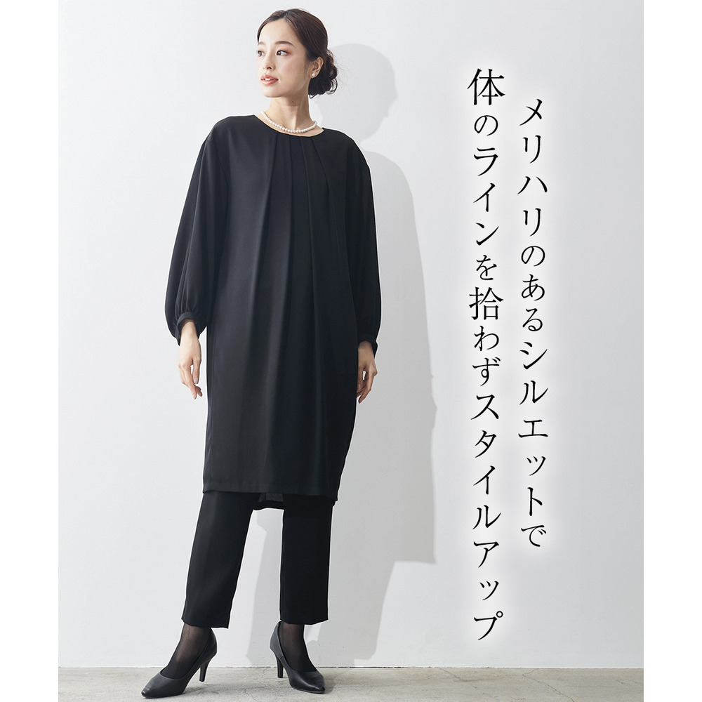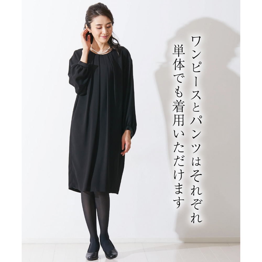 【喪服・礼服】洗える防しわコクーンワンピース+テーパードパンツセットアップ 大きいサイズ Callarus