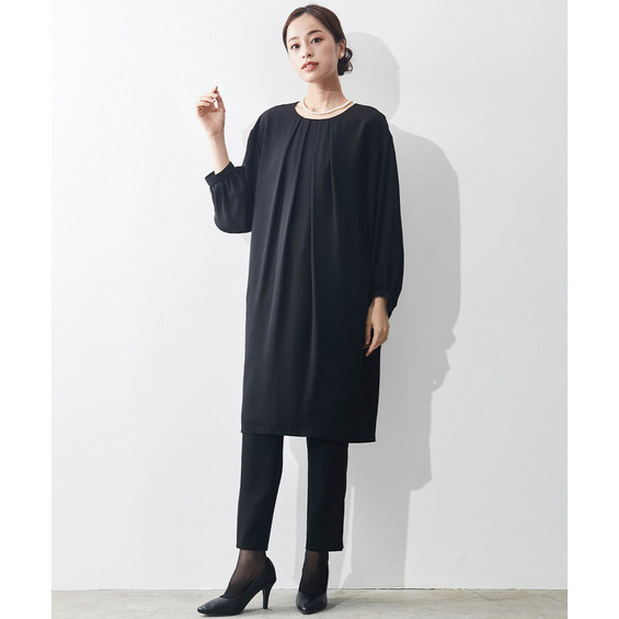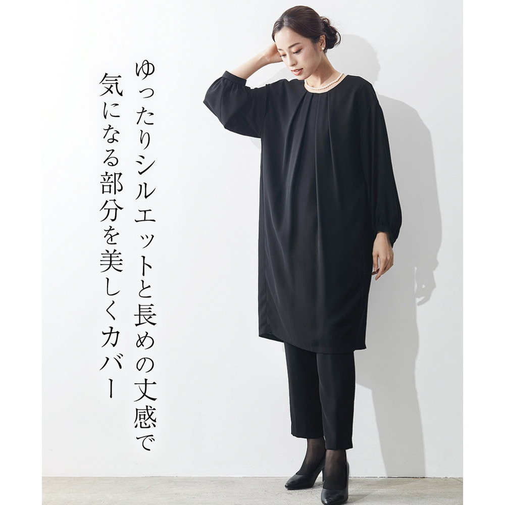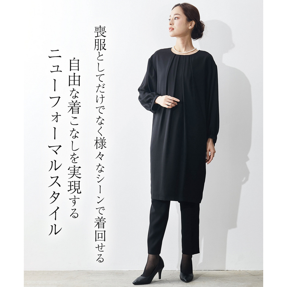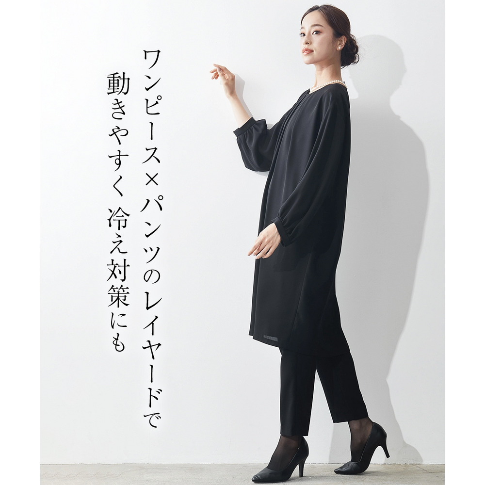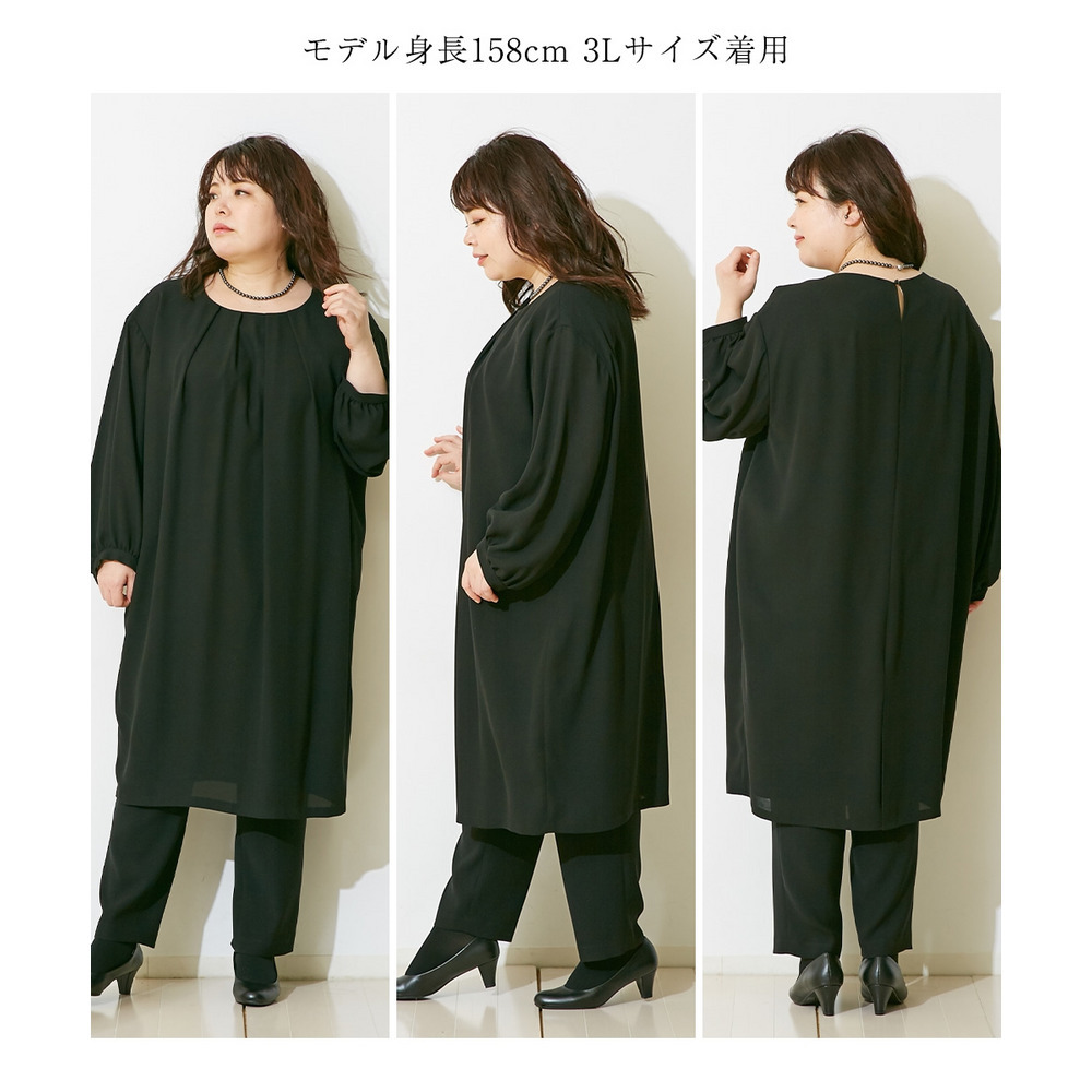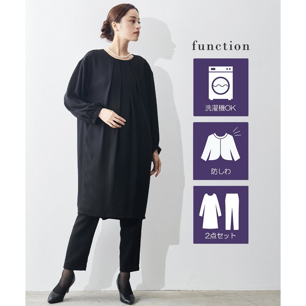 【喪服・礼服】洗える防しわコクーンワンピース+テーパードパンツセットアップ 大きいサイズ Callarus
